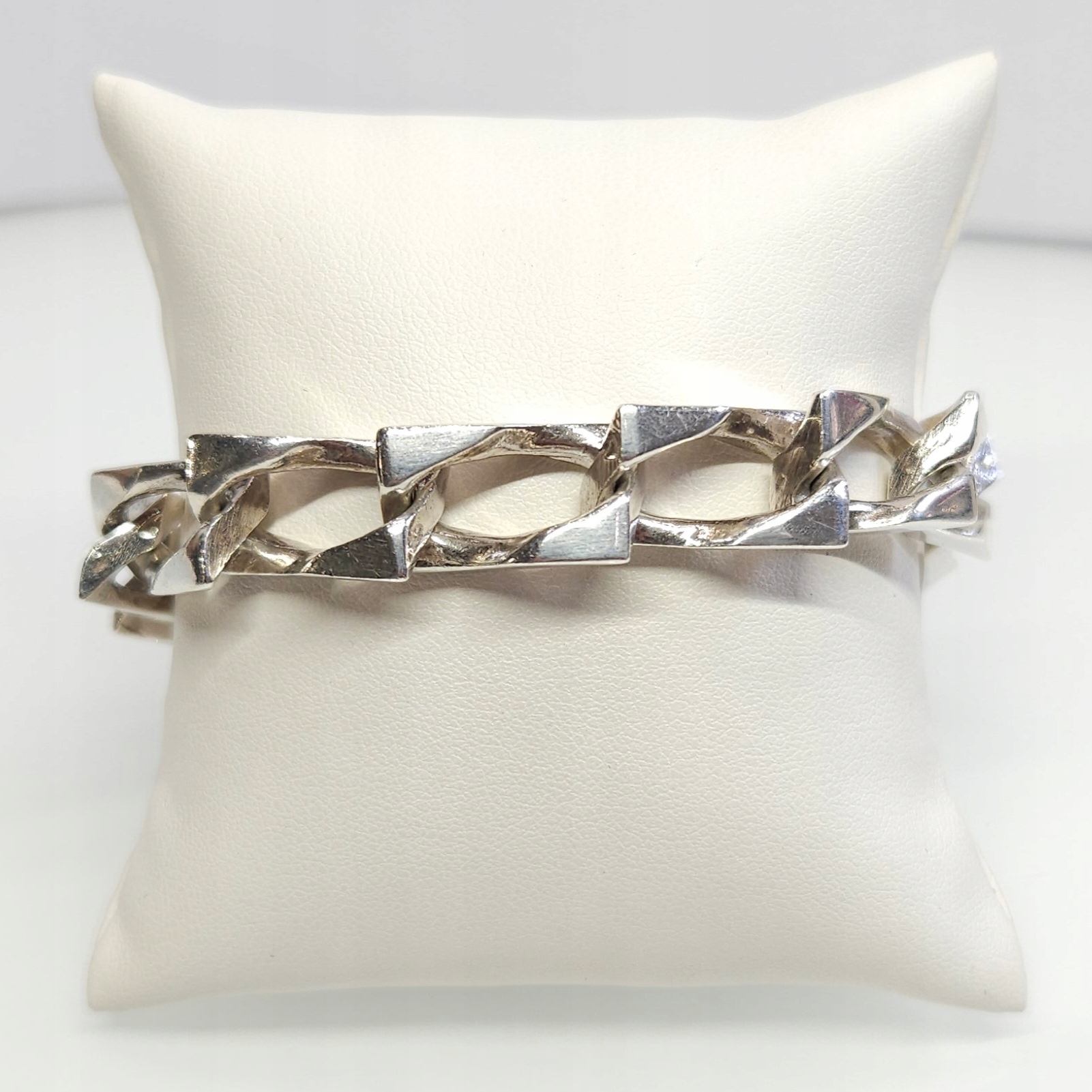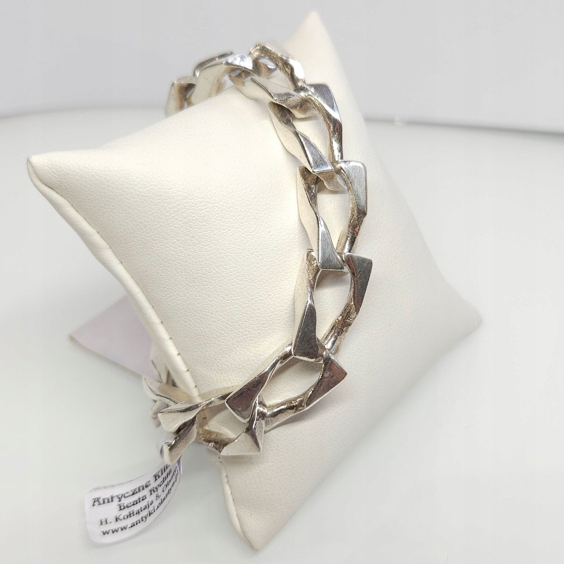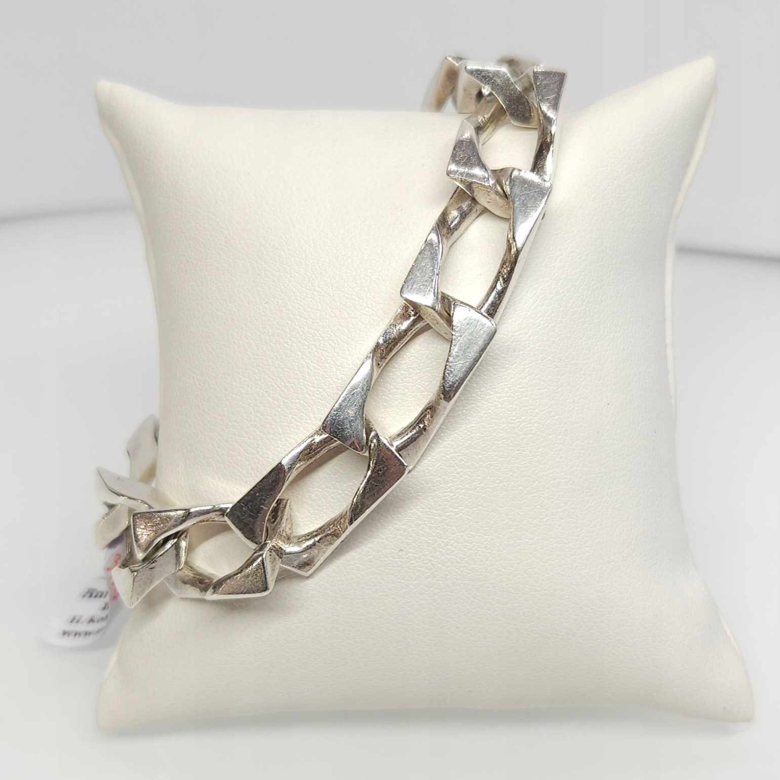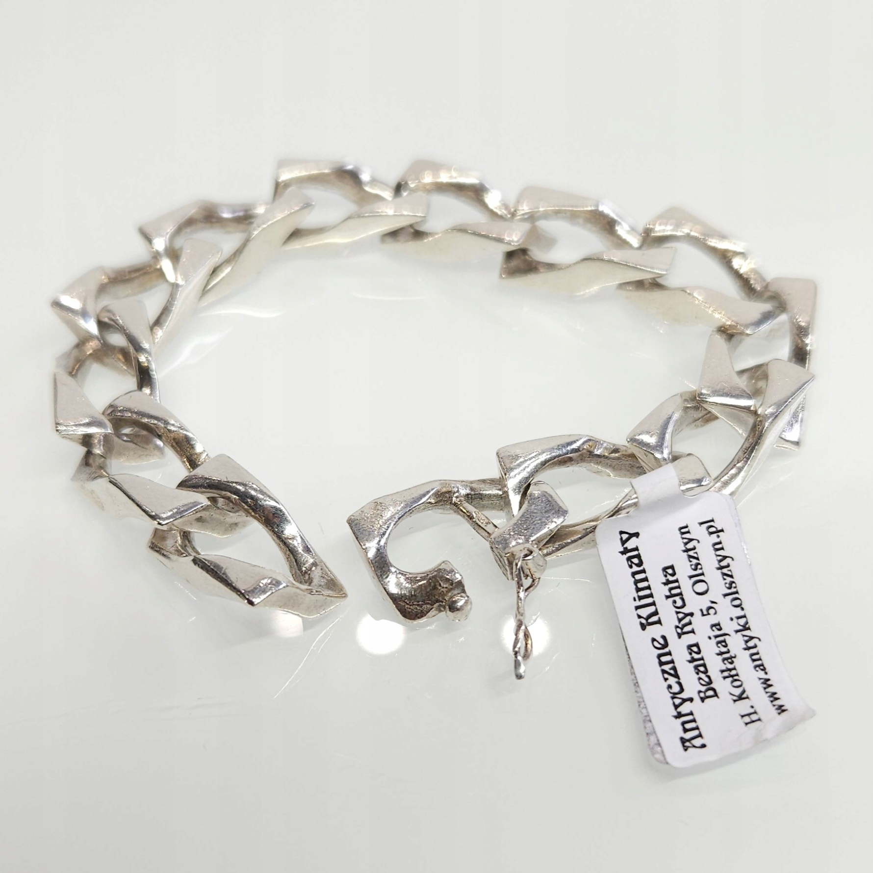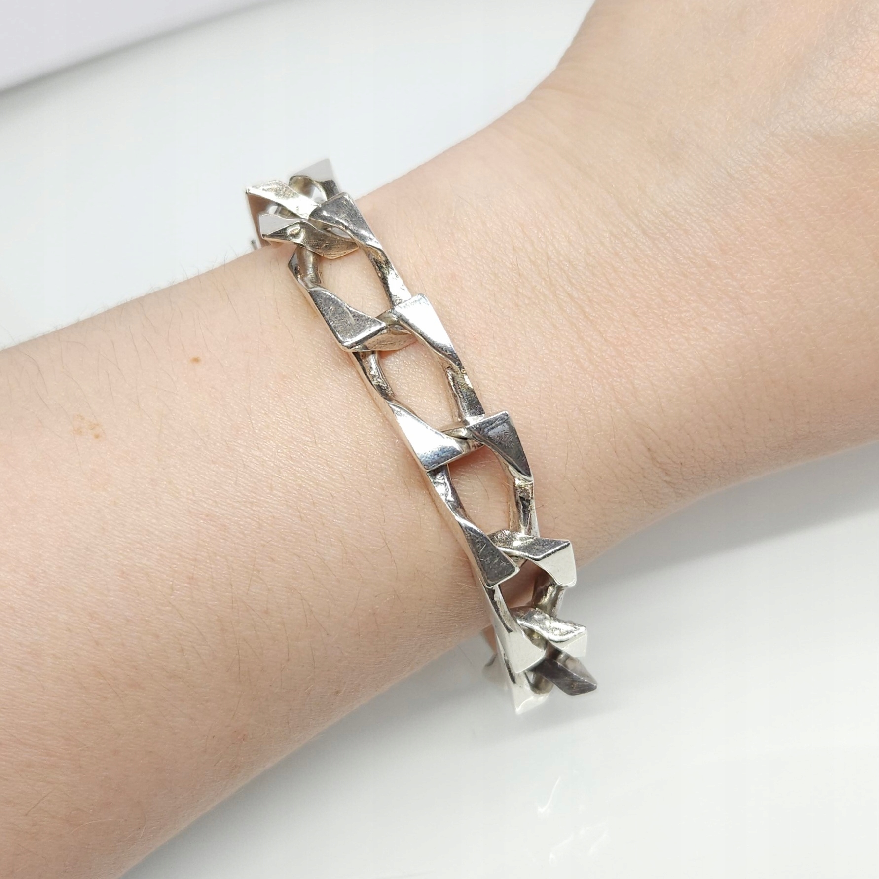 Masywna, srebrna bransoleta, wykonana z geometrycznych ogniw