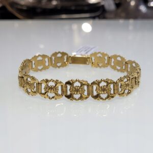Bransoletka zapinana na haczyk z zabezpieczeniem.