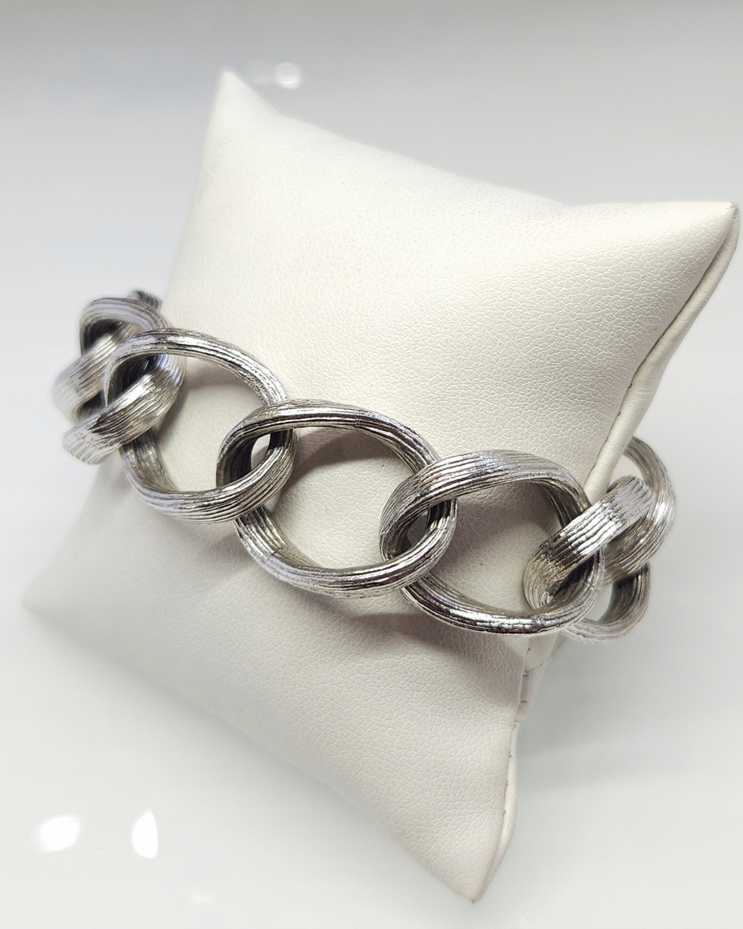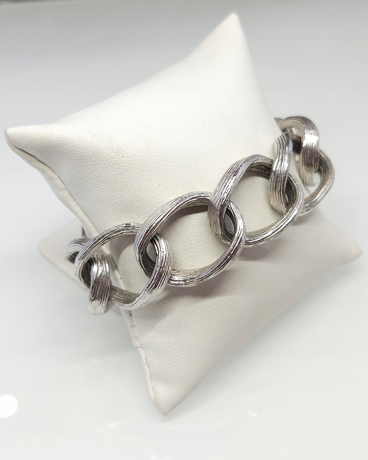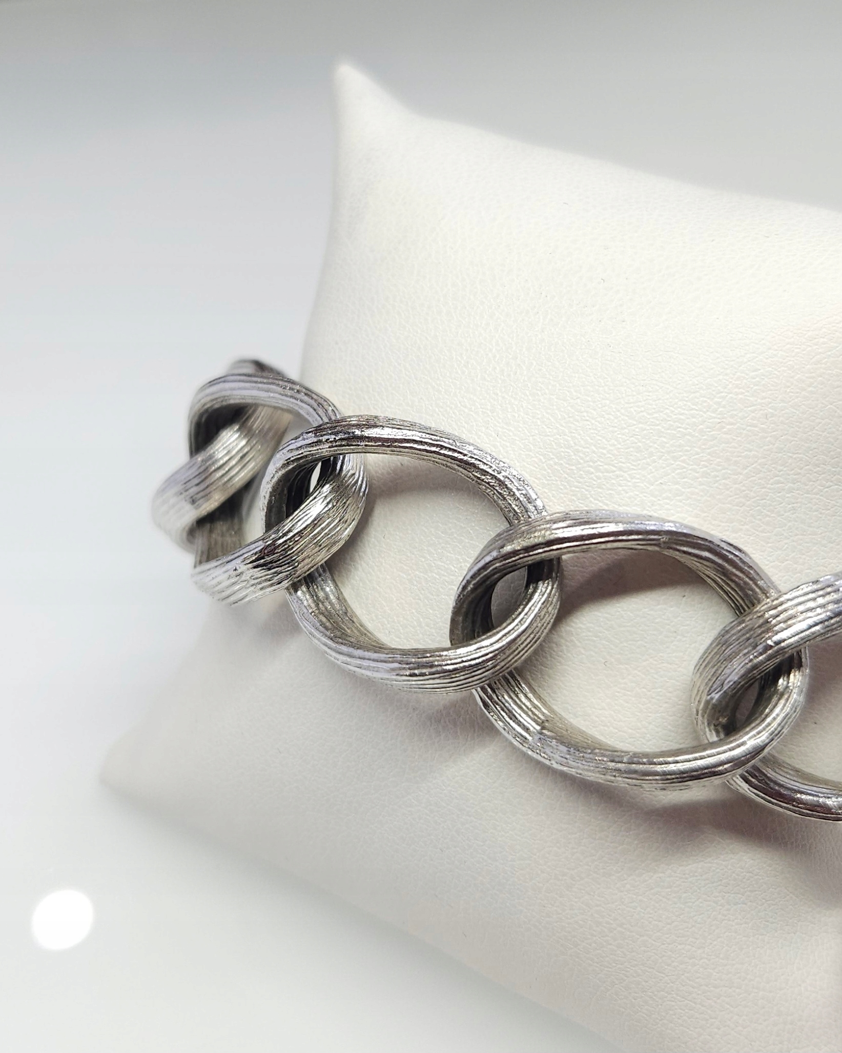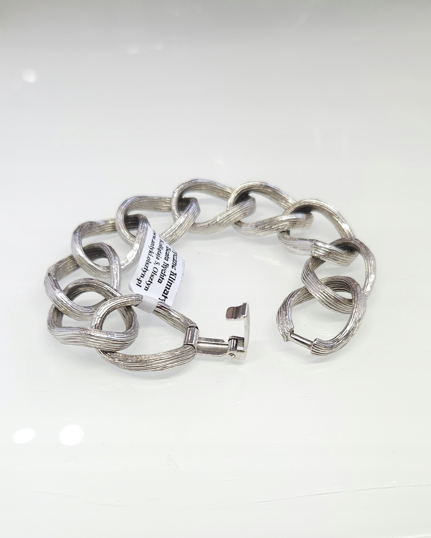 Srebrna, masywna bransoletka… bransoleta, wykonana z dużych, żłobionych ogniw, z mocnym zapięciem na zatrzask