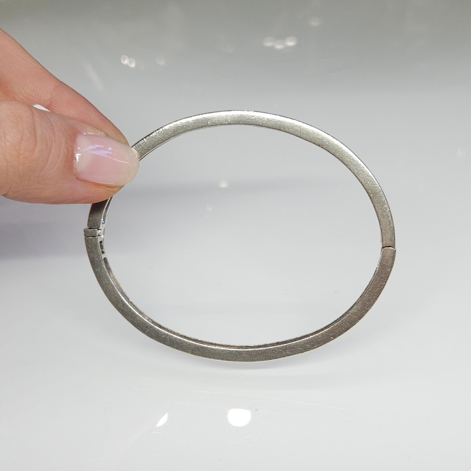 Srebrna, sztywna, eliptyczna bransoletka o powierzchni z delikatnym połyskiem