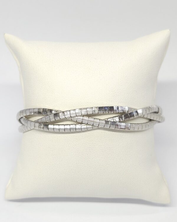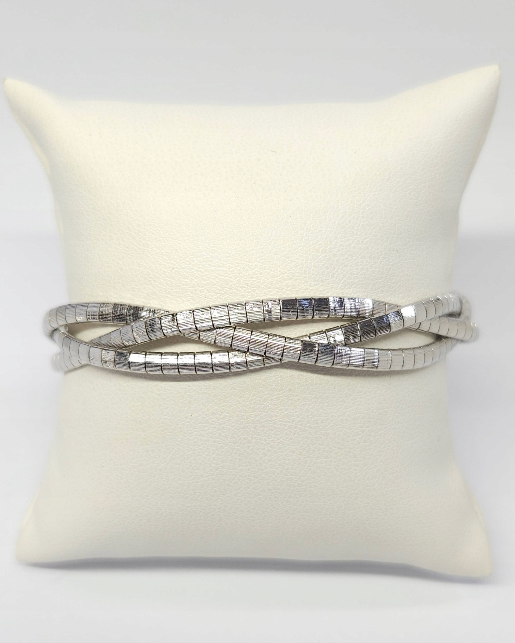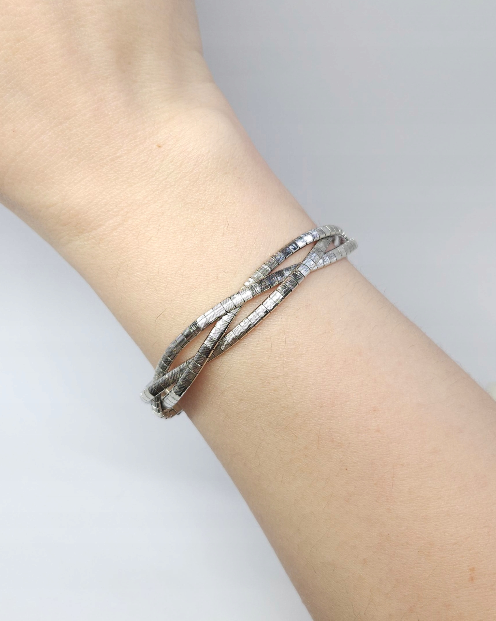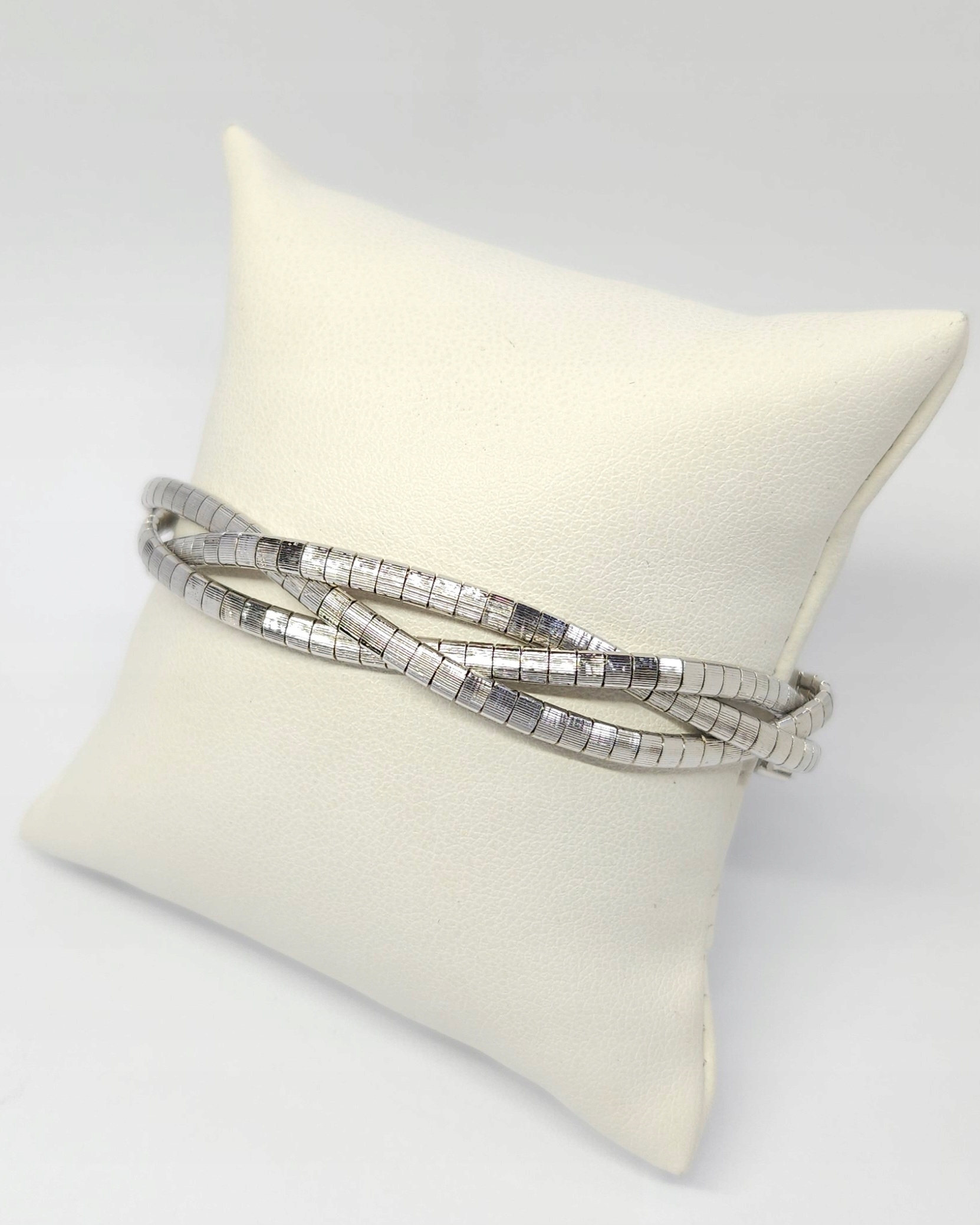 Potrójna, pleciona bransoletka, wykonana ze srebra rodowanego