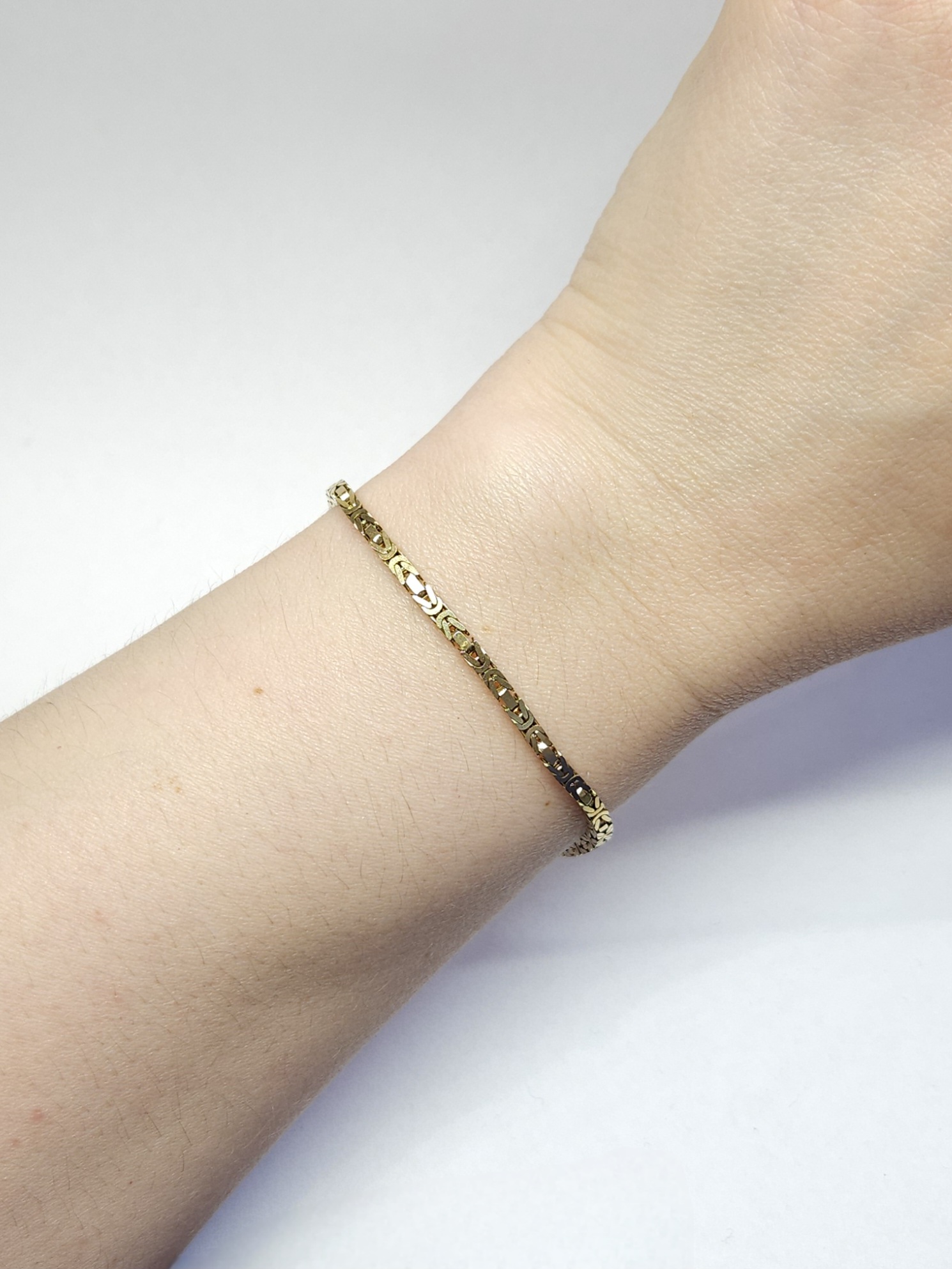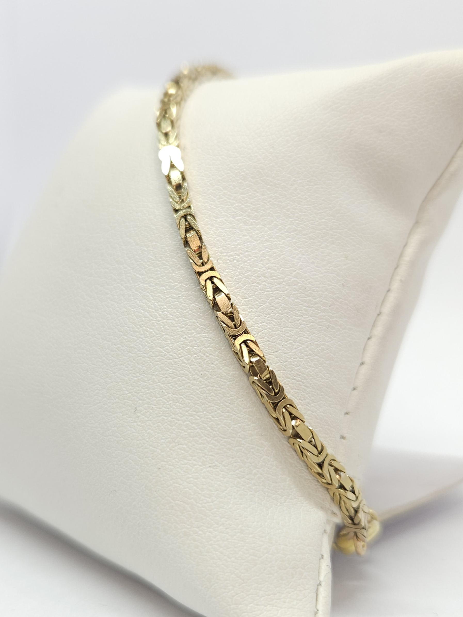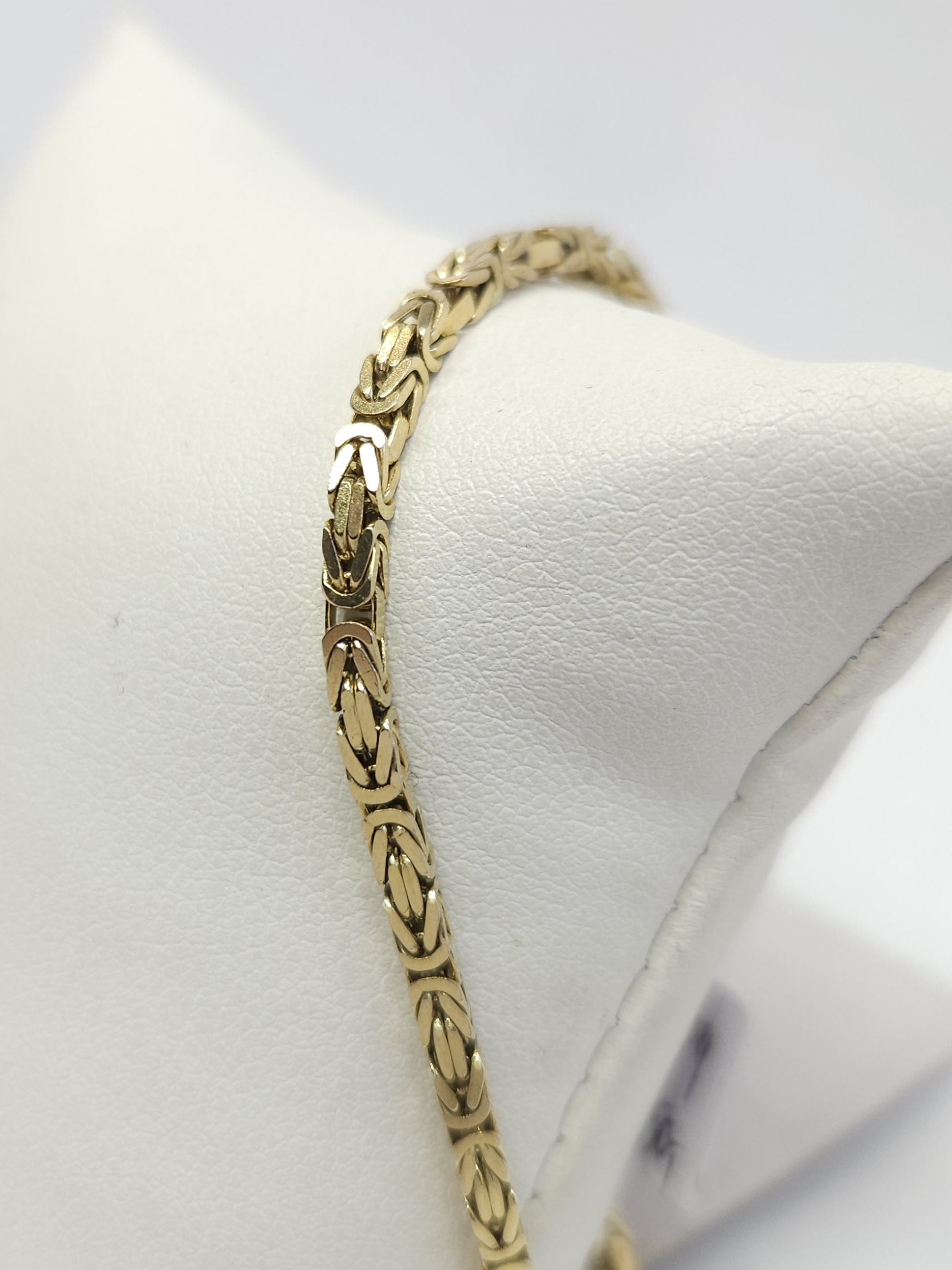 Złota bransoletka o kwadratowym przekroju, wykonana z ogniwek w gęstym splocie królewskim