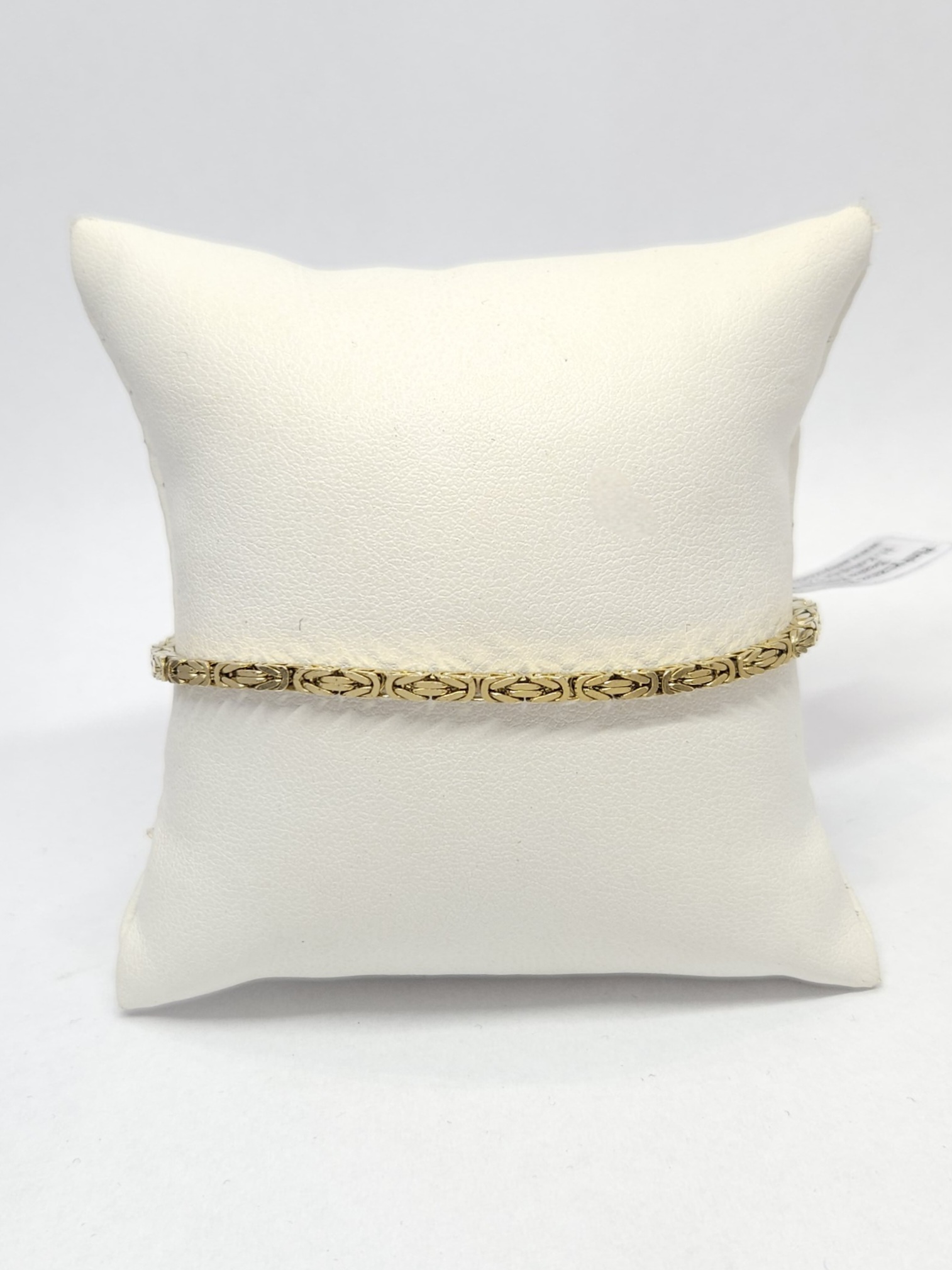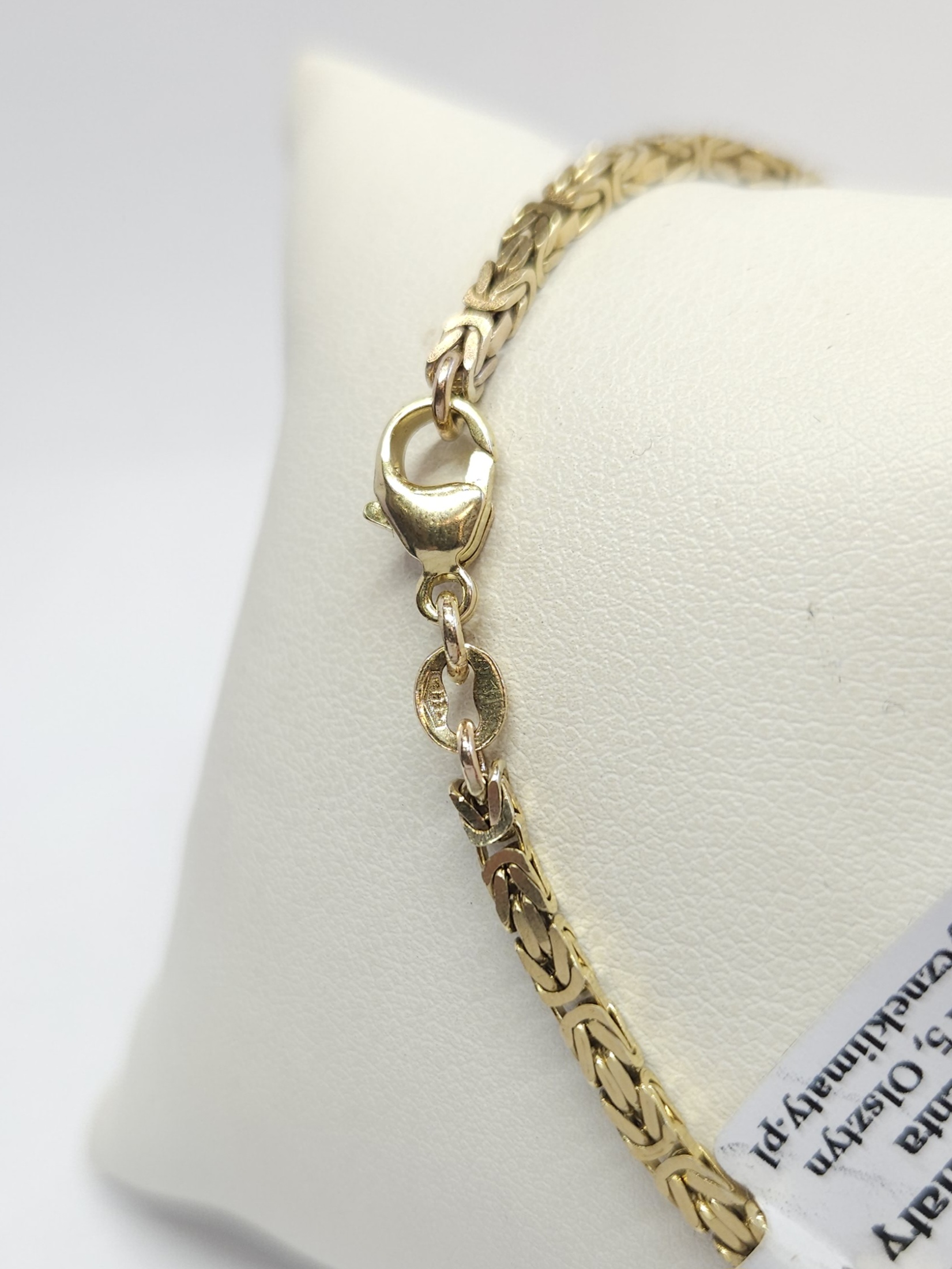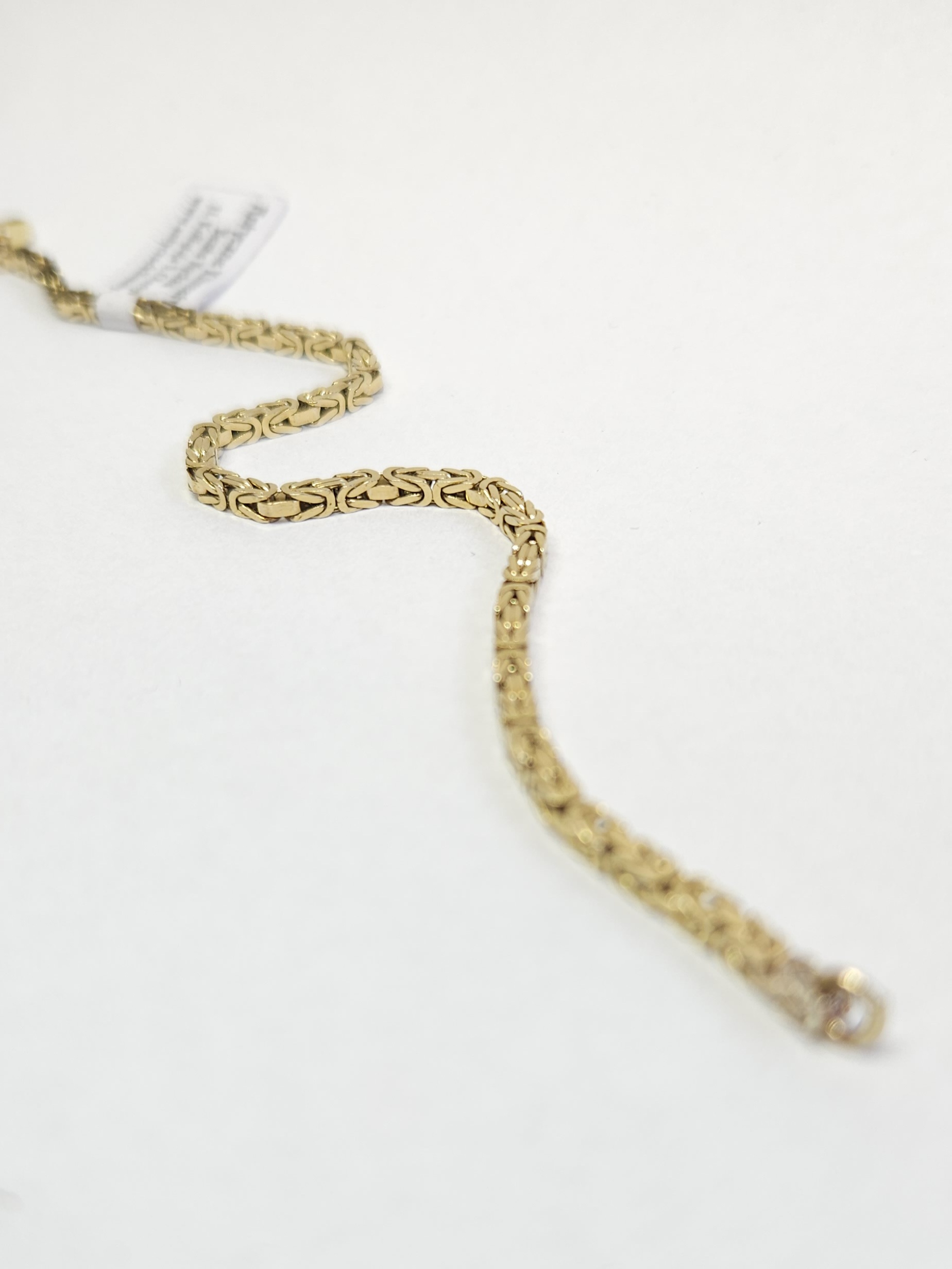 Złota bransoletka o kwadratowym przekroju, wykonana z ogniwek w gęstym splocie królewskim