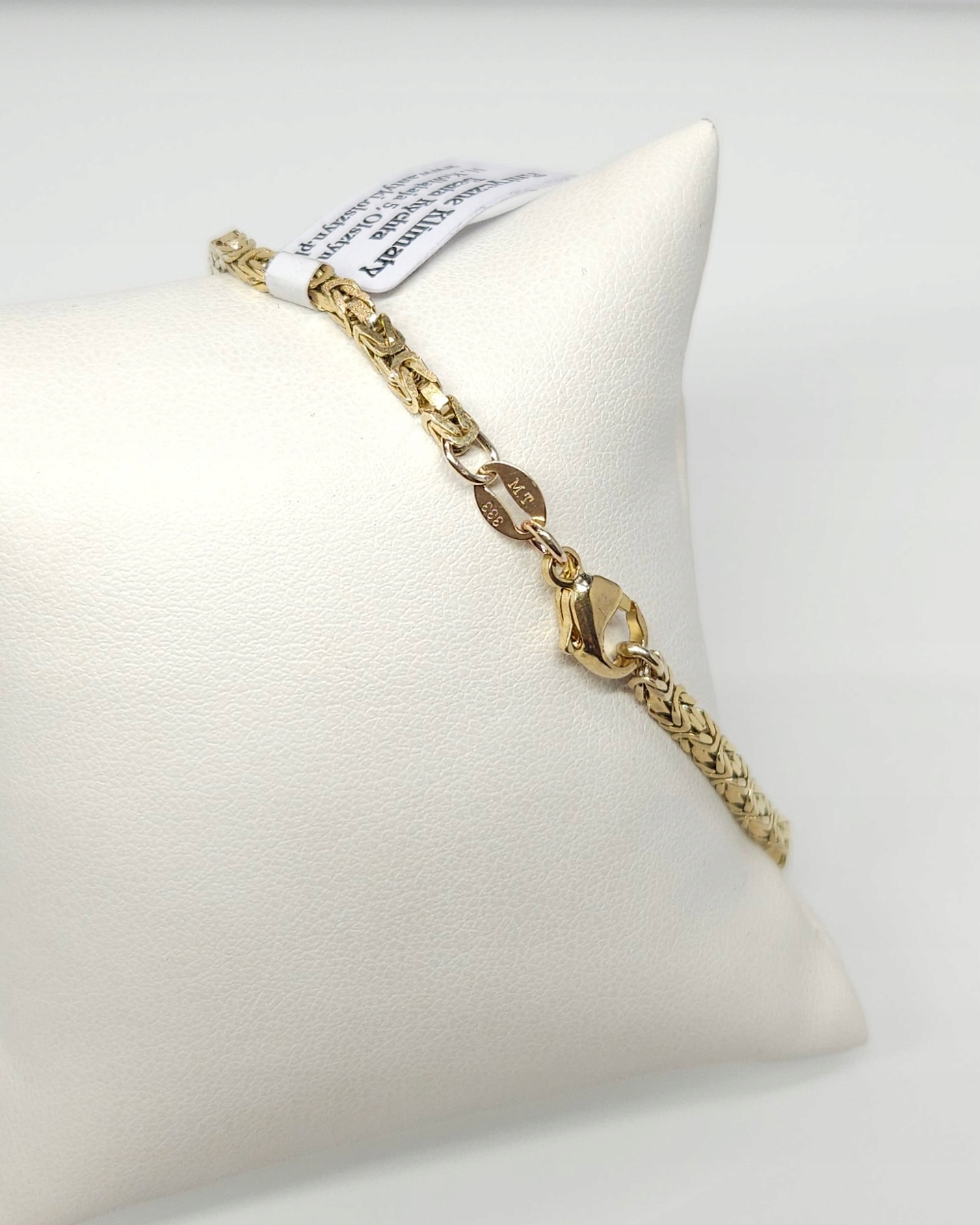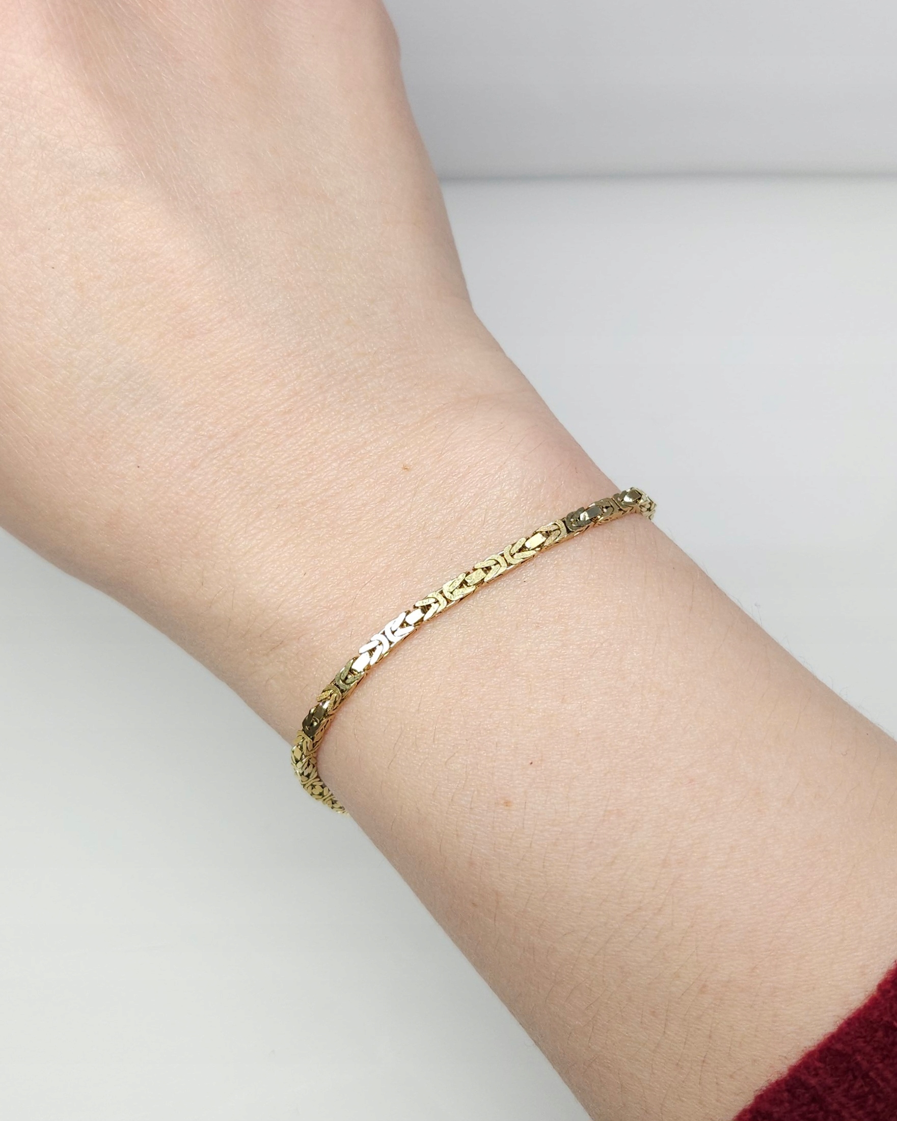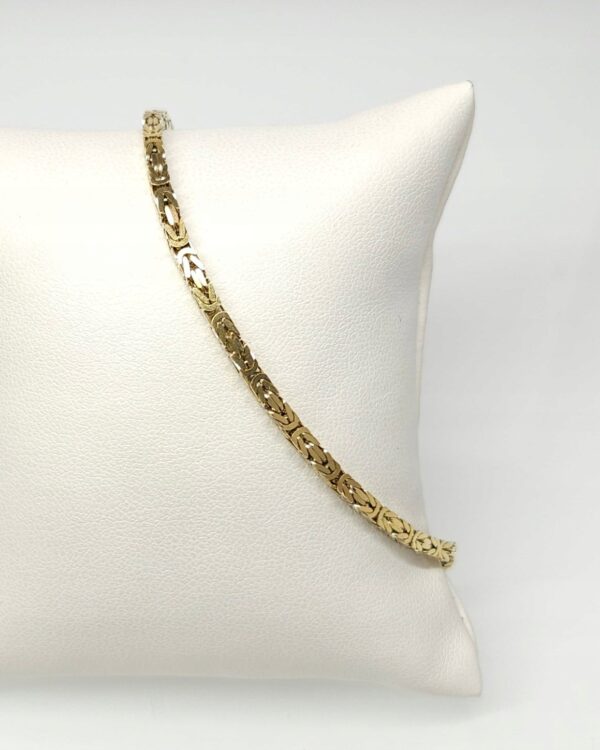 Złota bransoletka o kwadratowym przekroju, wykonana z ogniwek w gęstym splocie