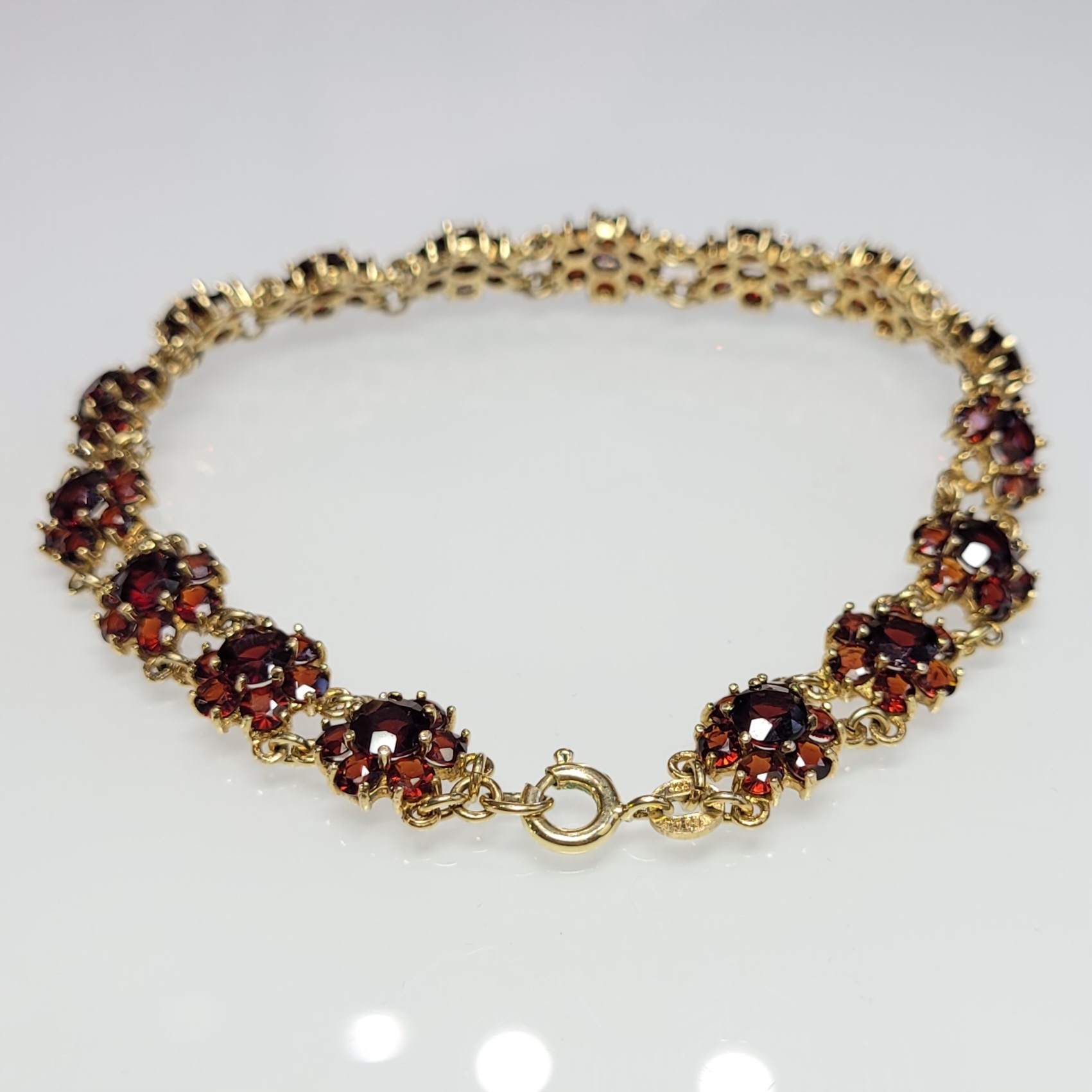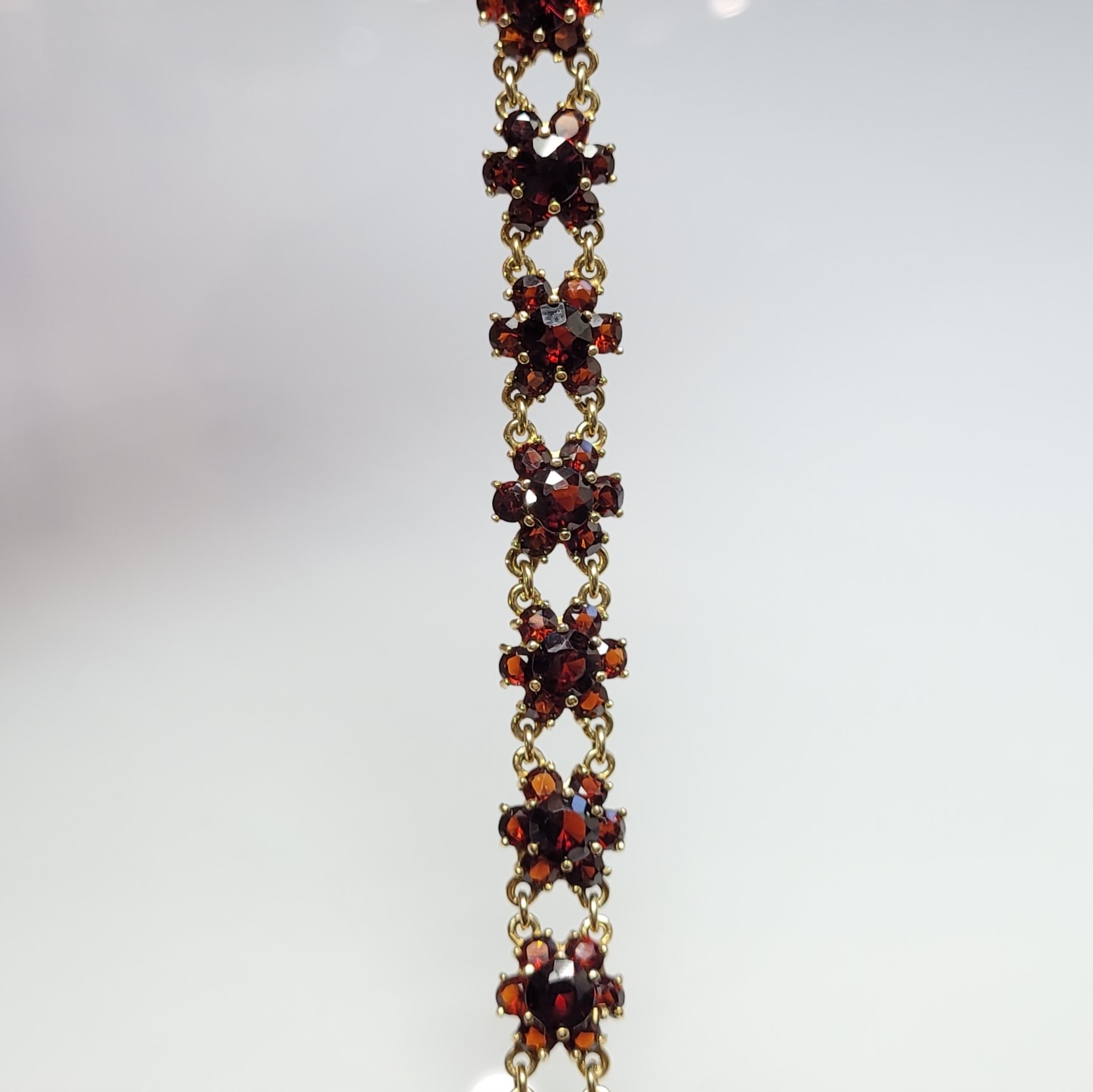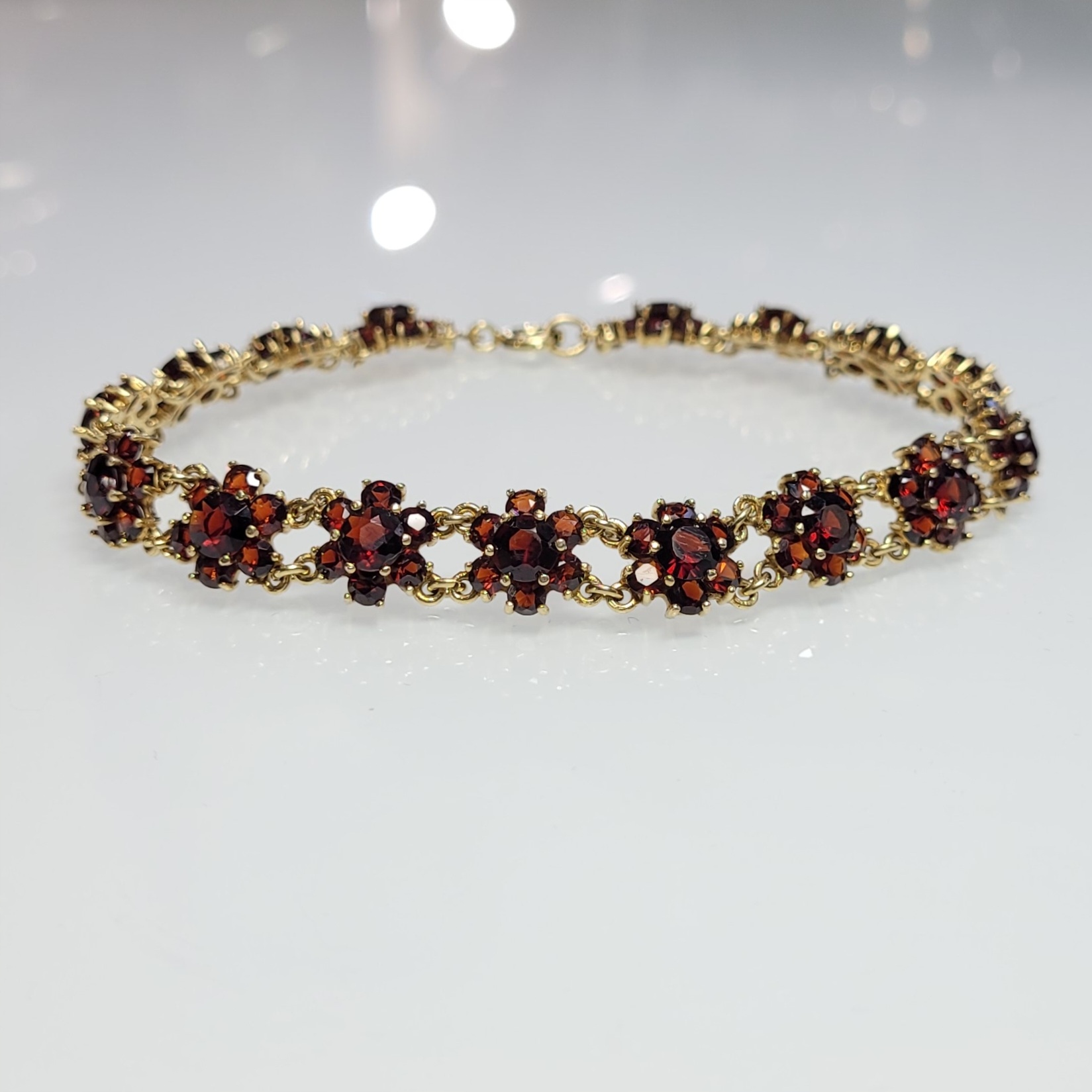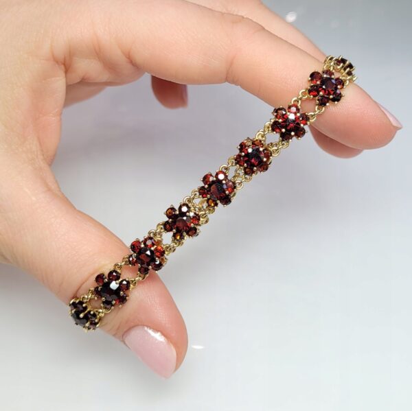 Strona główna » Sklep » Złota bransoletka z granatami, złoto 0,333, granaty, rozety obwód: 19,6cm