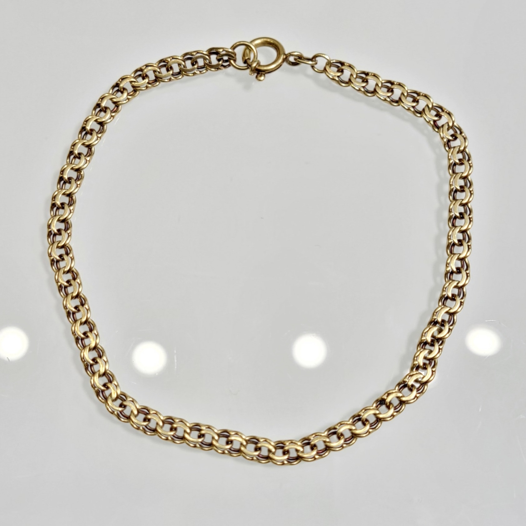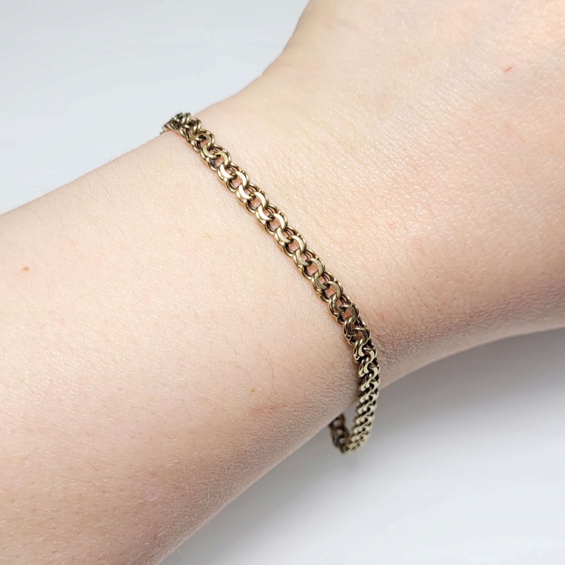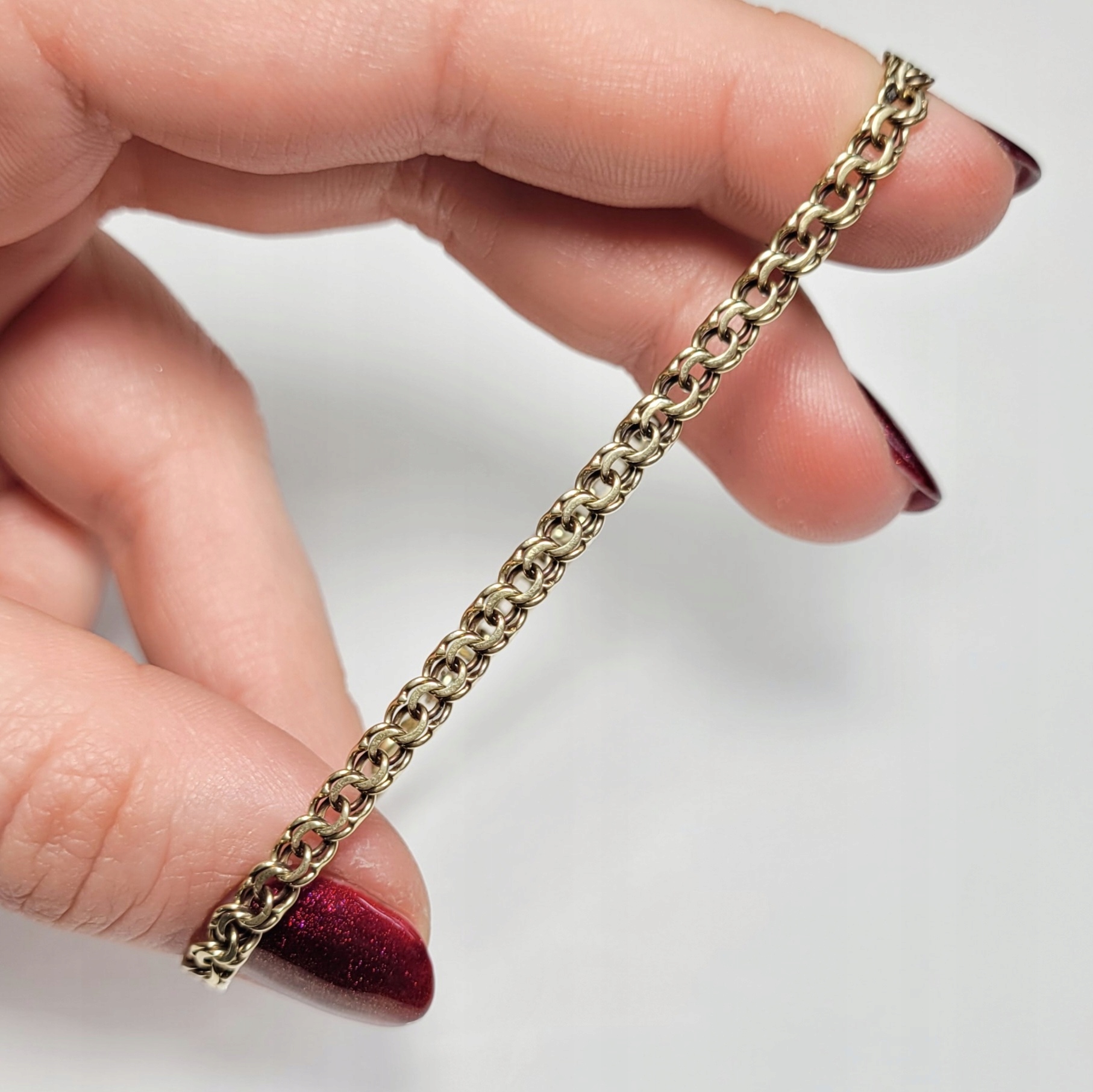 Złota bransoletka wykonana z ogniwek w splocie garibaldi