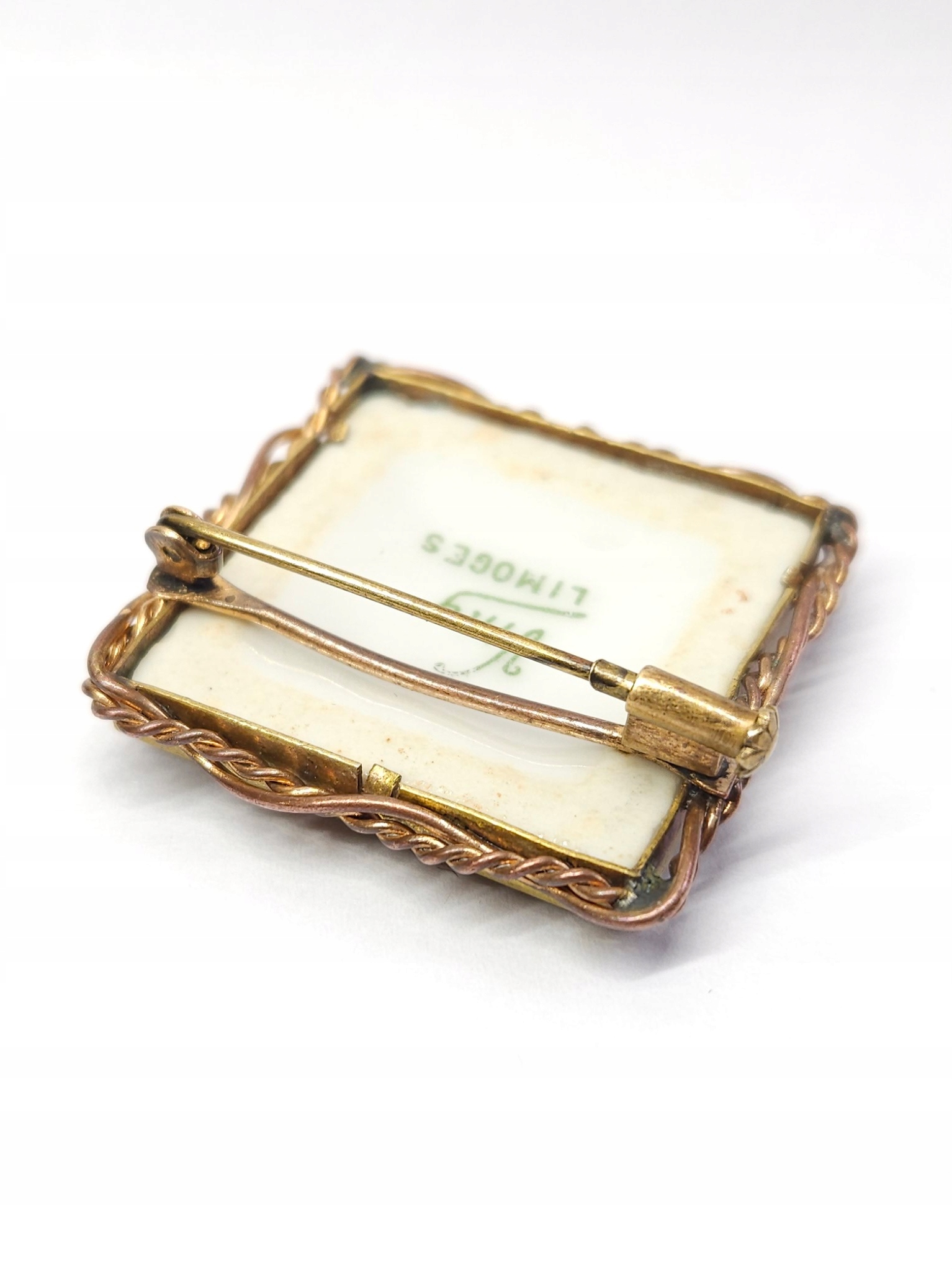 Strona główna » Sklep » Broszka porcelanowa pocz. XX w. Limoges, miedź, mosiądz, kwadratowa