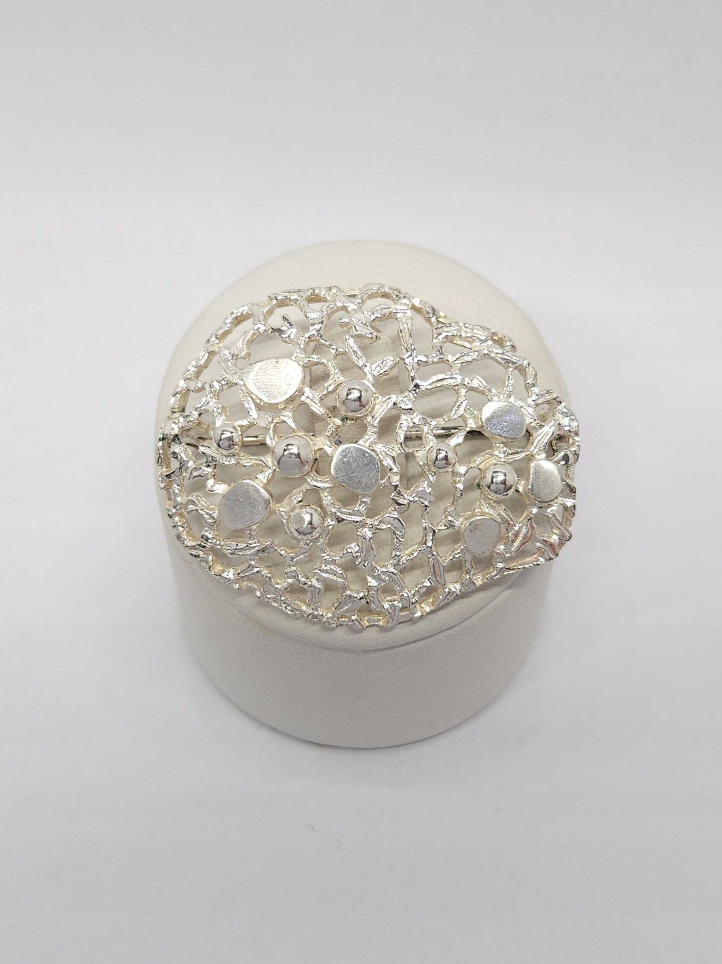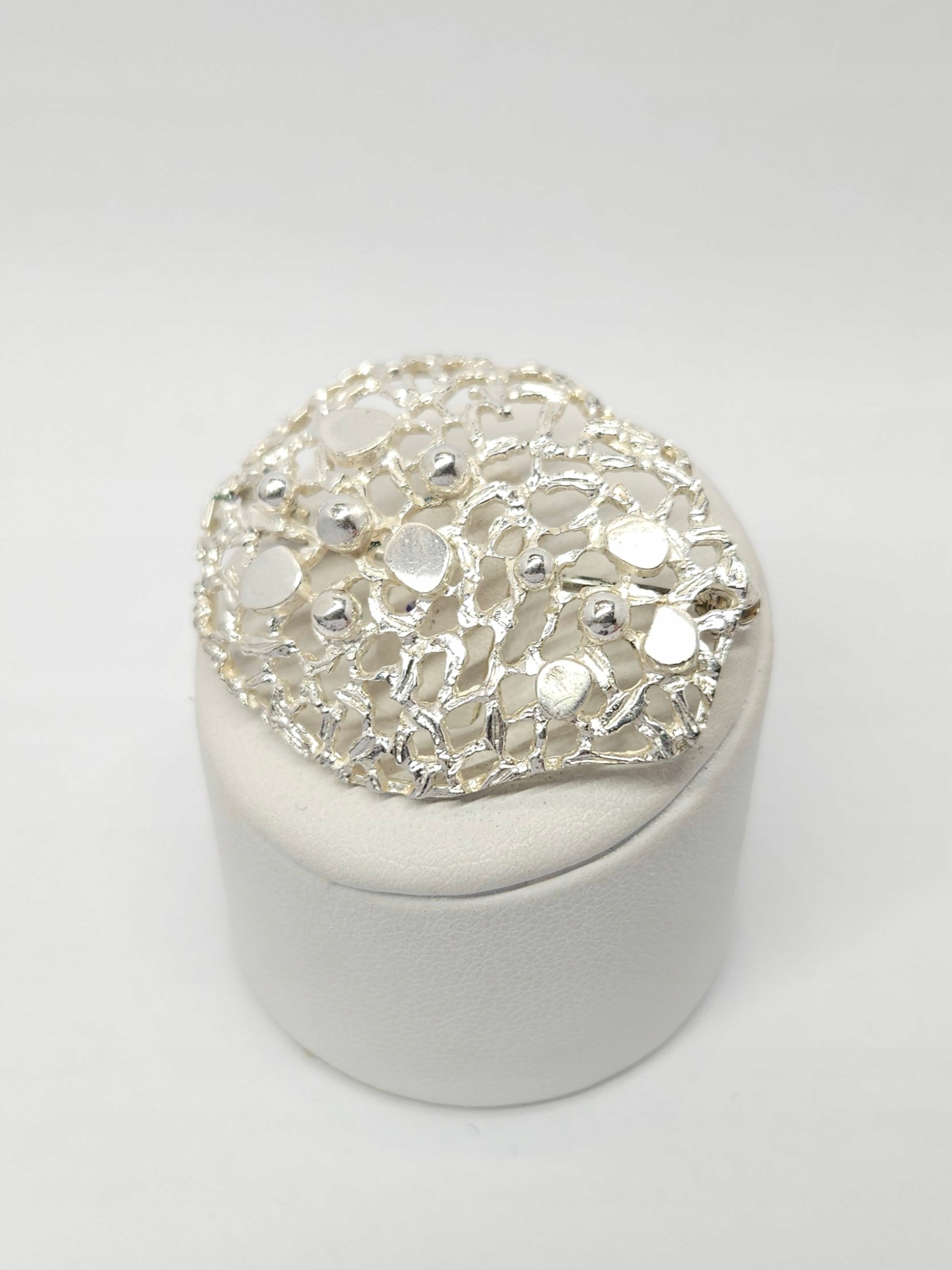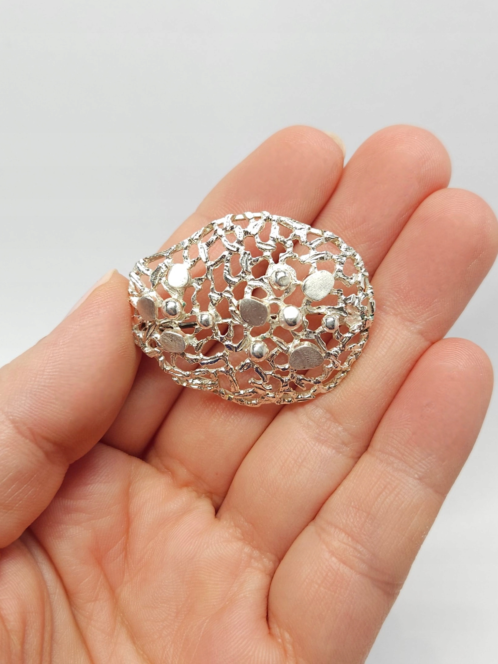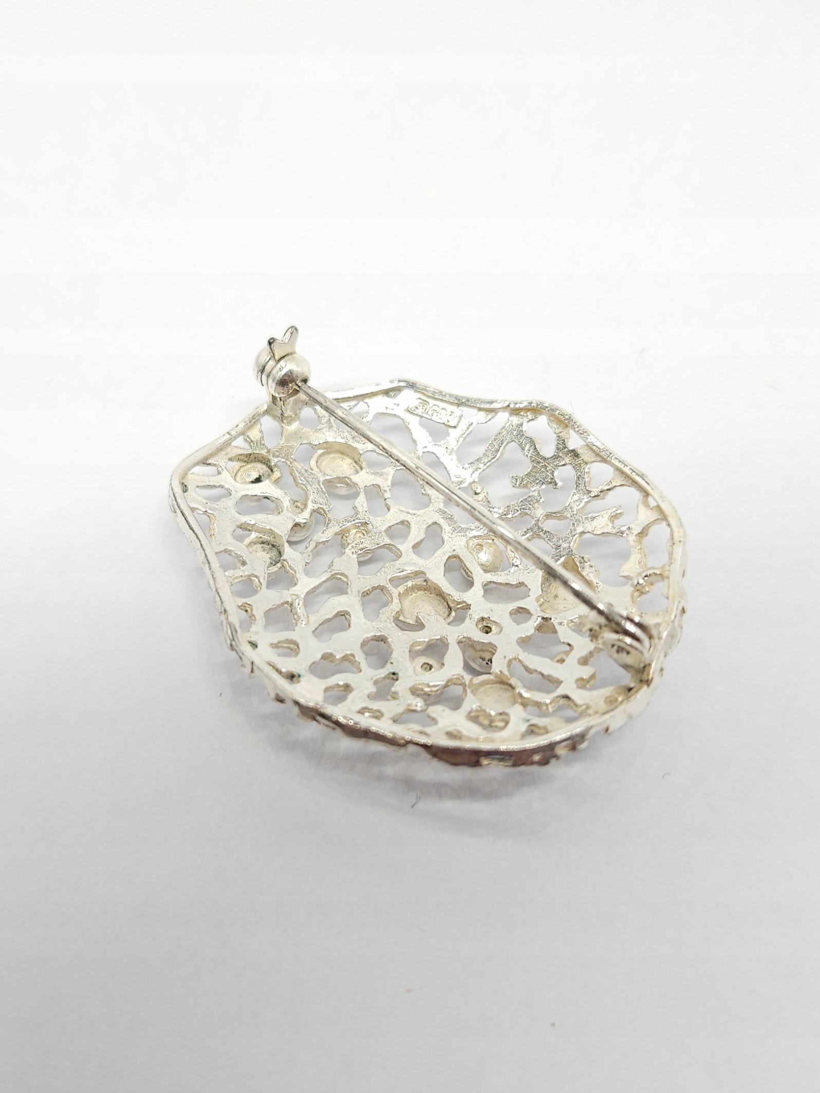 Srebrna ażurowa broszka, srebro 0,800 kulki