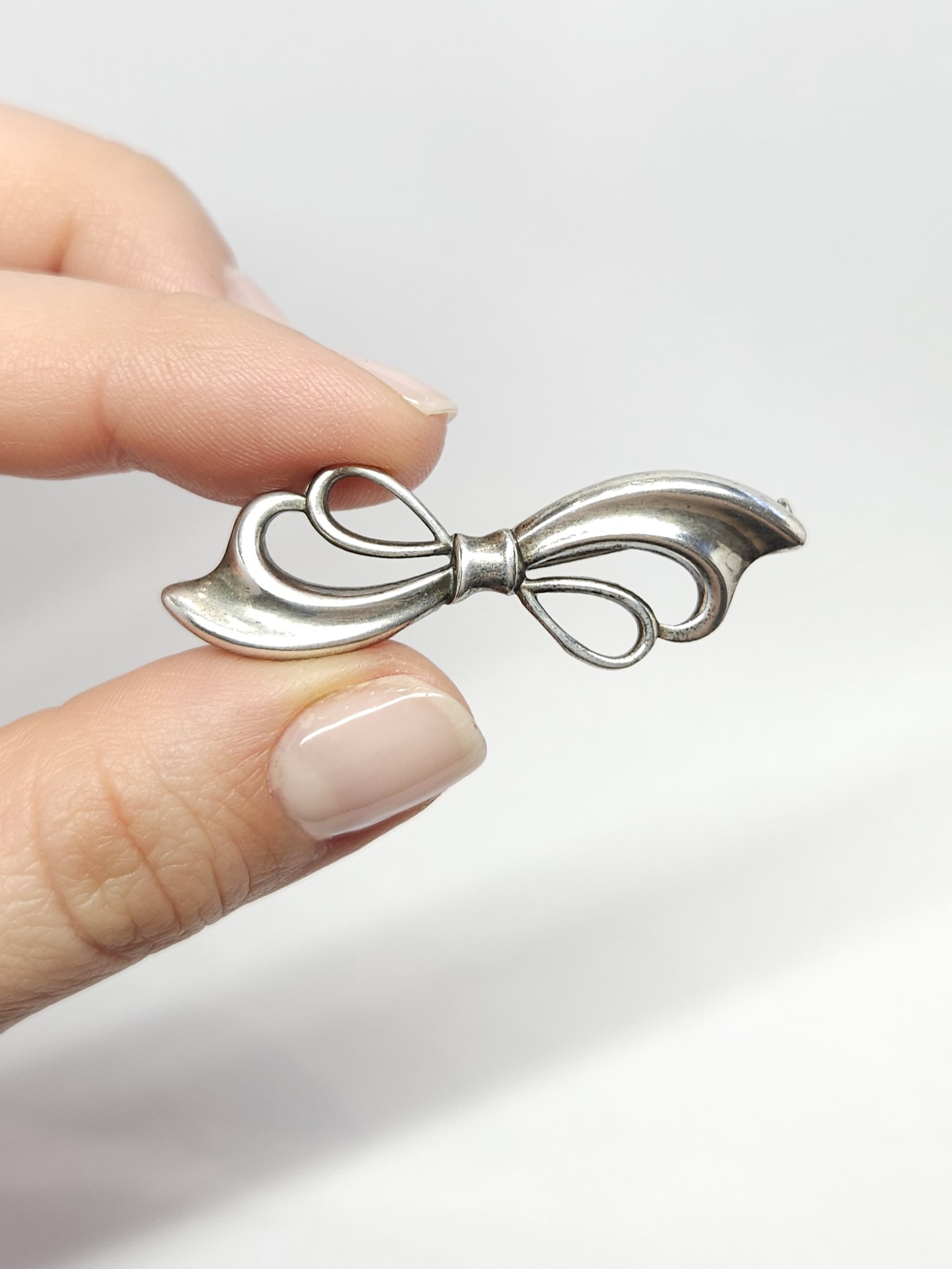 Srebrna broszka w kształcie kokardki