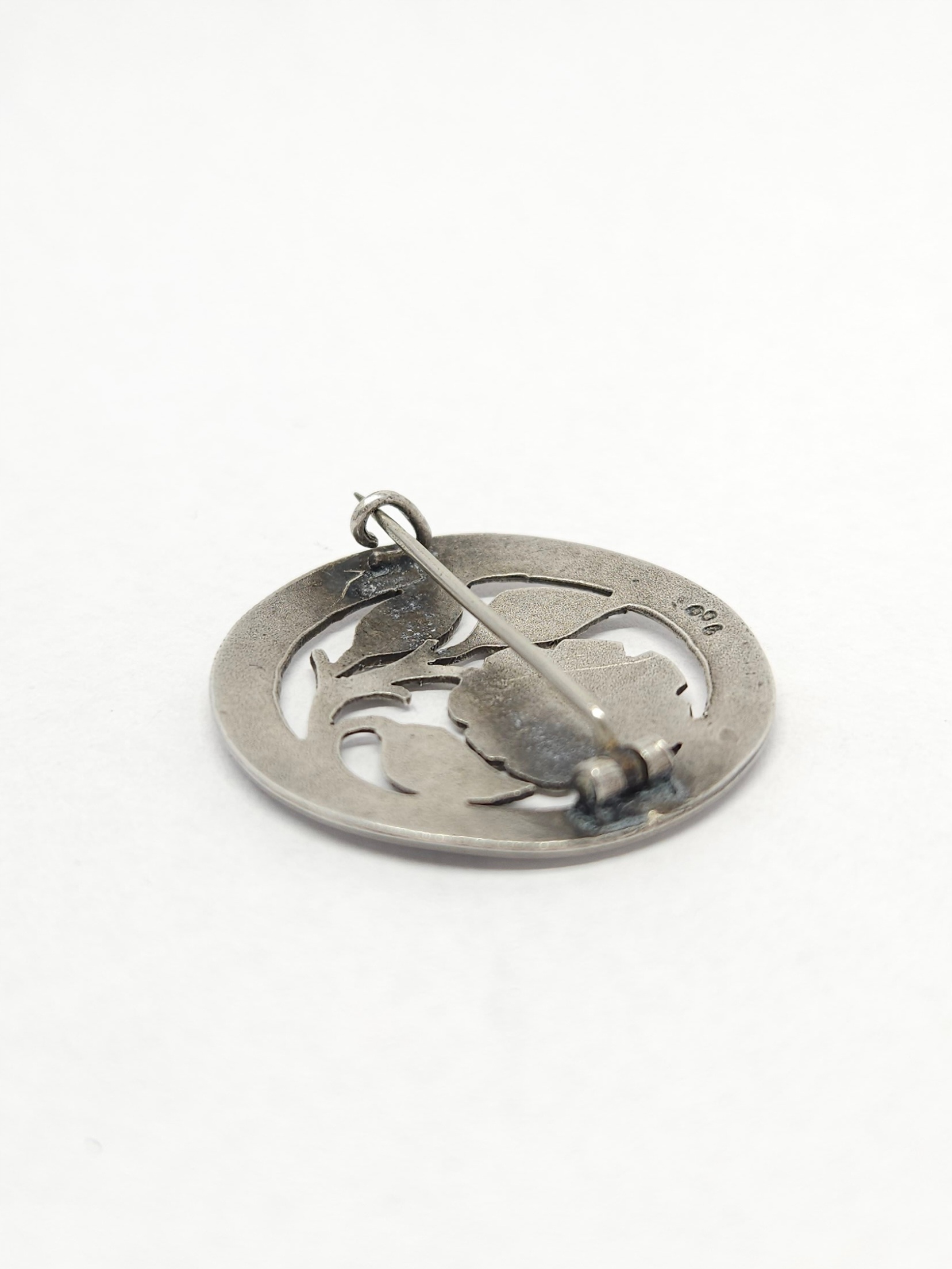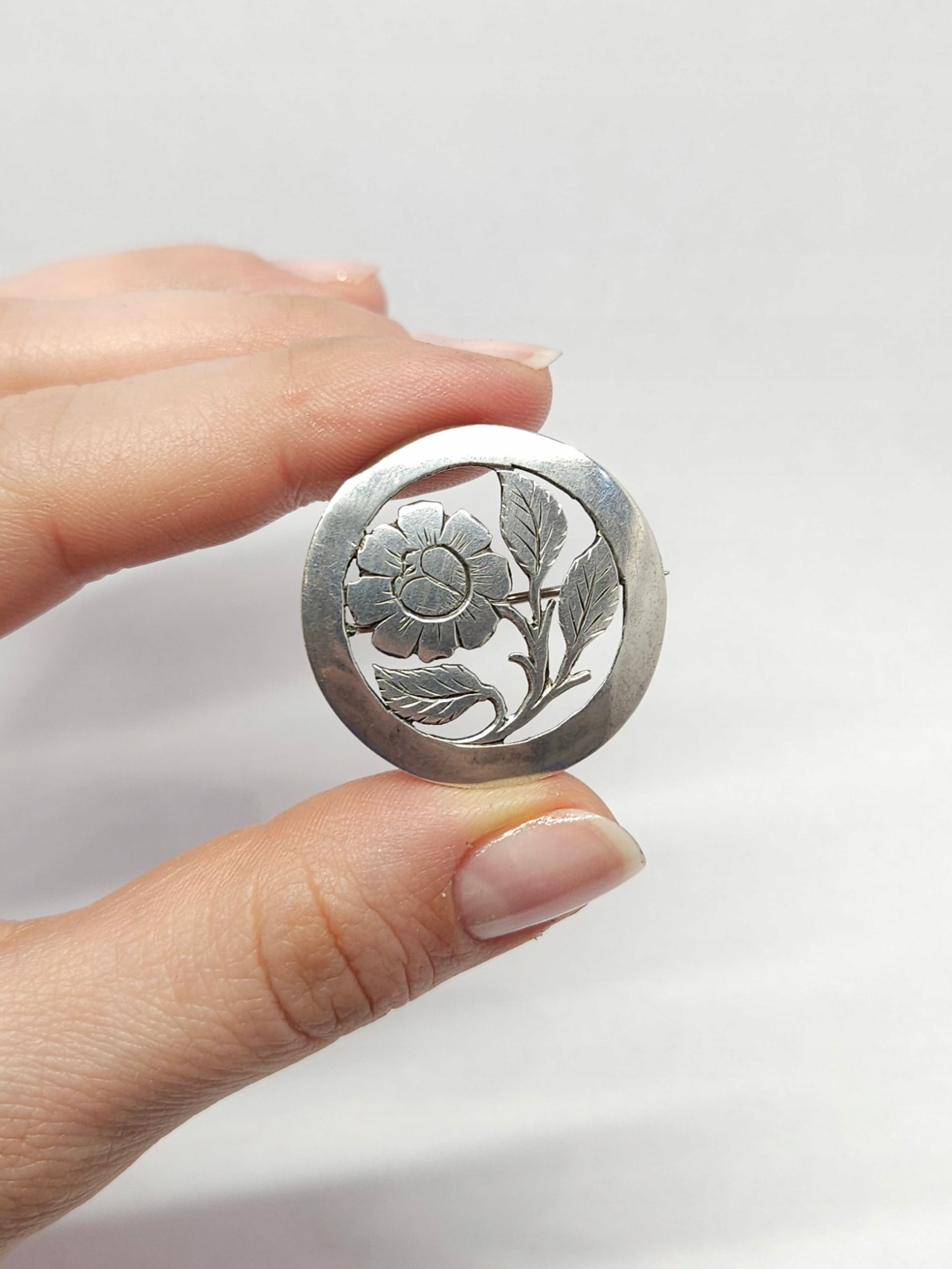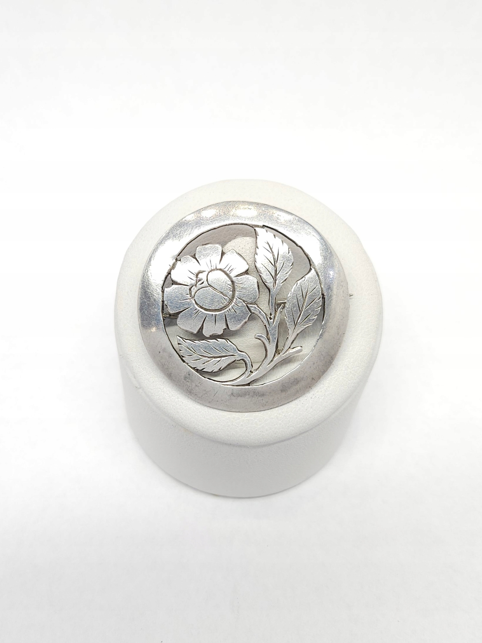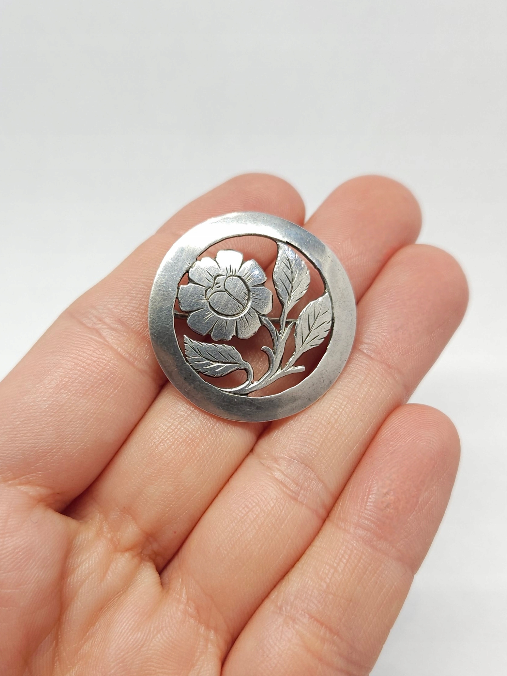 Srebrna broszka z kwiatem, srebro 0,900 okrągła