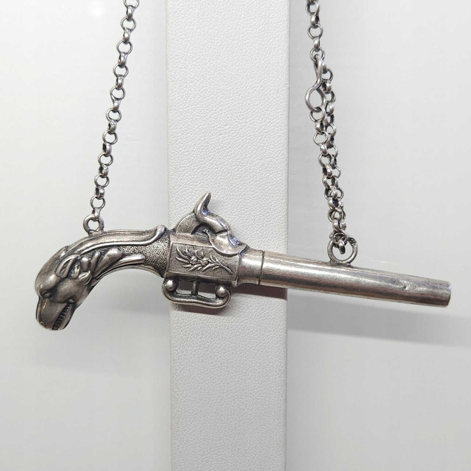 Chatelaine – element ozdobny – pistolet- srebro 0,800 kon. XIX w.