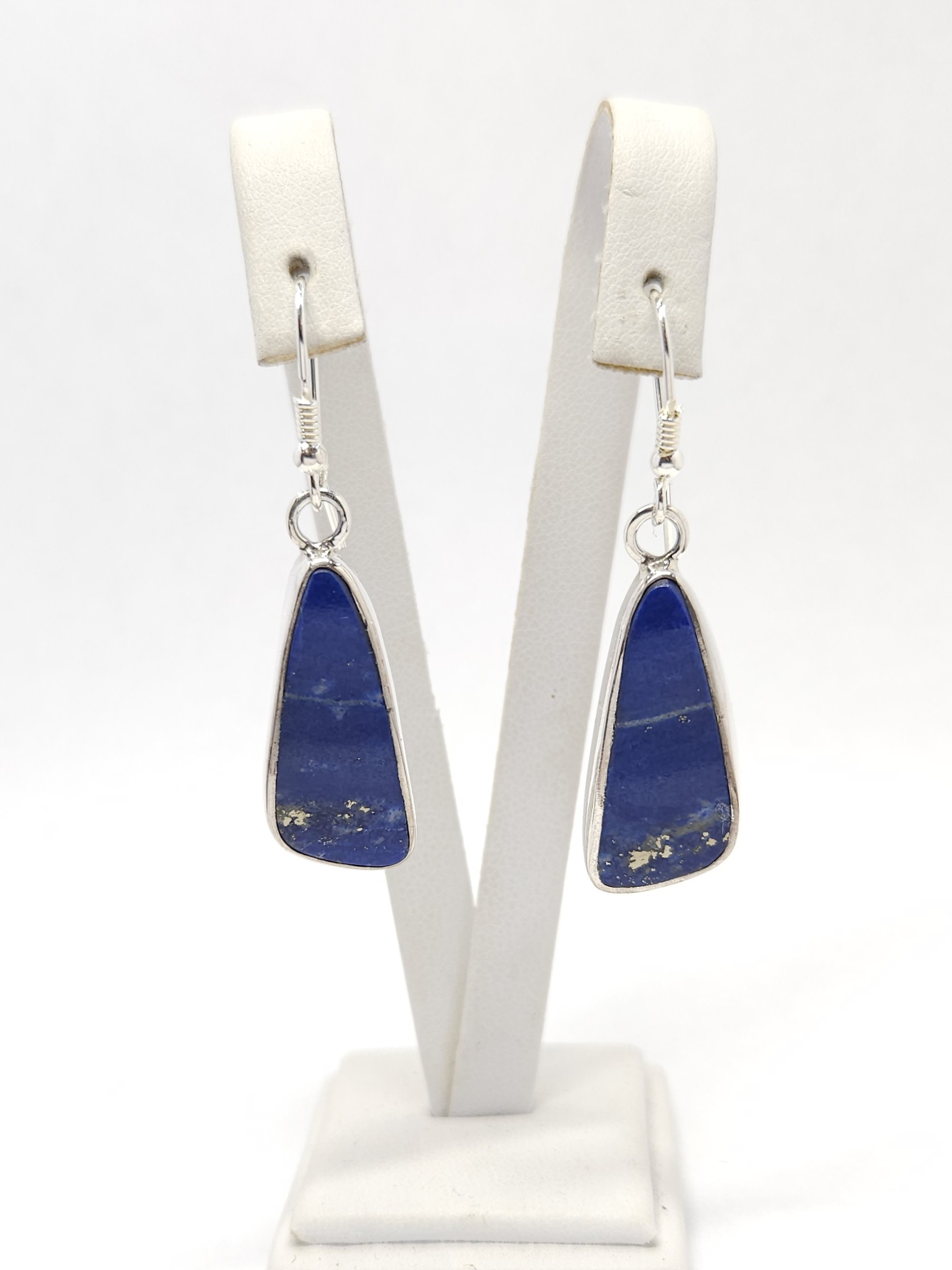 Srebrne, wiszące kolczyki z granatowym kamieniem naturalnym – lapis lazuli