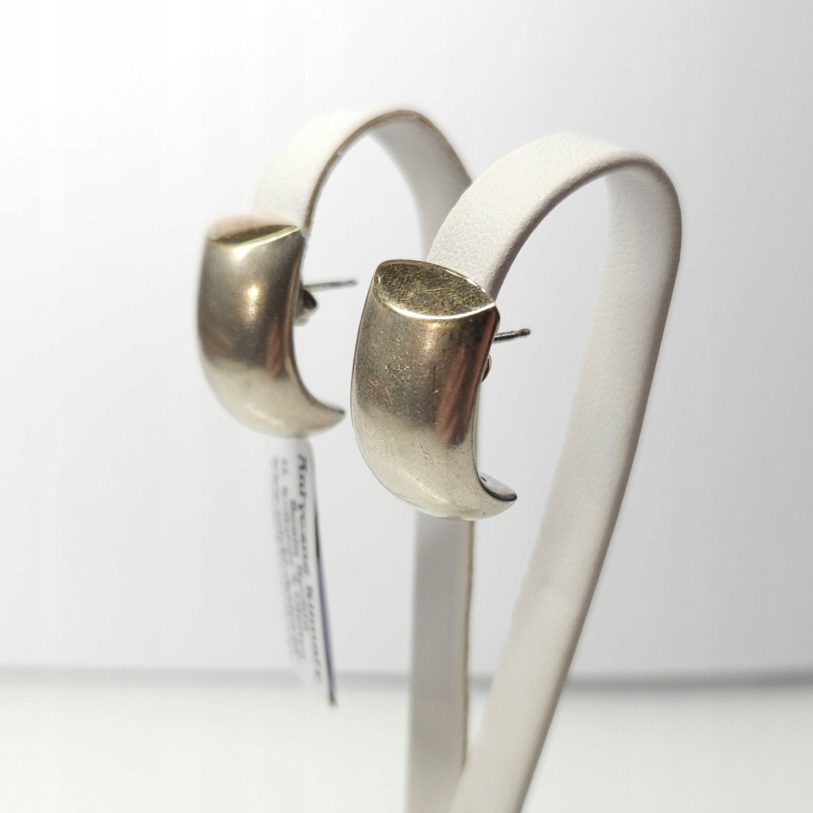 Efektowne, szerokie, srebrne kolczyki – sztyfty o zaokrąglonej formie, miejscowo złocone