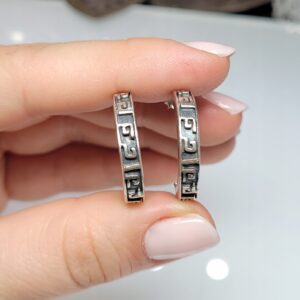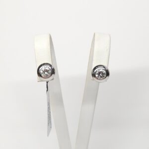 Drobne, złote kolczyki – sztyfty z pojedynczymi cyrkoniami; zatyczki silikonowe z elementami ze złota