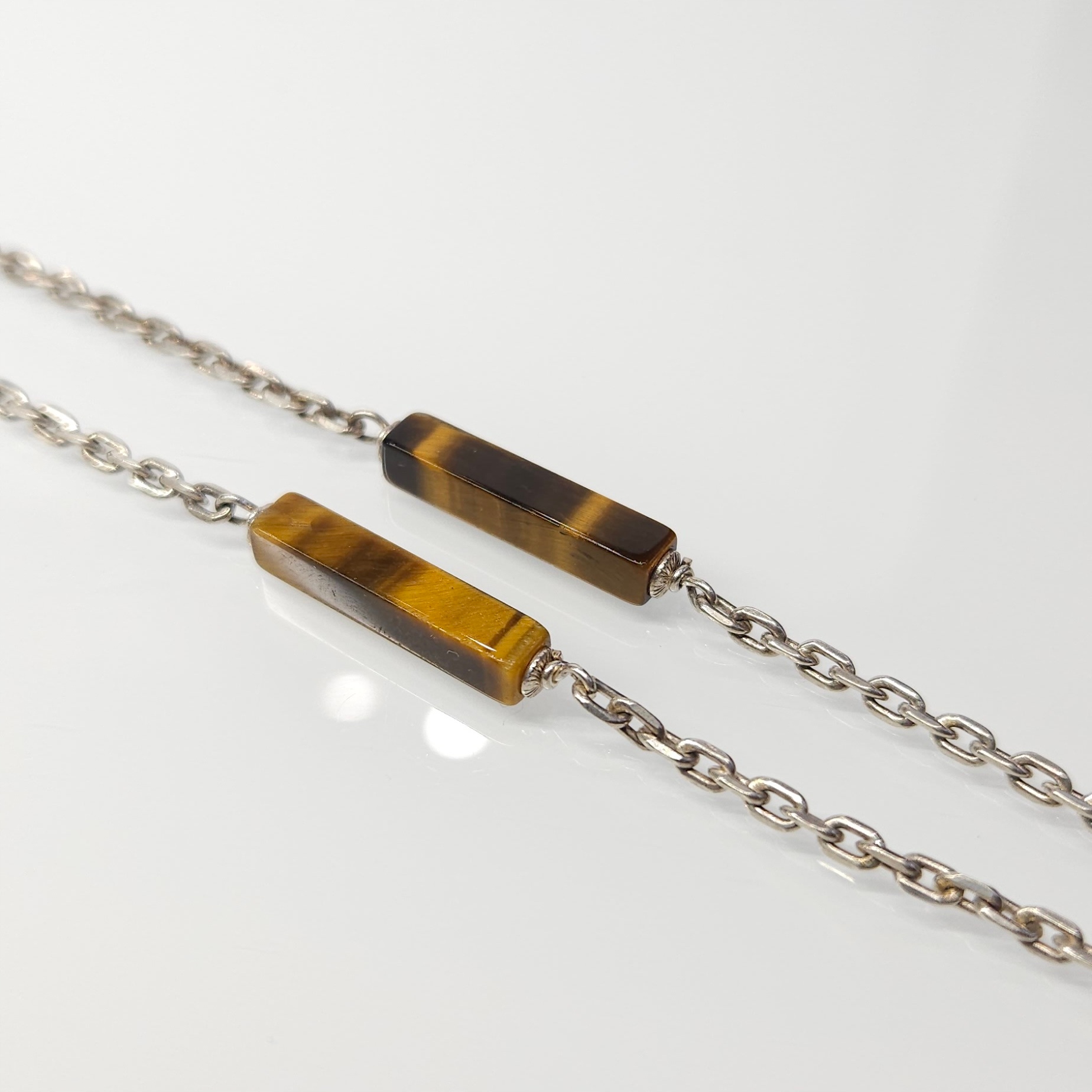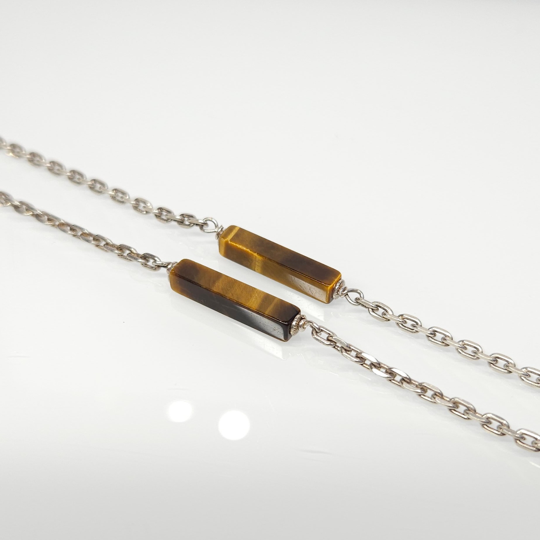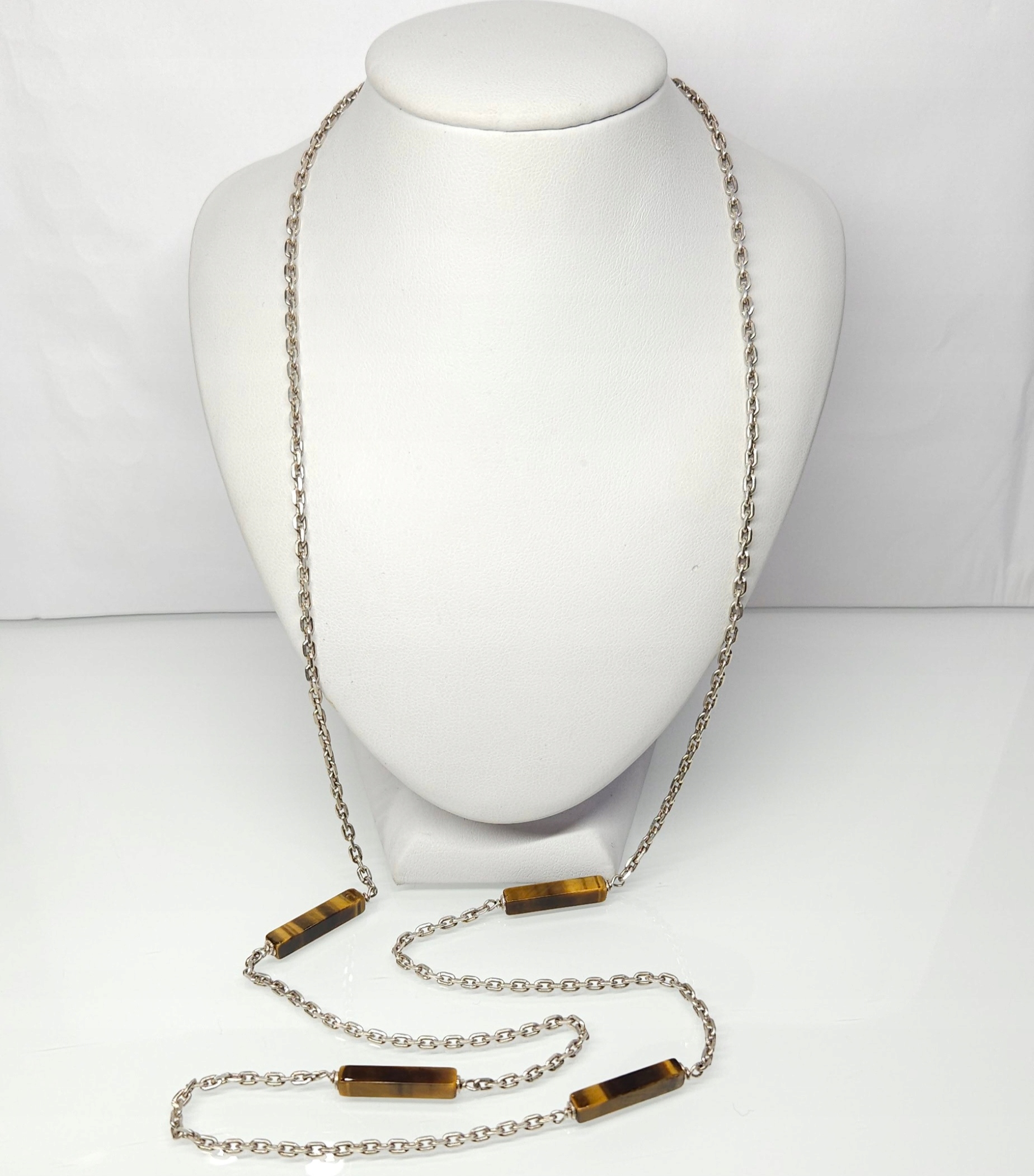Strona główna » Sklep » Długi, srebrny naszyjnik z tygrysim okiem, srebro pr. 0,835 obwód 80,5cm