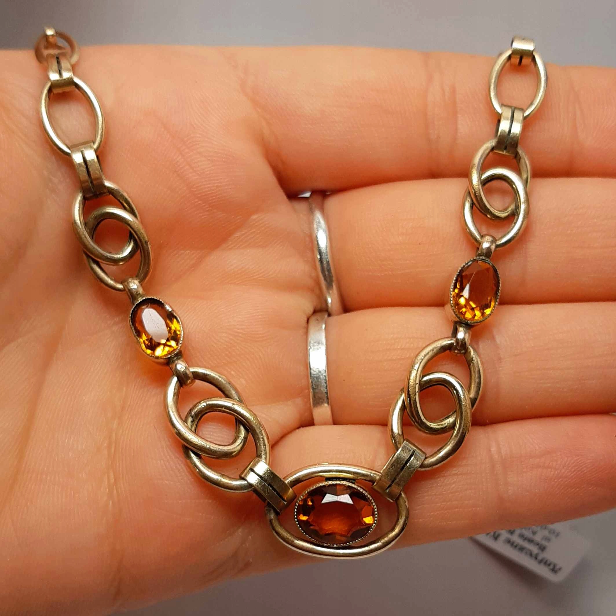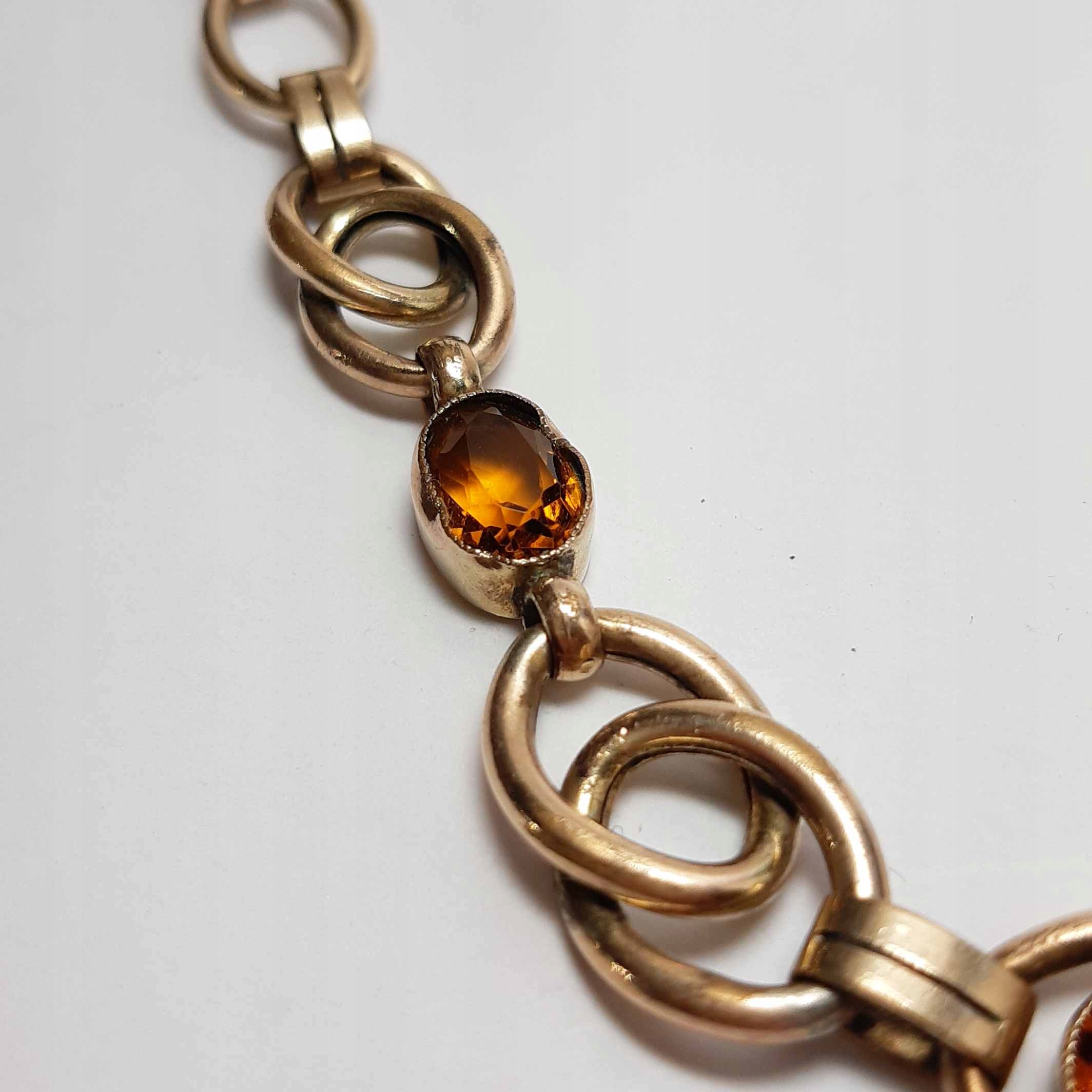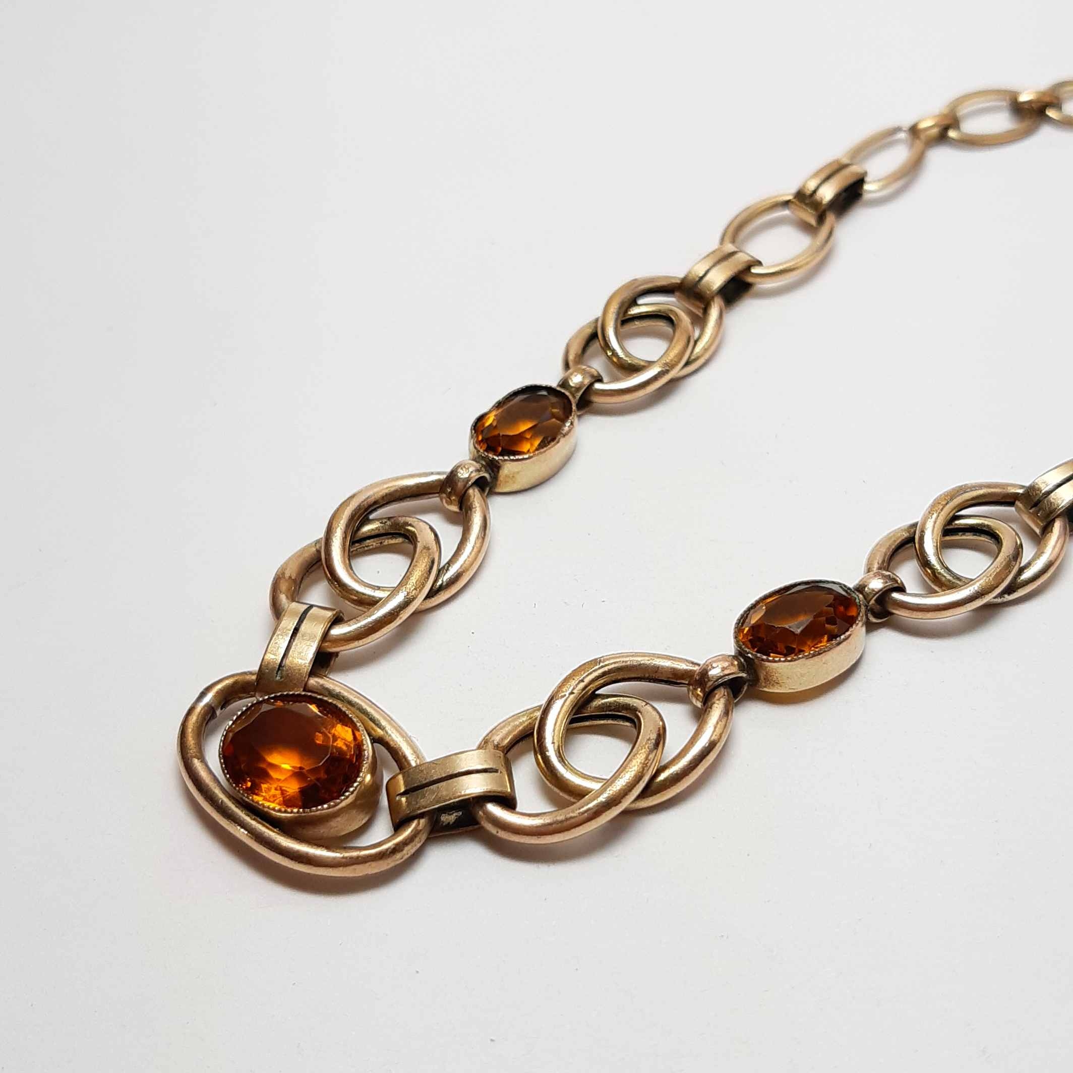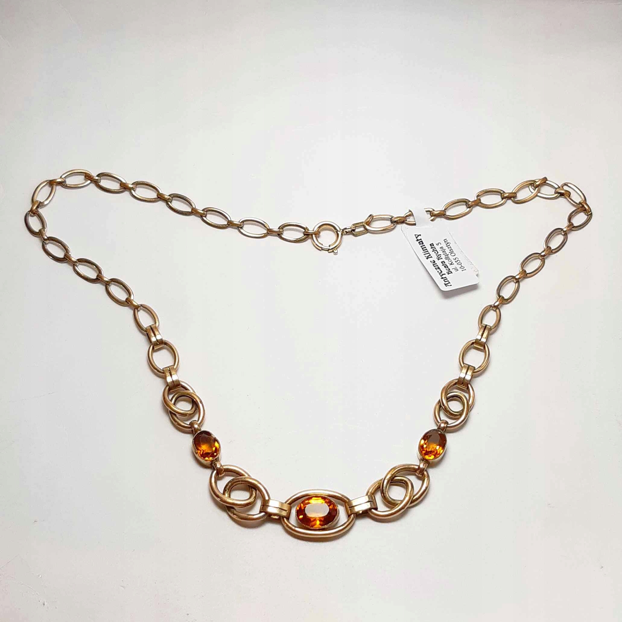 Naszyjnik pozłacany początek XX w. rude kamienie