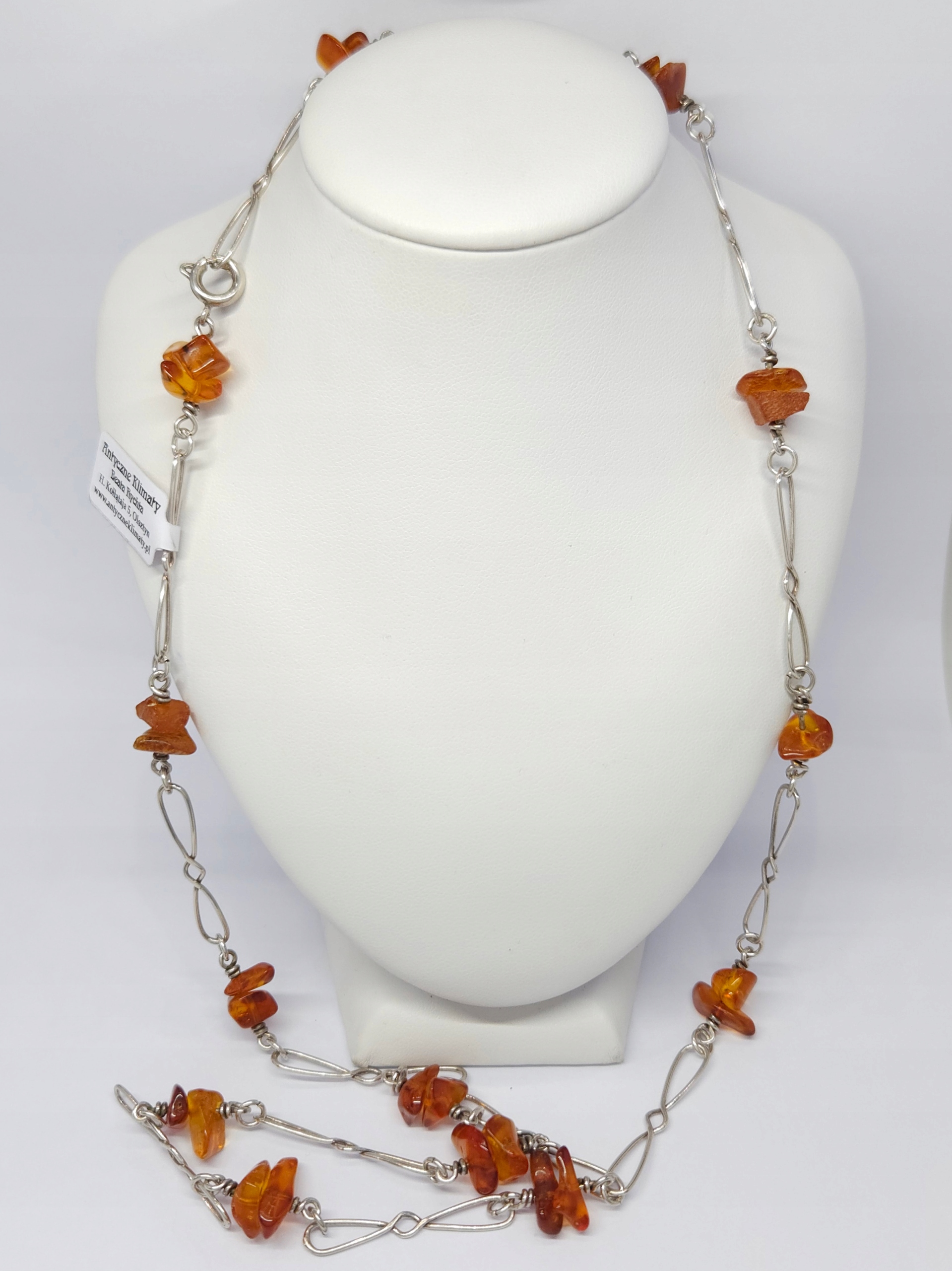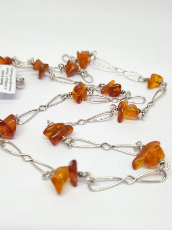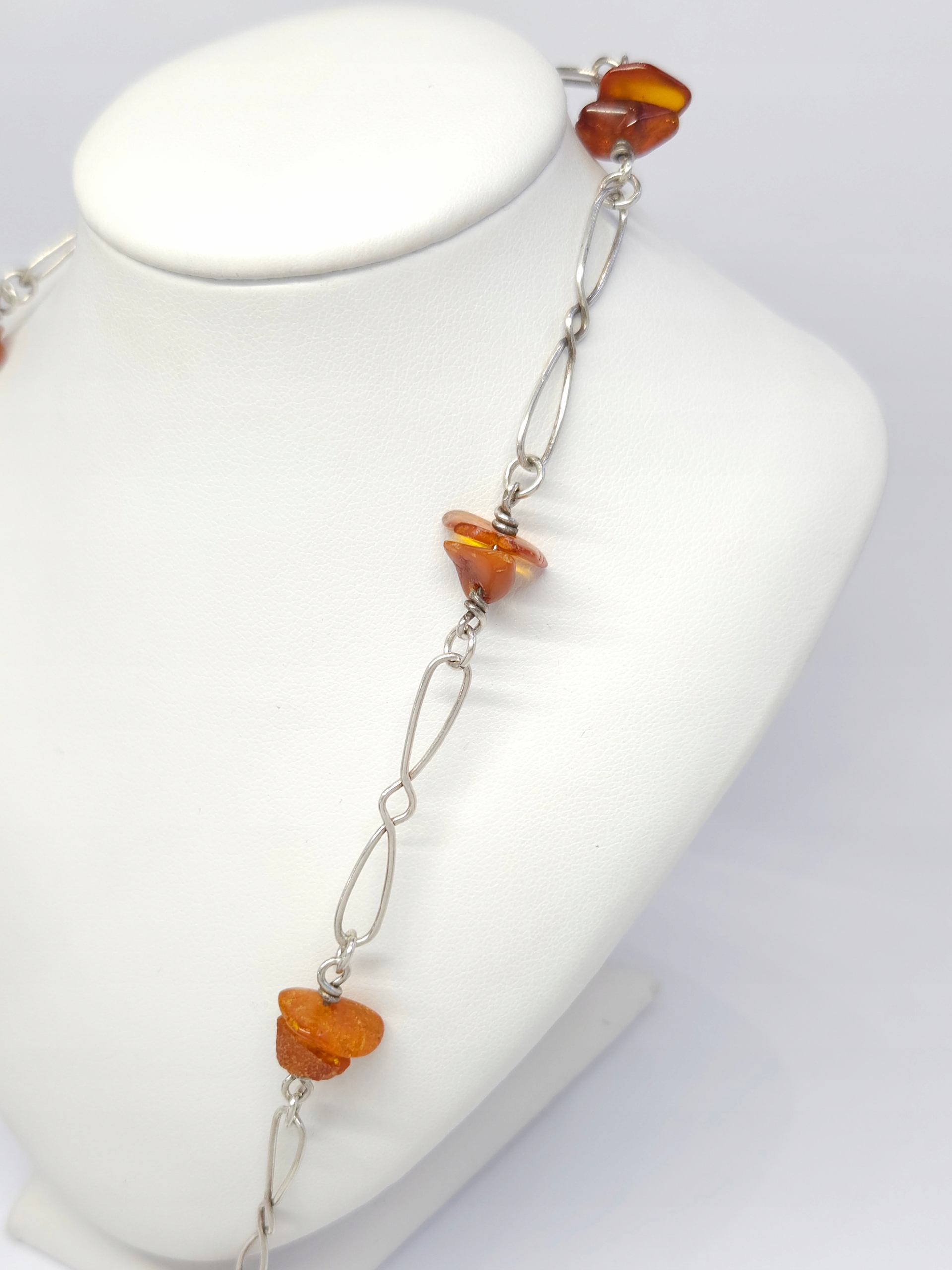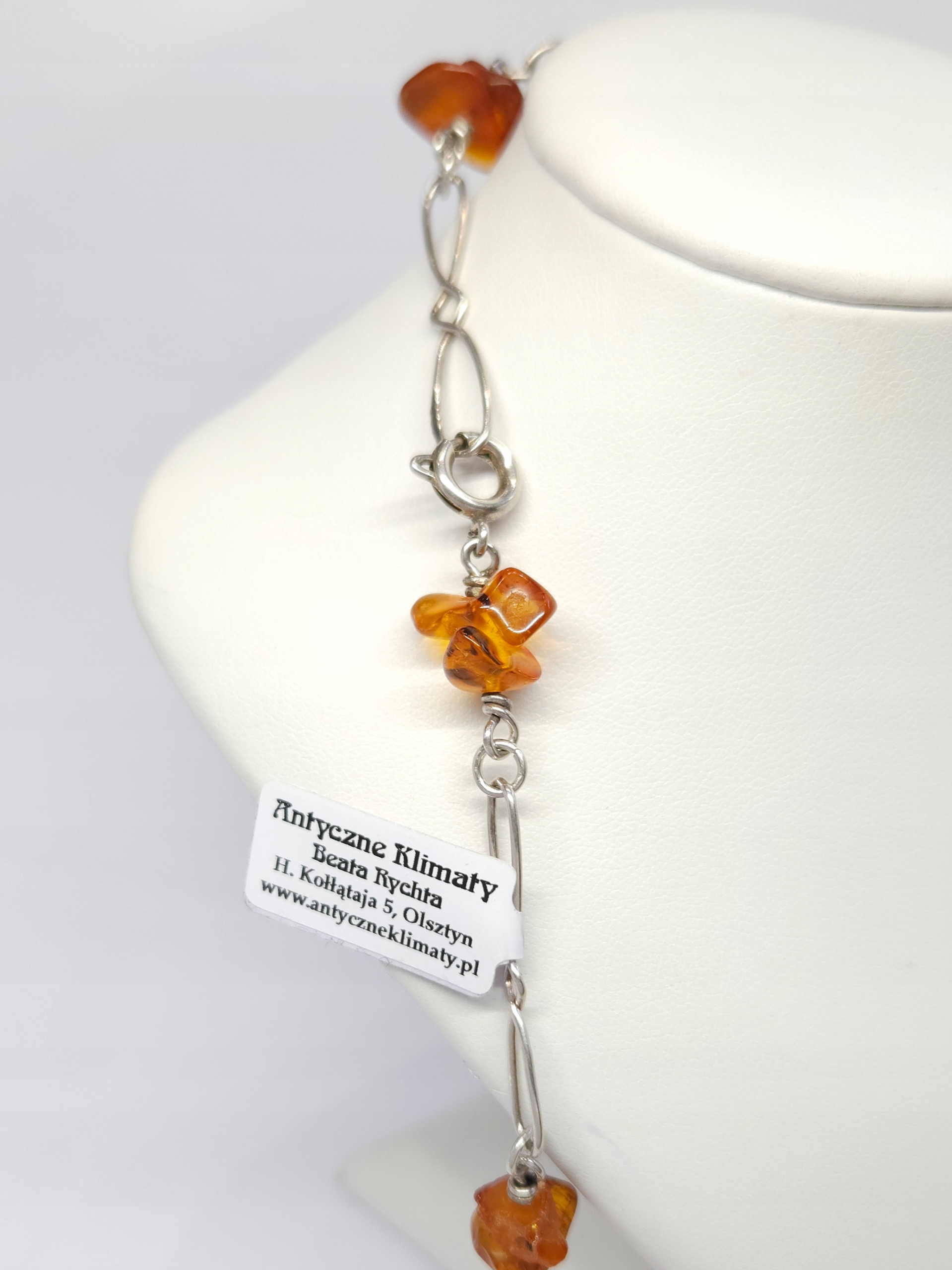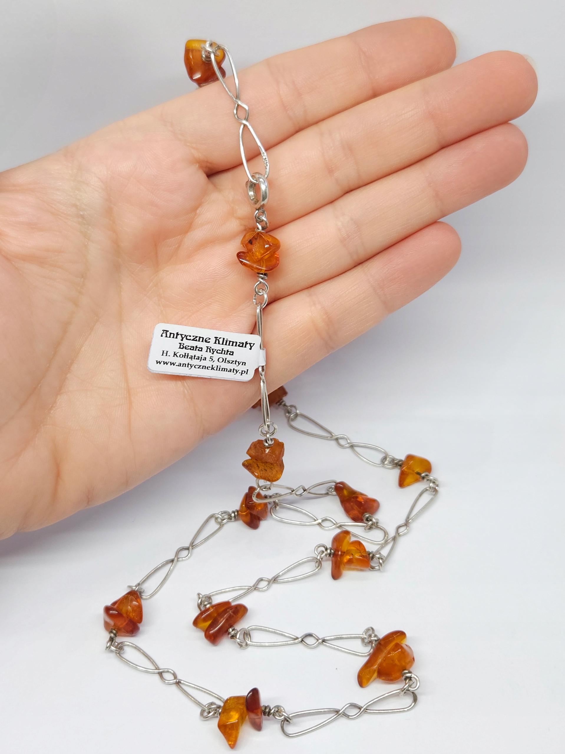 Srebrny naszyjnik z bursztynami, srebro pr. 0,800, obw. 70,5cm