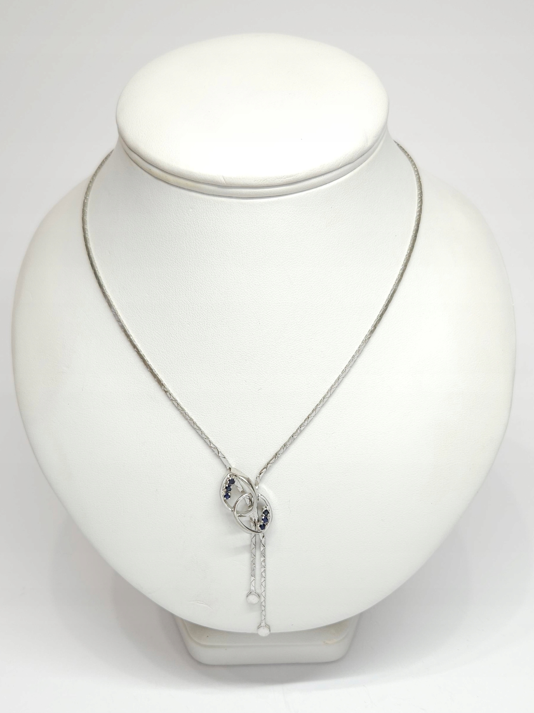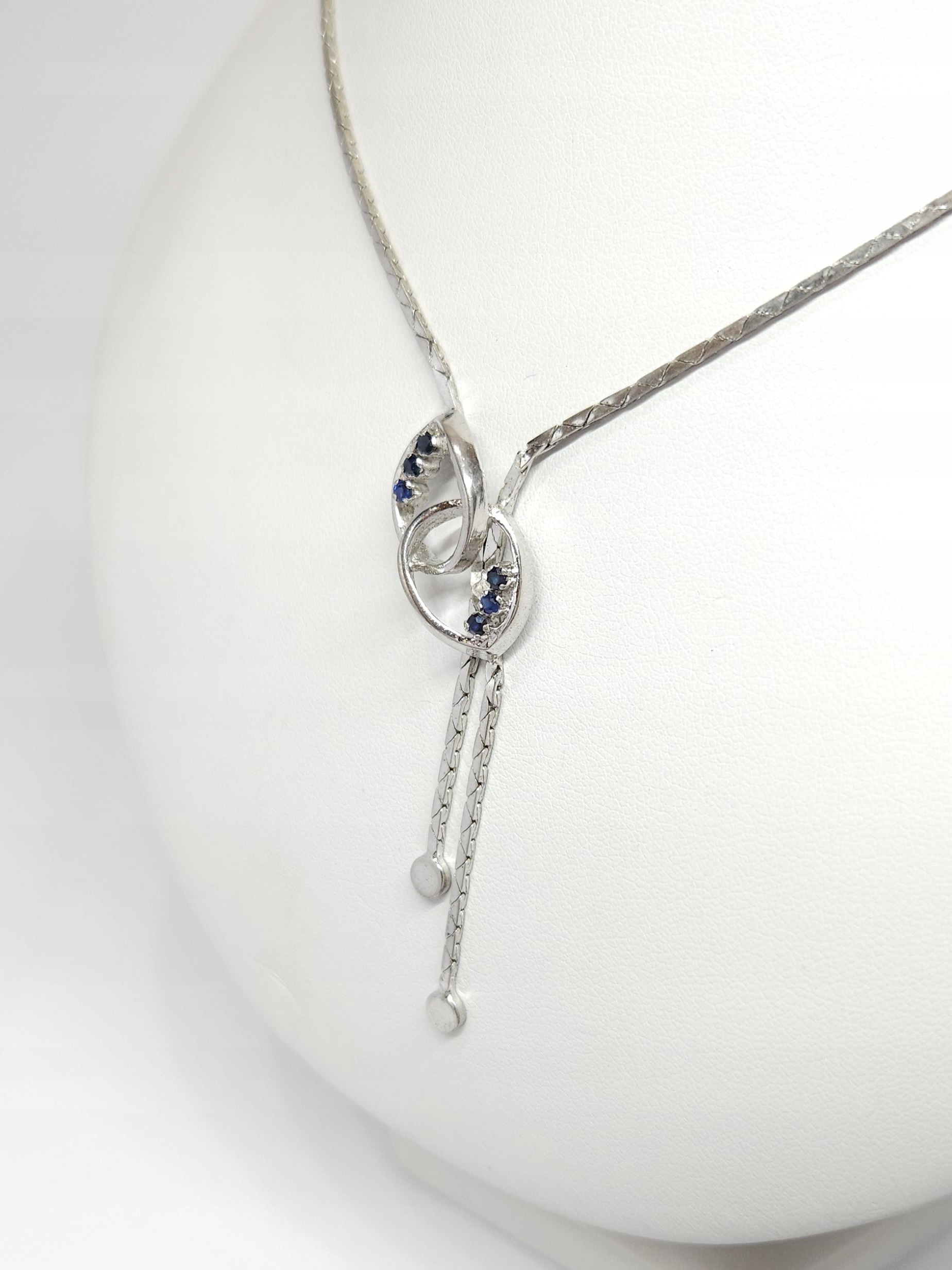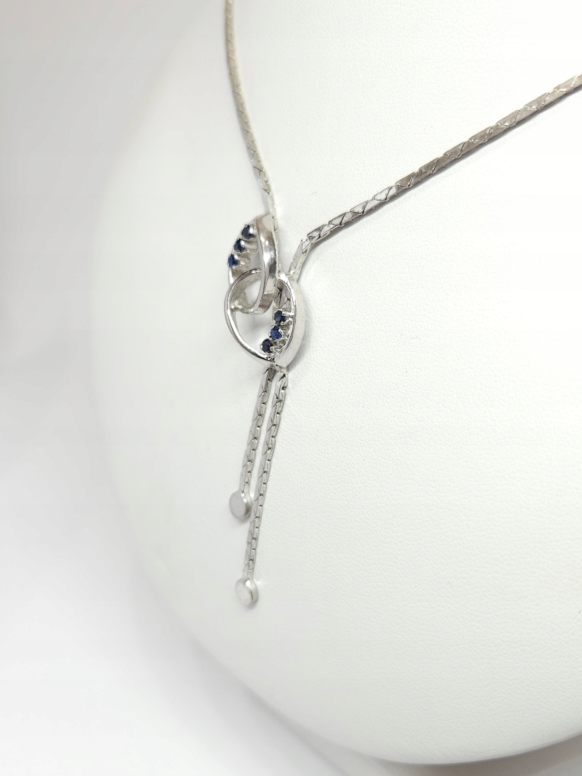 Naszyjnik wykonany ze srebra rodowanego, z elementem ozdobnym wysadzanym ciemnogranatowymi chryzoberylami