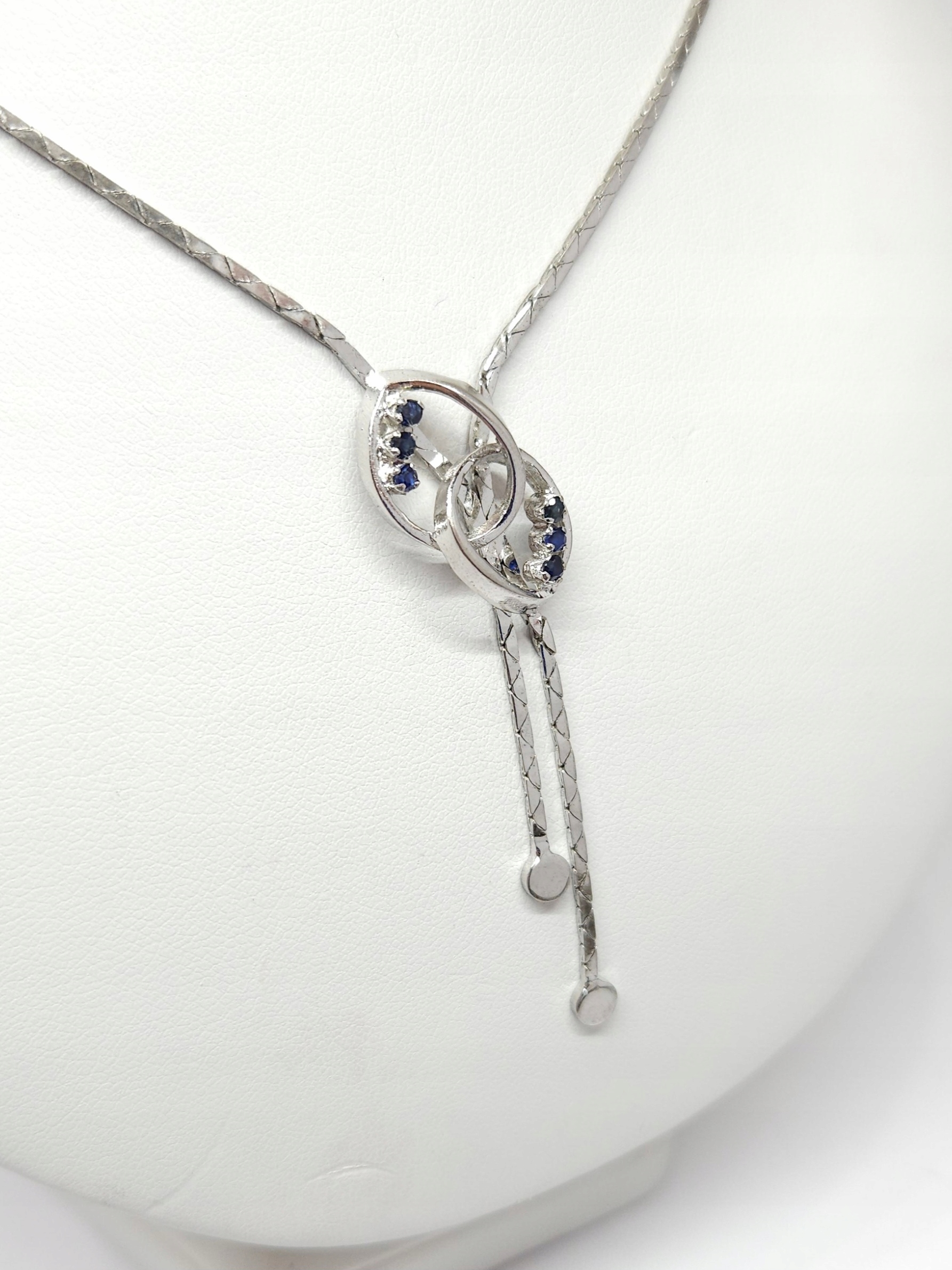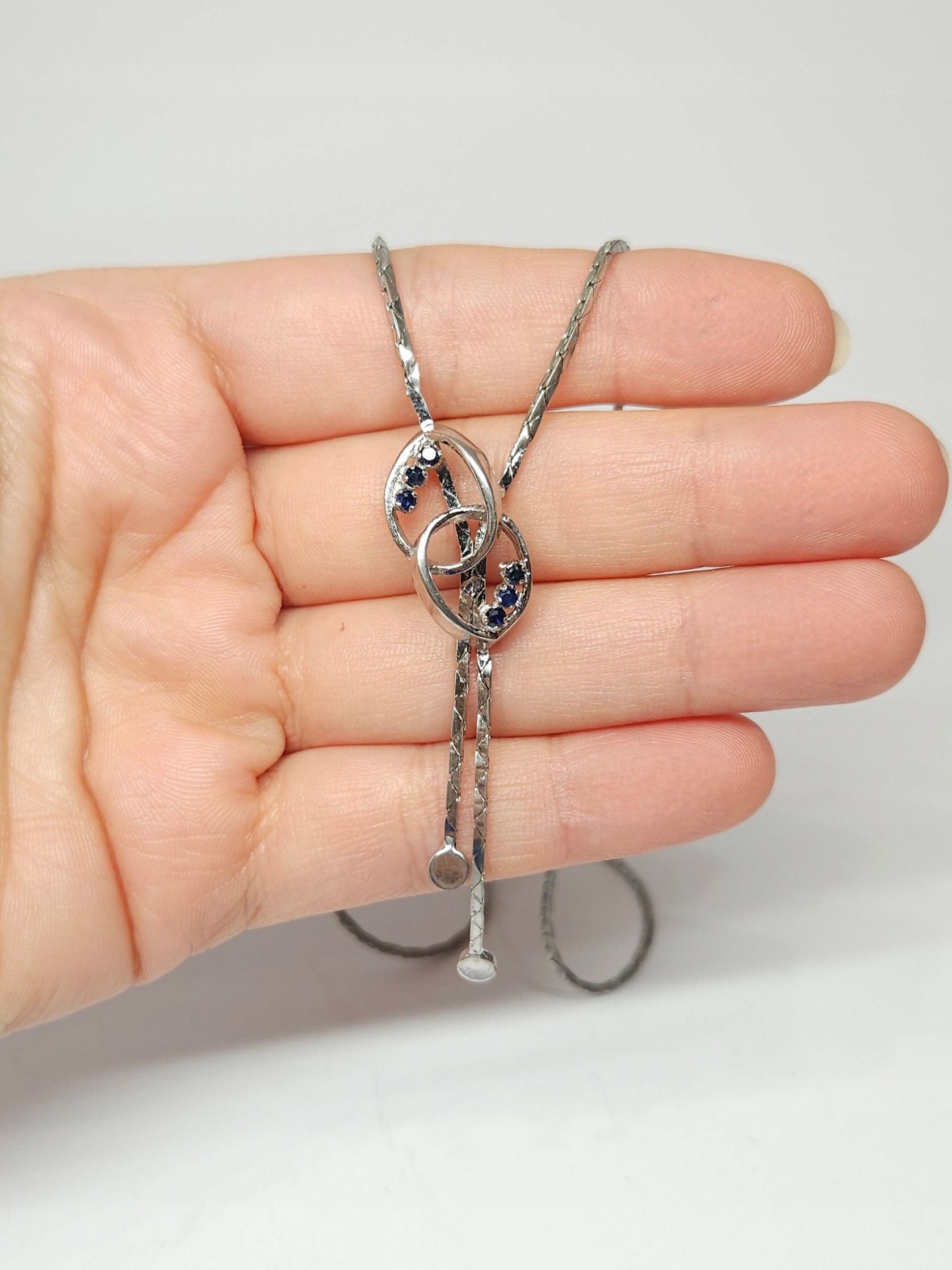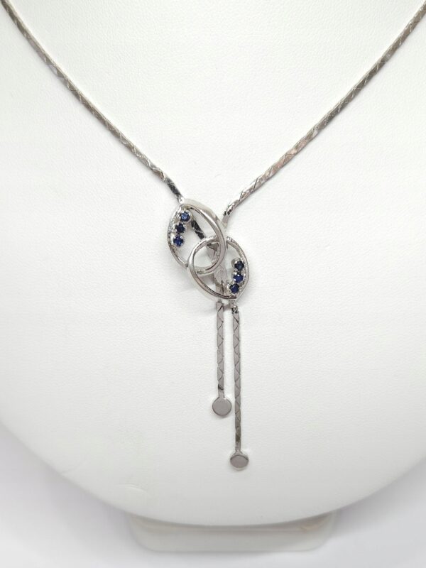 Naszyjnik wykonany ze srebra rodowanego, z elementem ozdobnym wysadzanym ciemnogranatowymi chryzoberylami