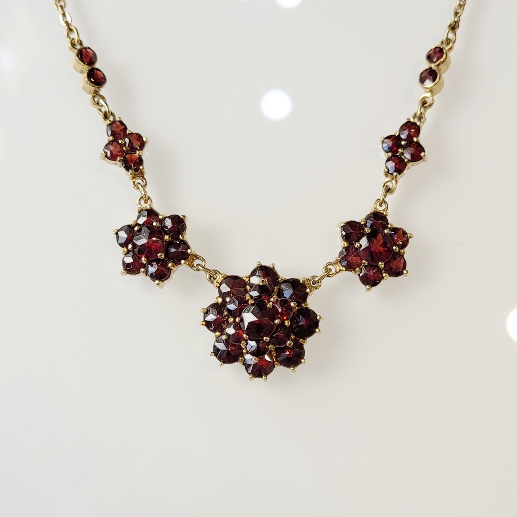 Strona główna » Sklep » Złoty naszyjnik złoto 0,333 granaty rozety stopniowane obw. 46,4cm