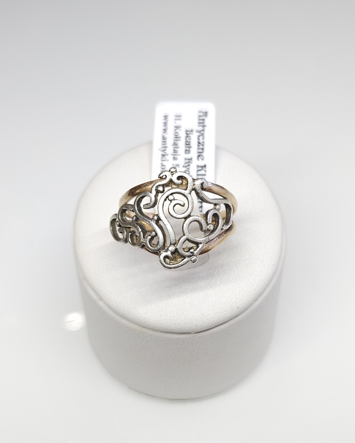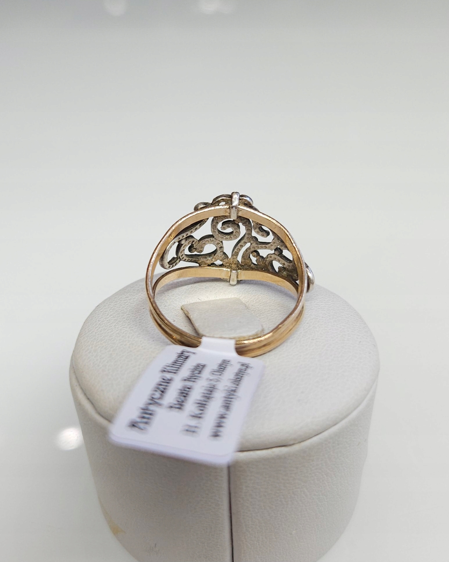 Ażurowy pierścionek, złoto pr. 0,585 srebro pr. 0,800 roz. 19