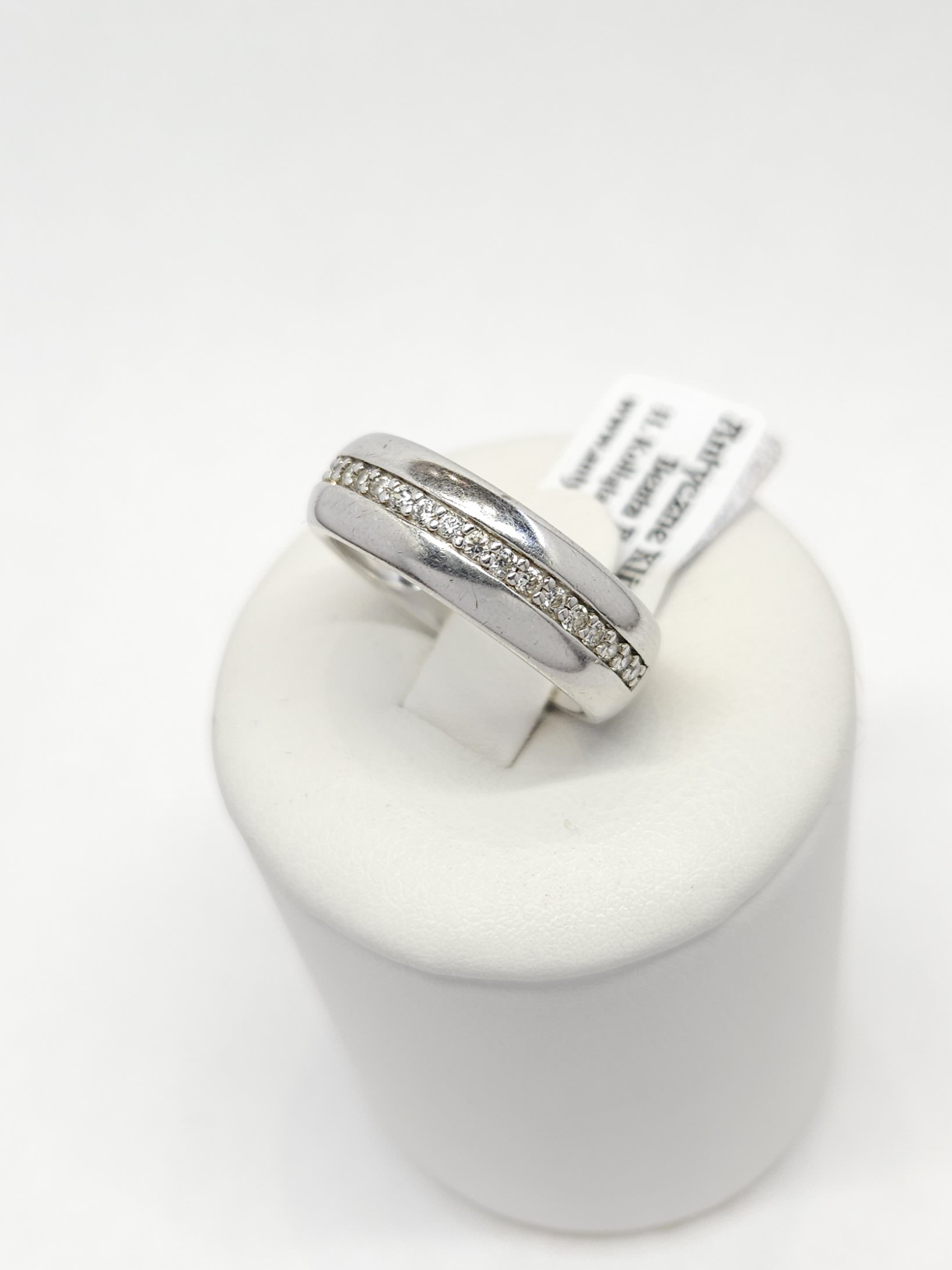 Srebrna, zaokrąglona obrączka, zdobiona paskiem cyrkonii w górnej części – 20szt.