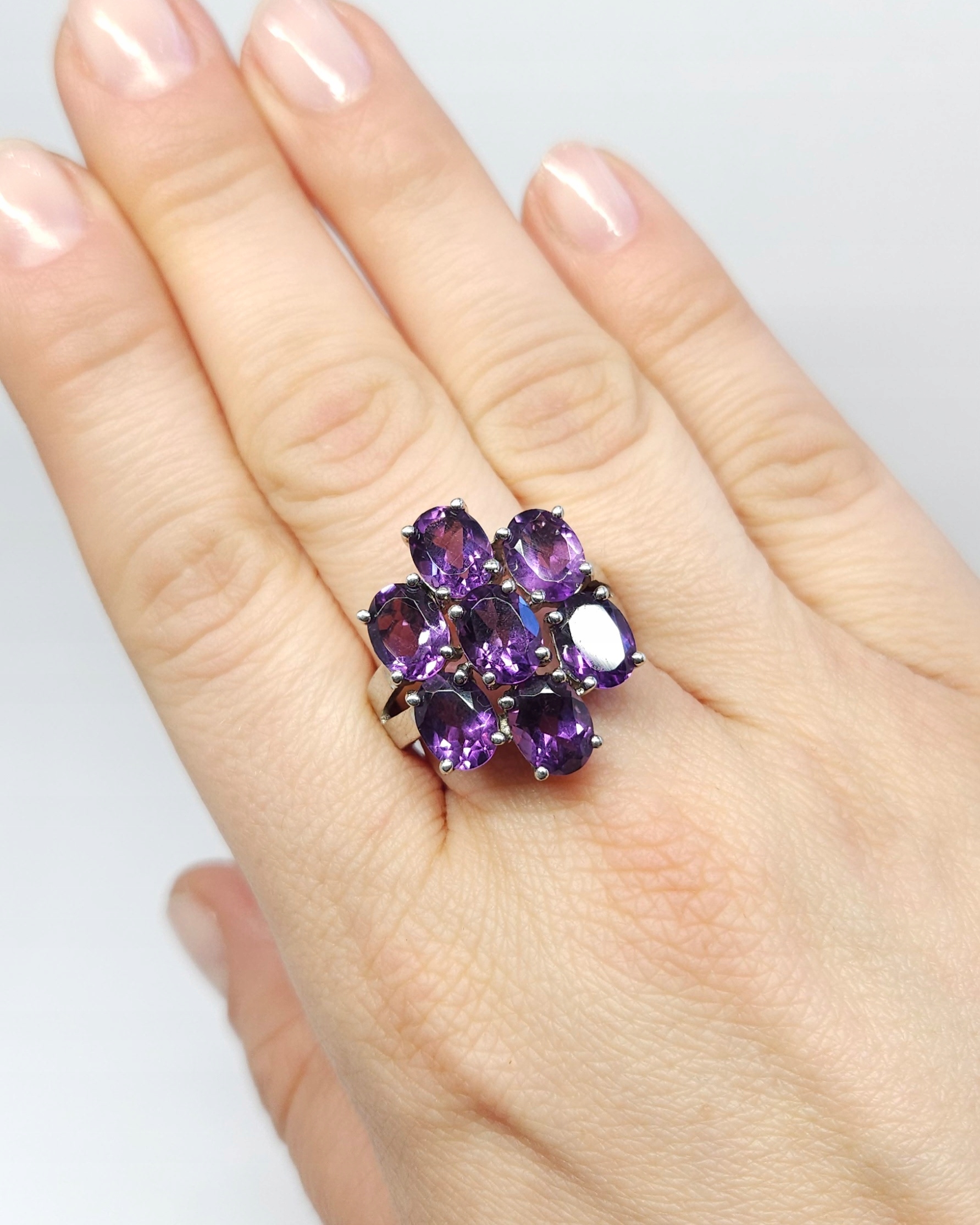 Strona główna » Sklep » Srebrny duży pierścionek z ametystami, srebro pr. 0,925 roz. 19