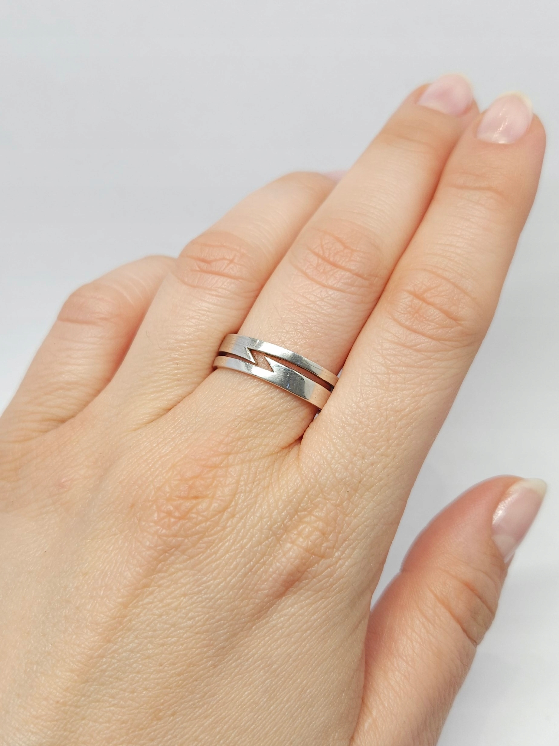 Srebrny pierścionek – obrączka z motywem zygzaka