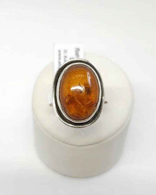 Srebrny pierścionek z owalnym bursztynem w szlifie kaboszonowym