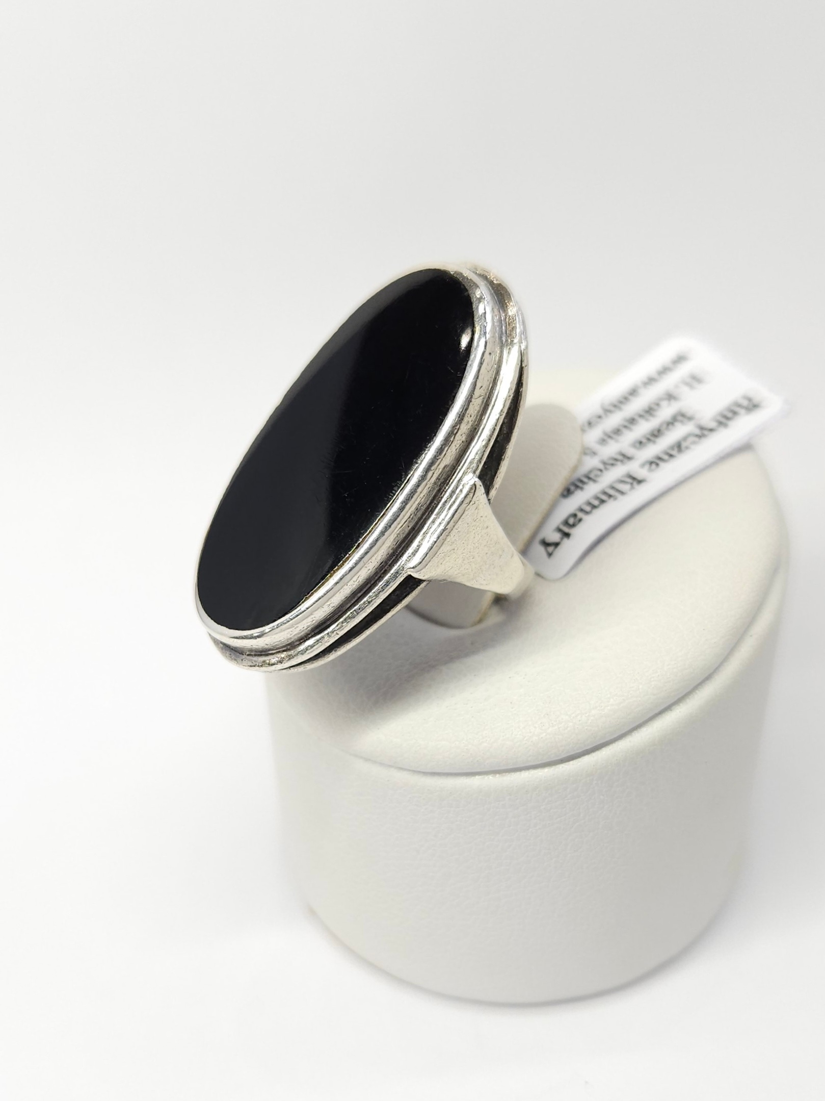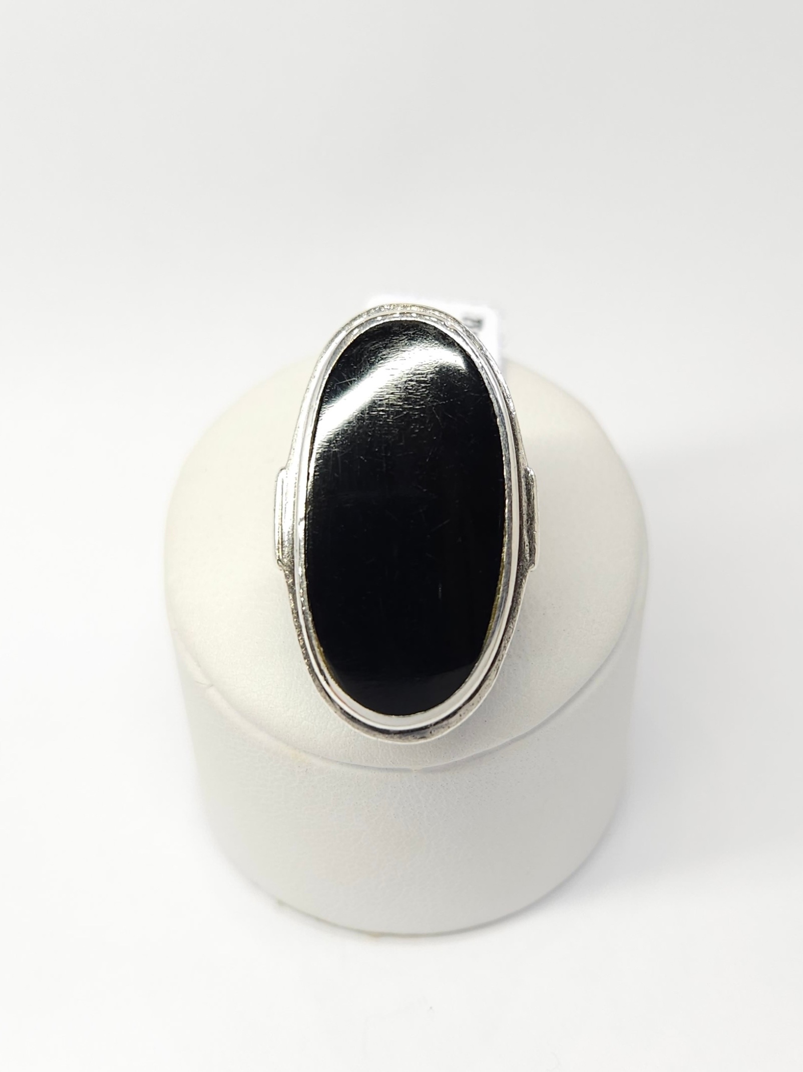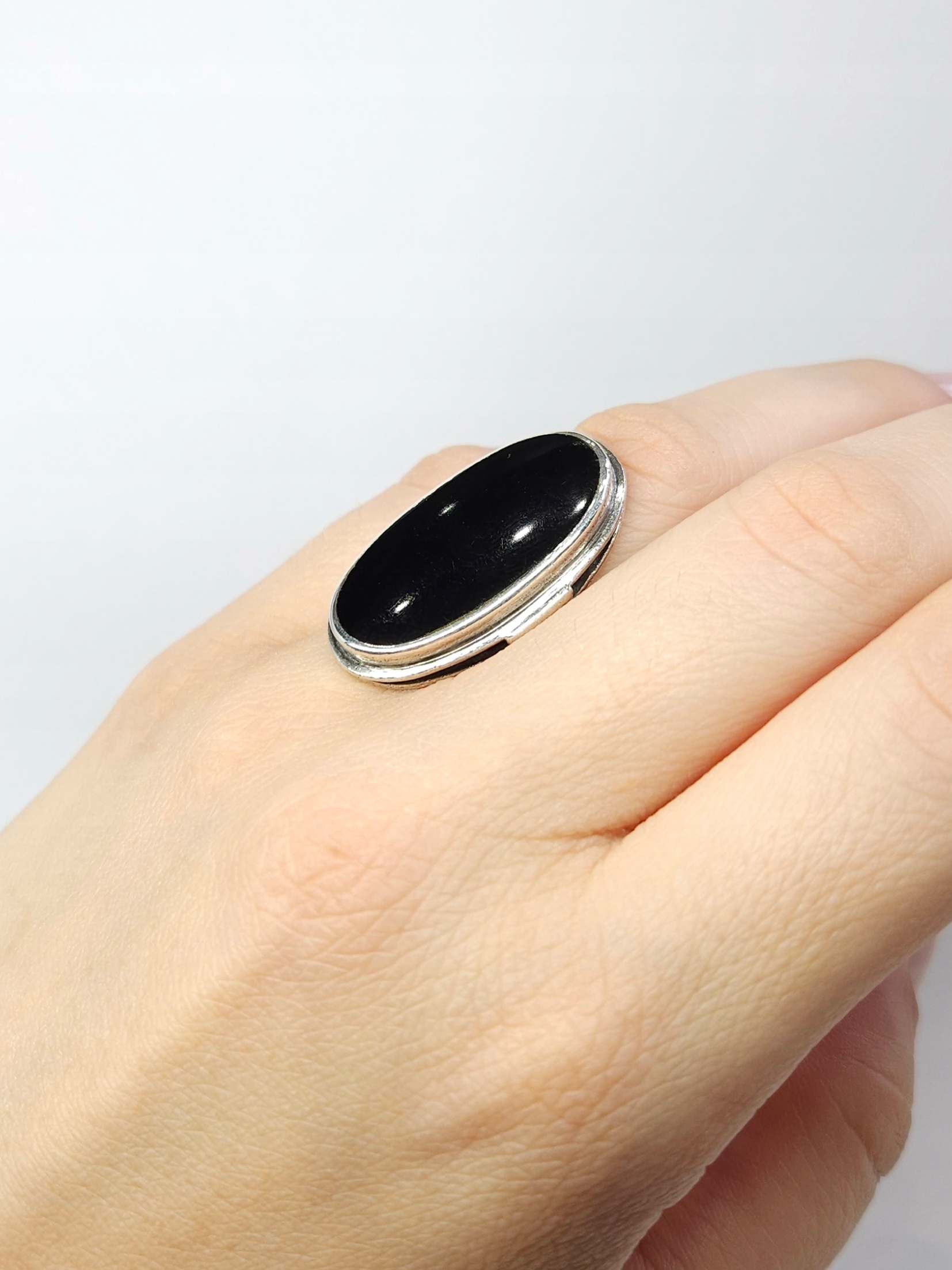 Srebrny pierścionek z owalnym onyksem, srebro pr. 0,925 roz. 11