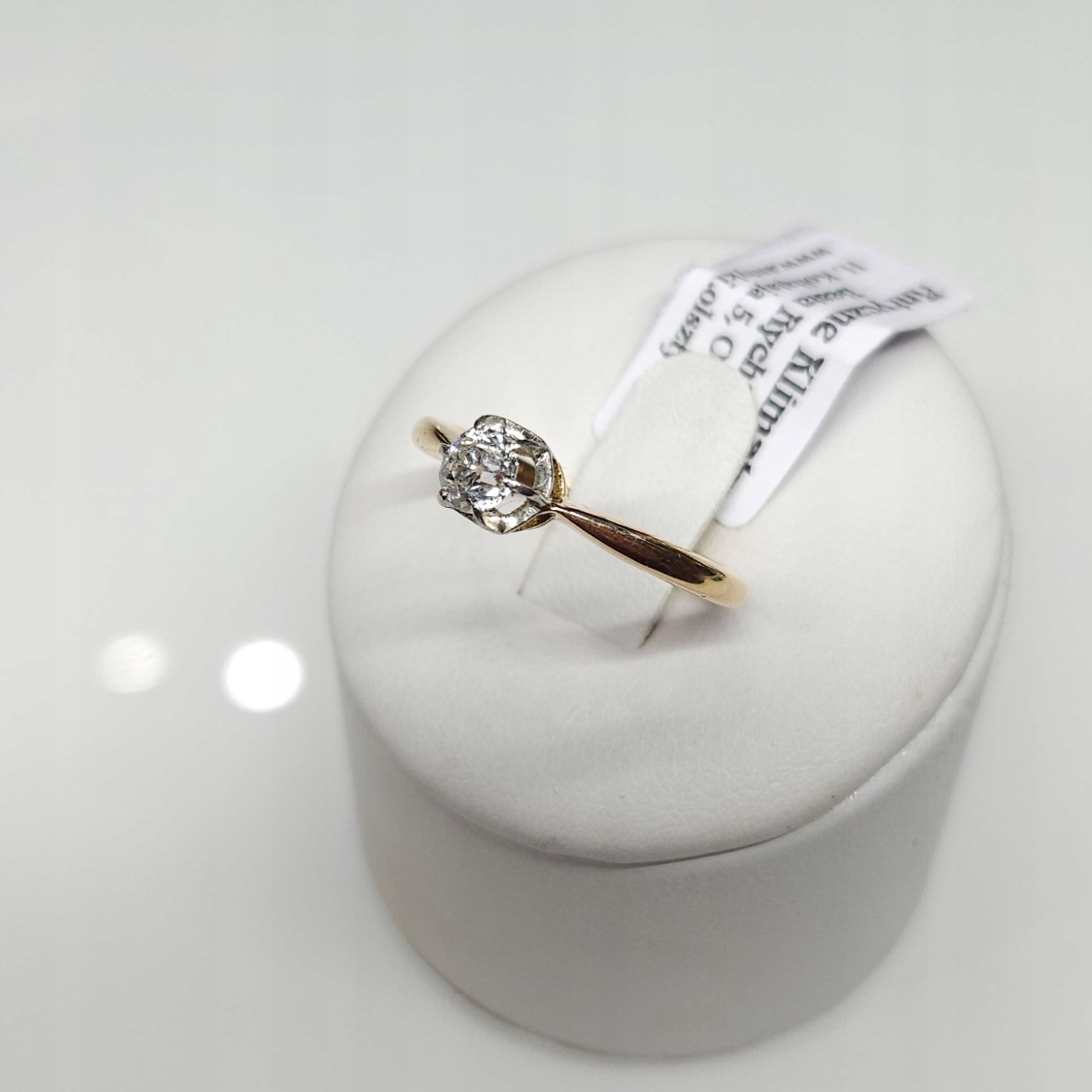 Złoty pierścionek z diamentem w st. szlifie ~0,37ct złoto 0750 platyna r.12