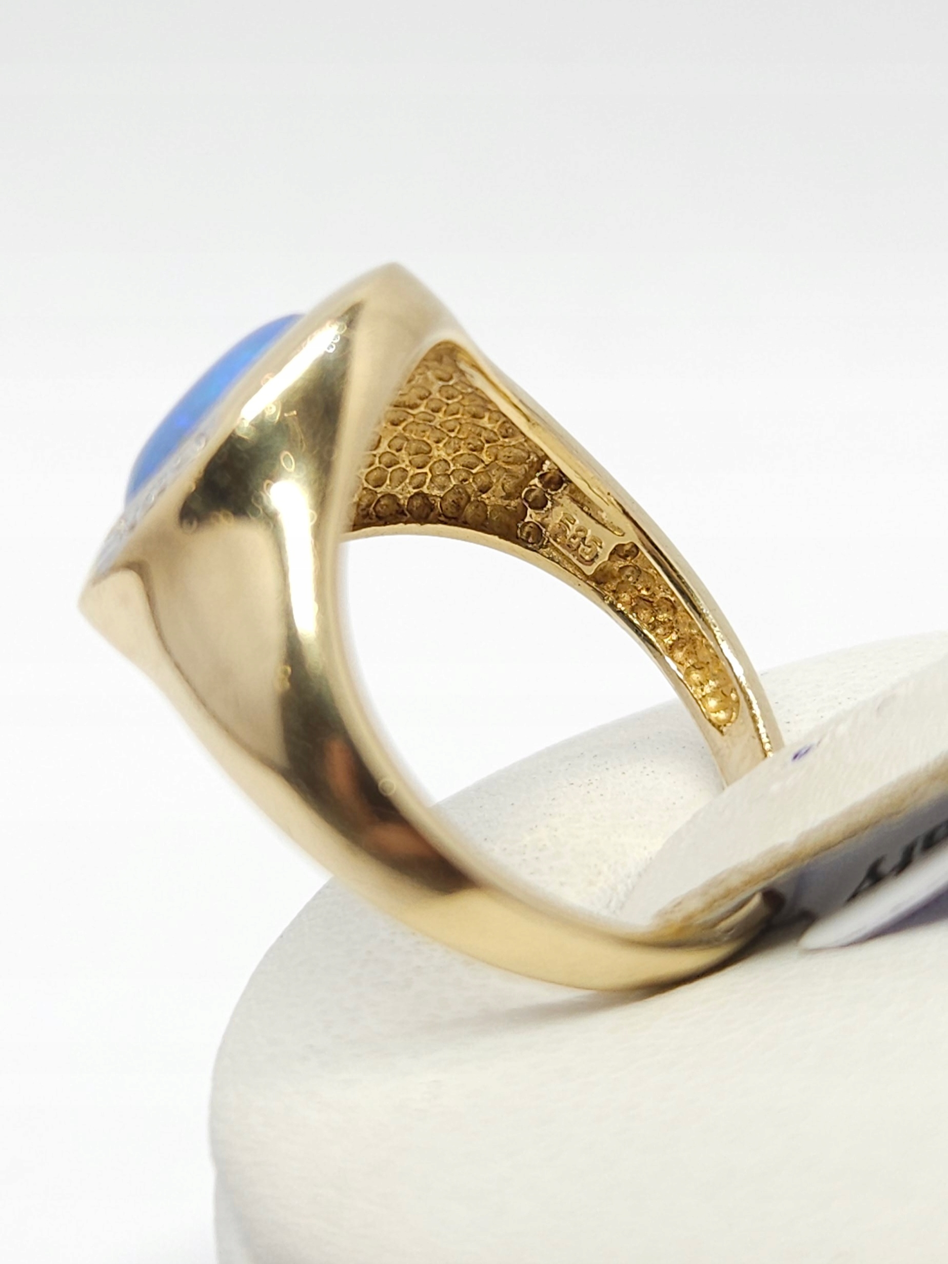 Złoty pierścionek z opalem i brylantami, złoto 0,585 roz. 13