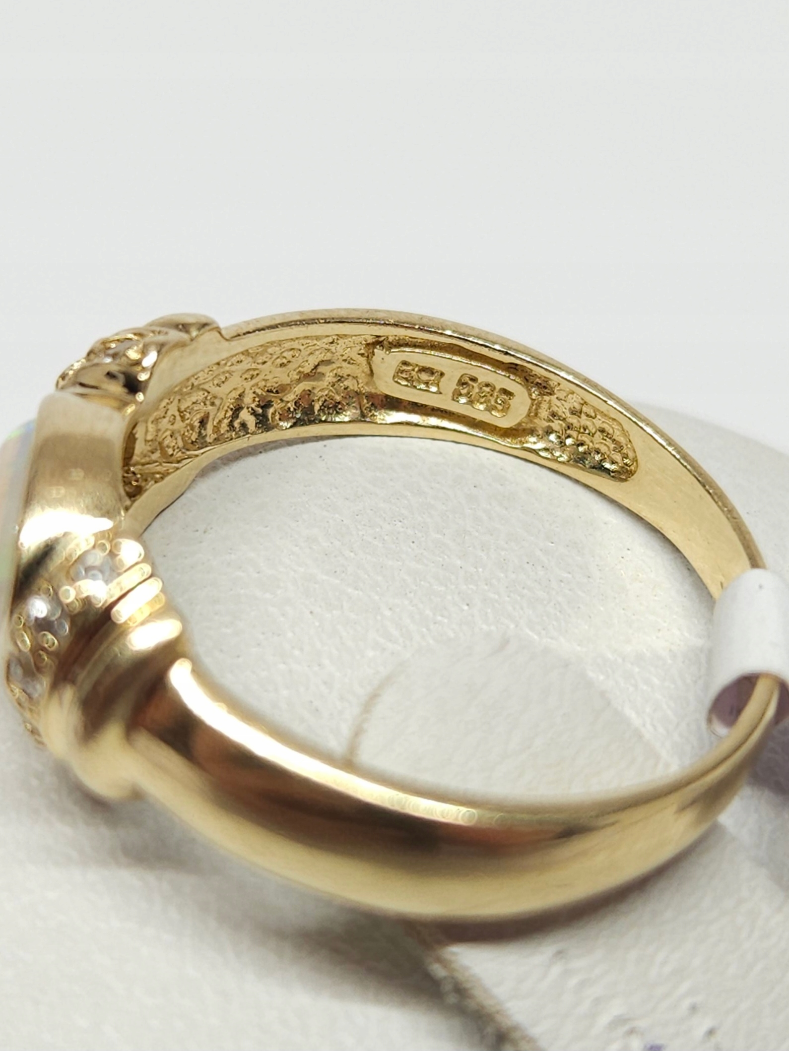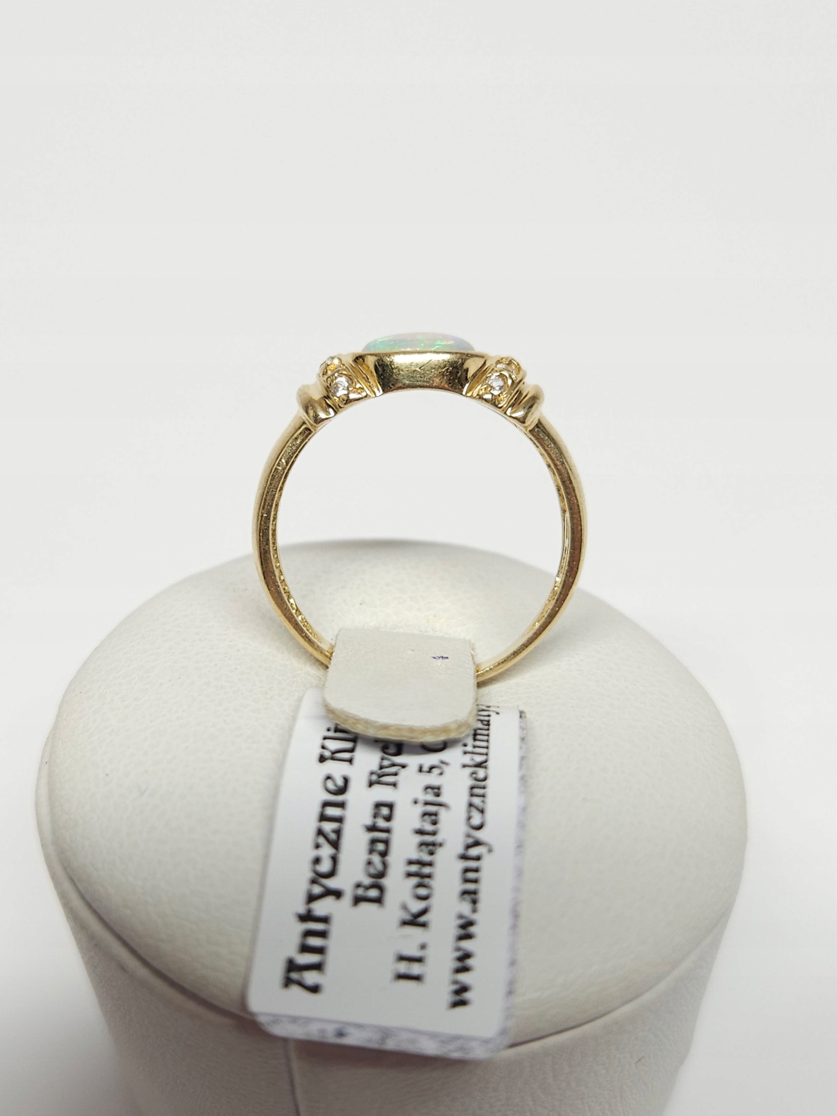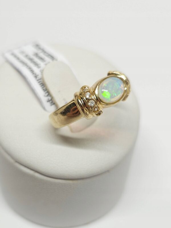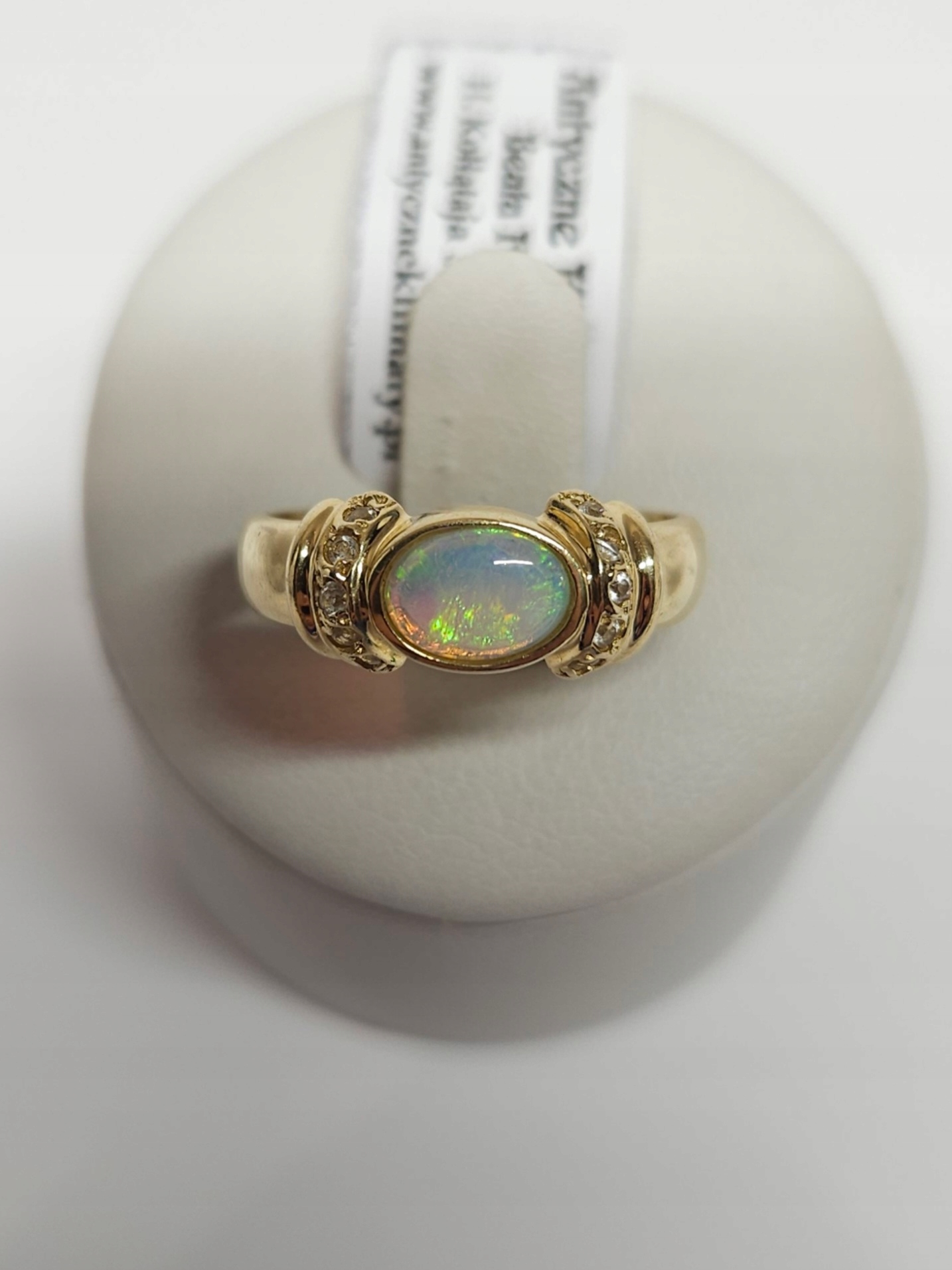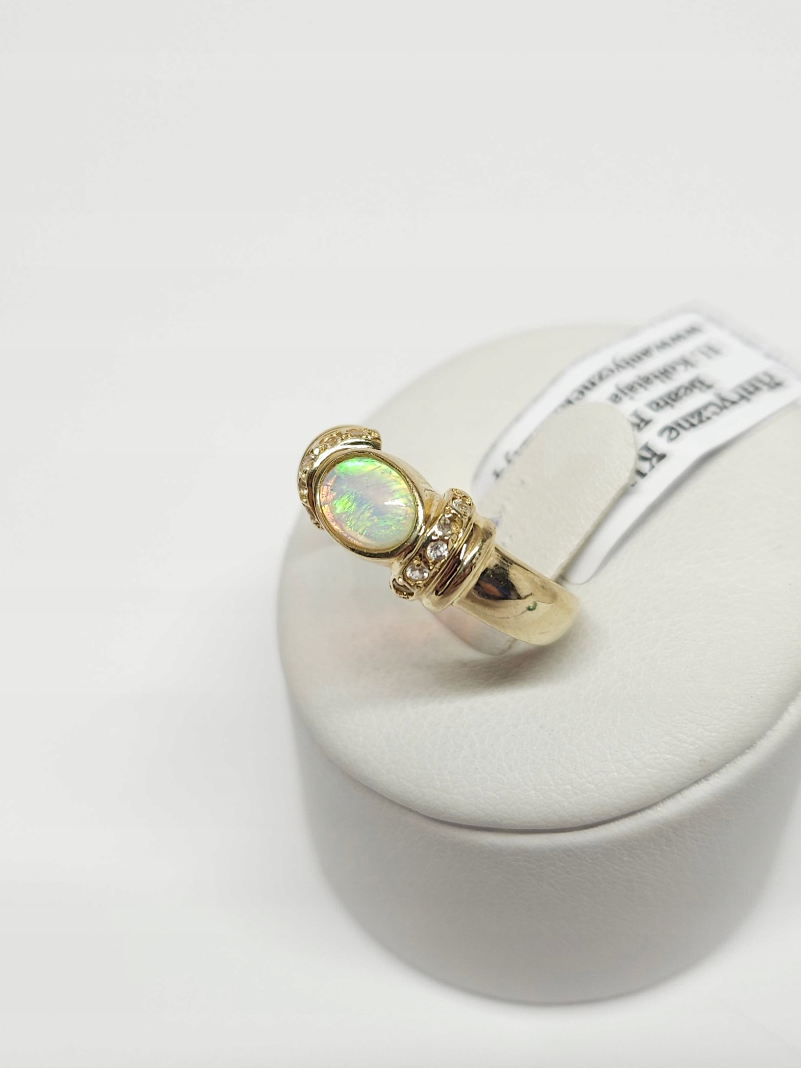 Złoty pierścionek z opalem i diamentami, złoto 0,585 roz. 13/14