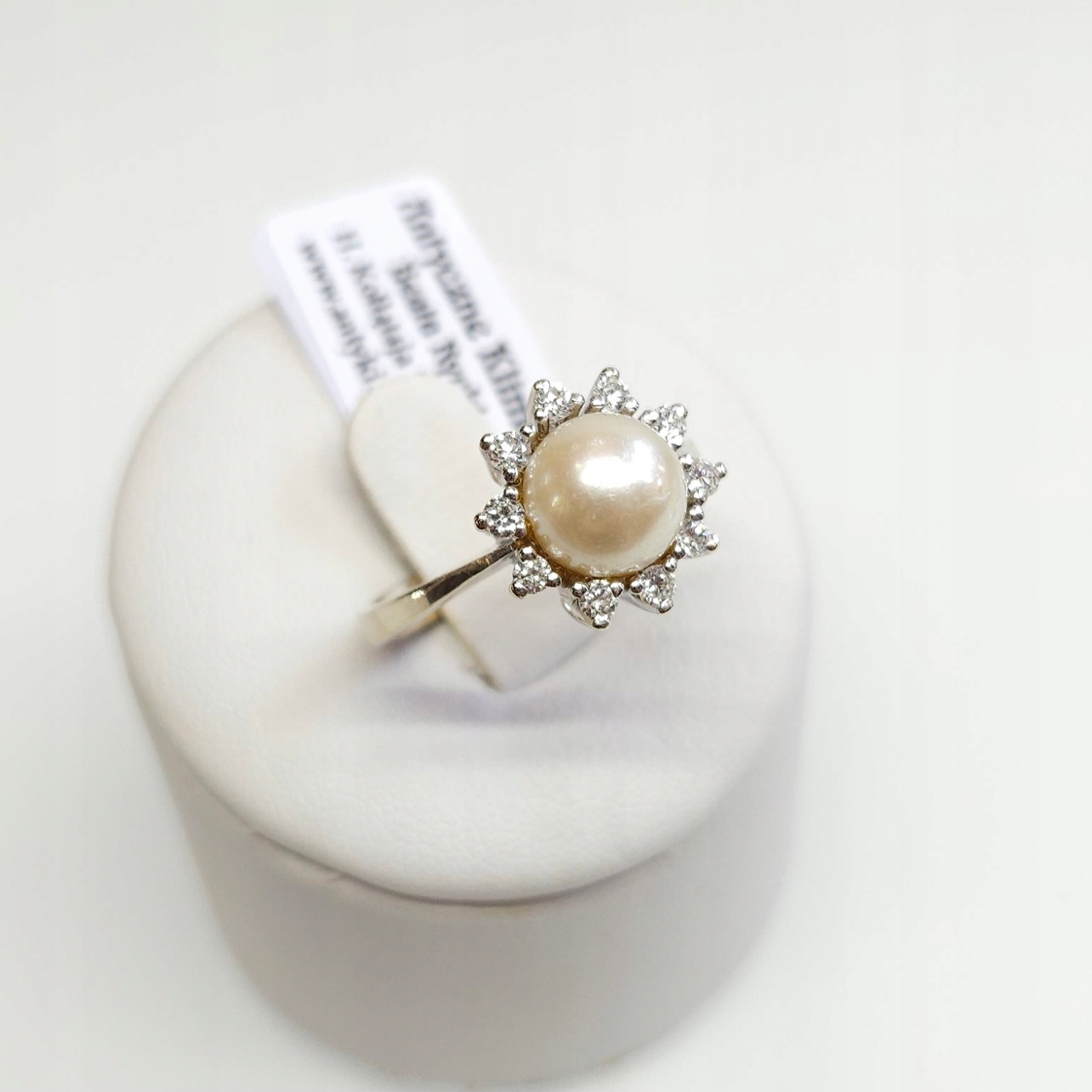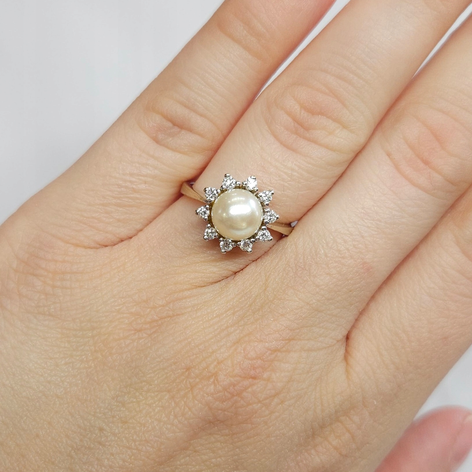 Strona główna » Sklep » Złoty pierścionek z perłą i diamentami ł.~0,29ct, złoto 0,585 r. 15