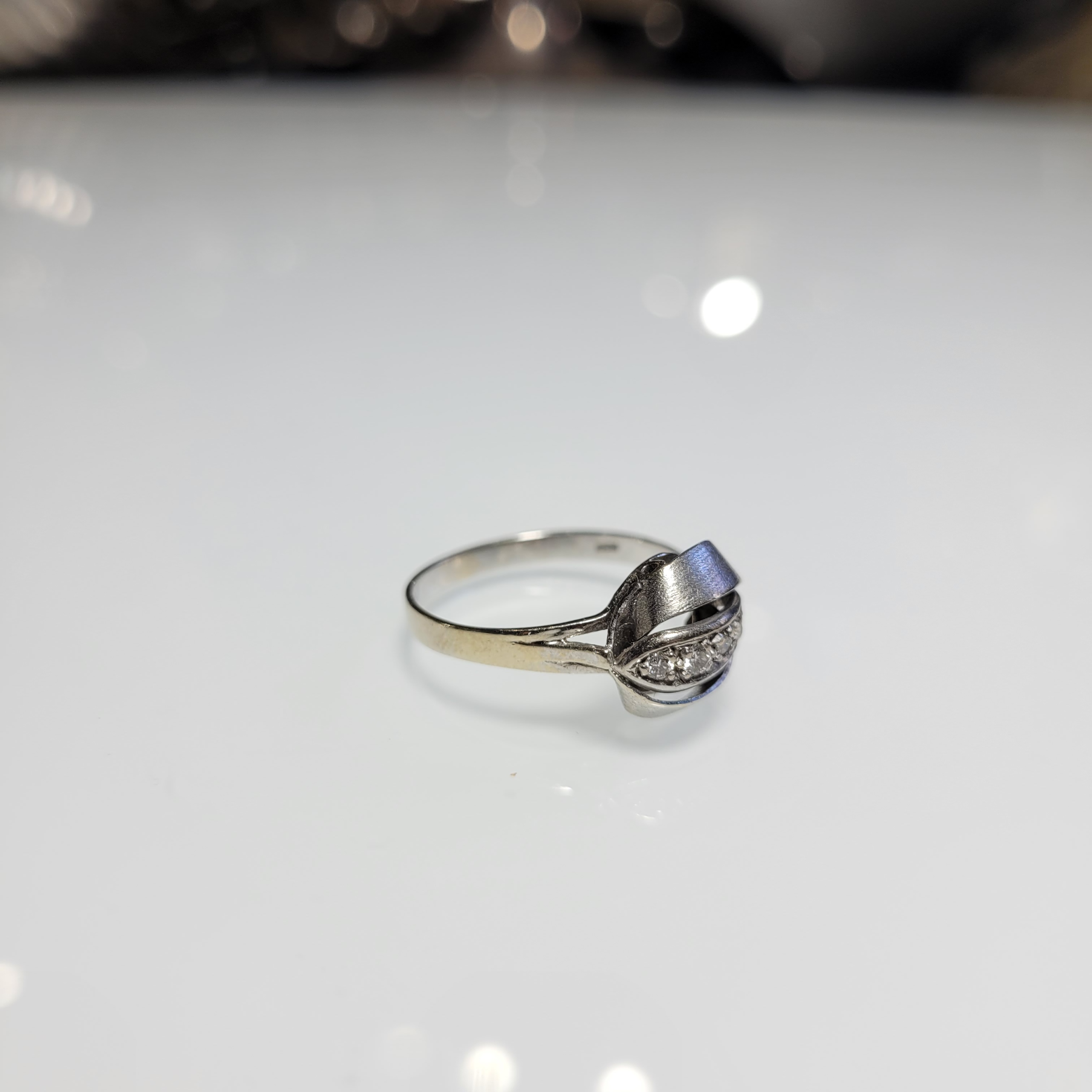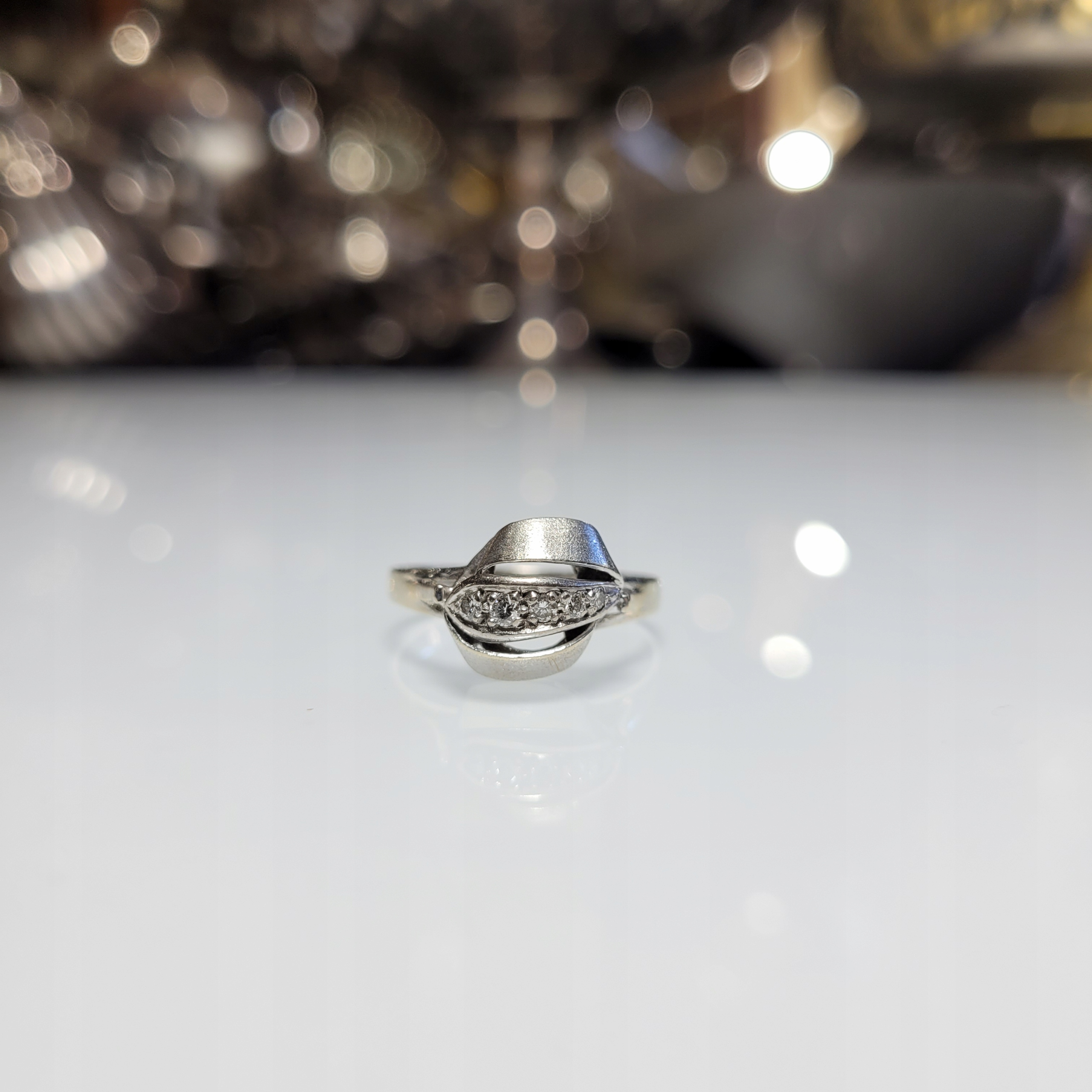 Pierścionek z białego złota, zdobiony pięcioma diamentami łącznie ok. 0,10ct