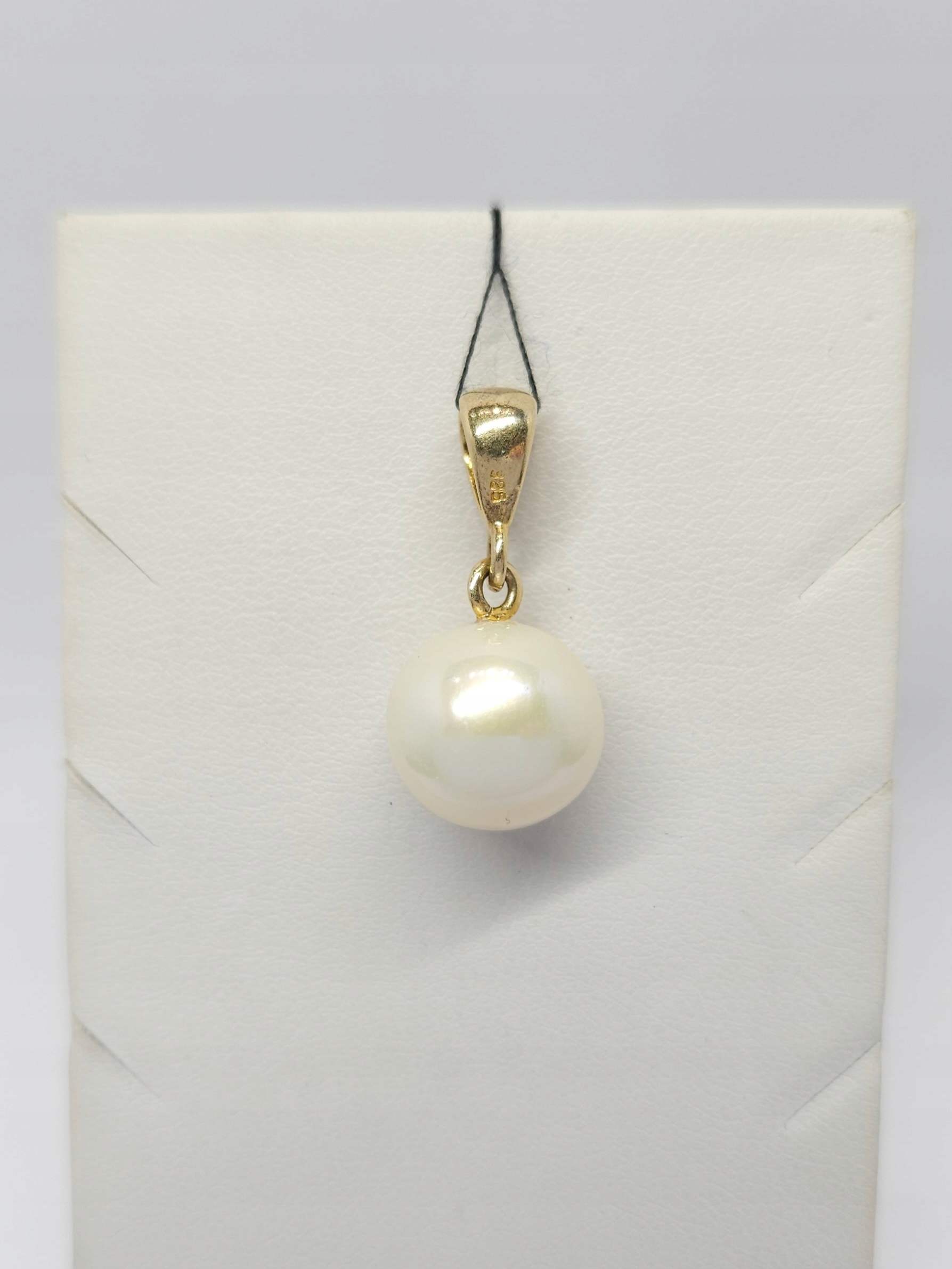 Wisiorek wykonany ze srebra złoconego, z kremowo-białą perłą hodowaną słodkowodną o delikatnie różowym overtonie