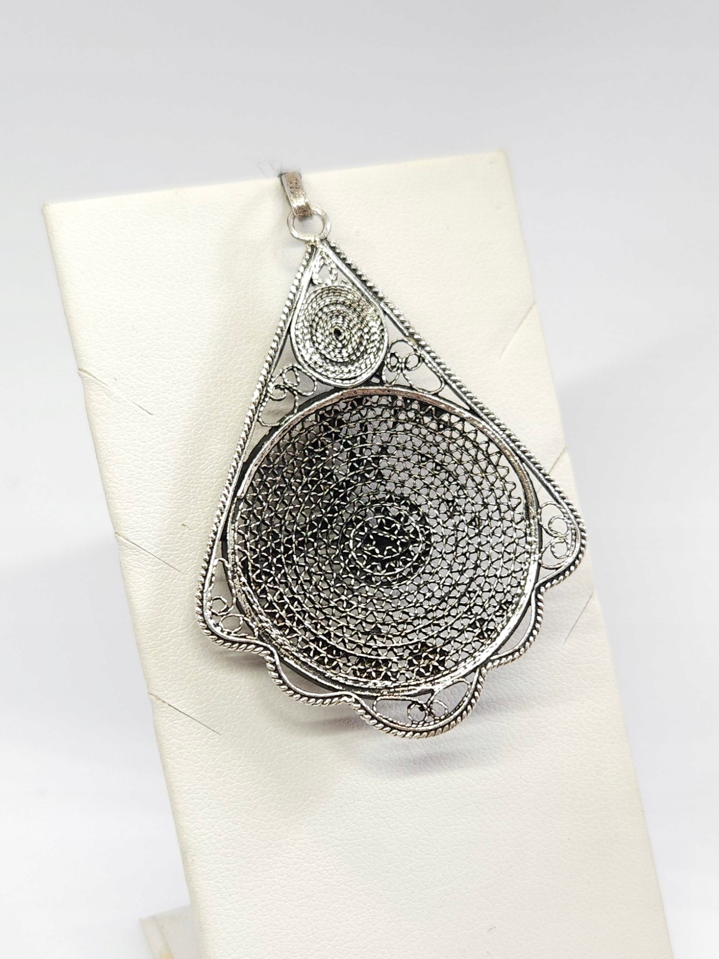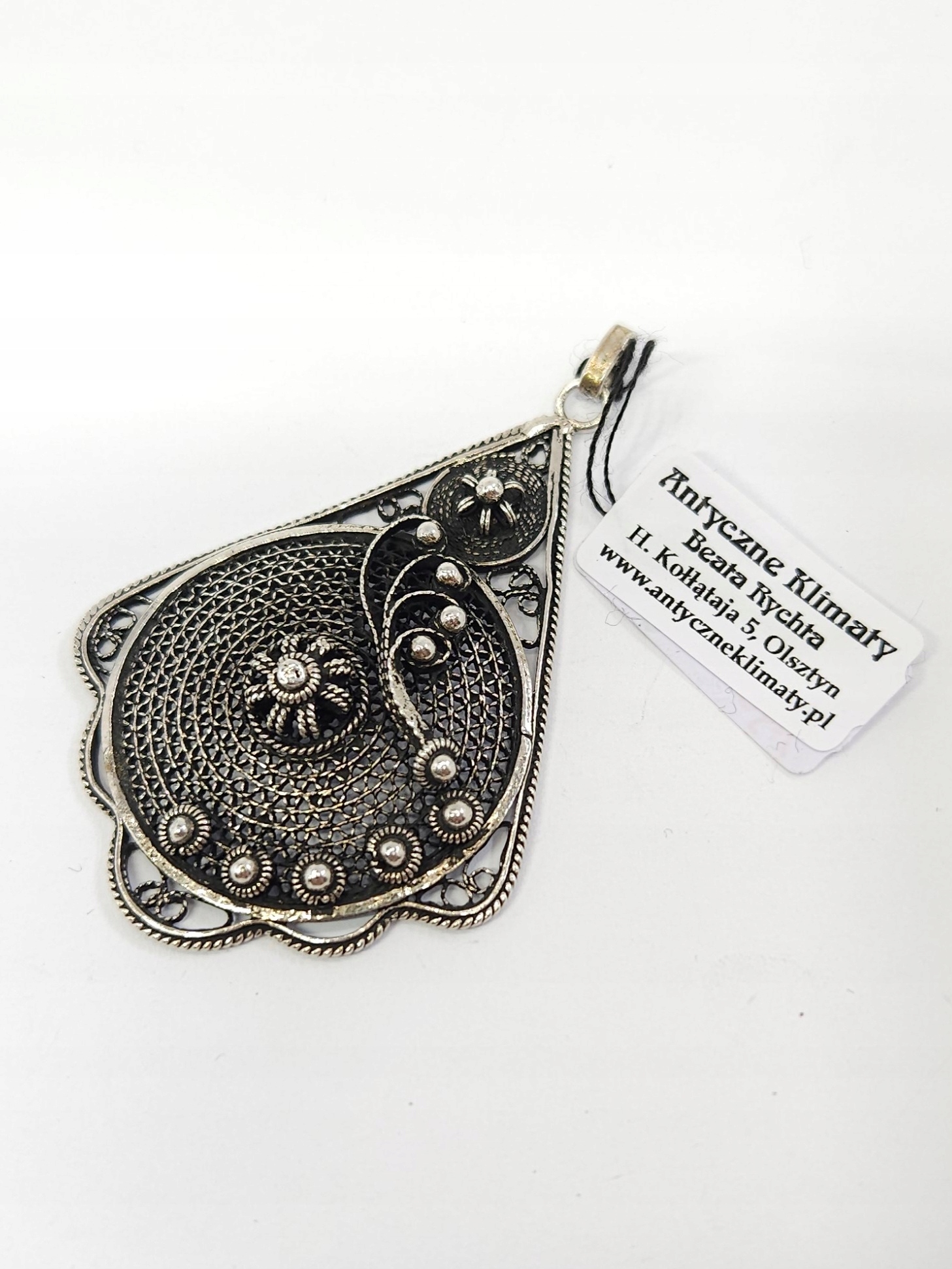 Srebrny ażurowy wisiorek, filigran, srebro pr. 0,800 oksydowany
