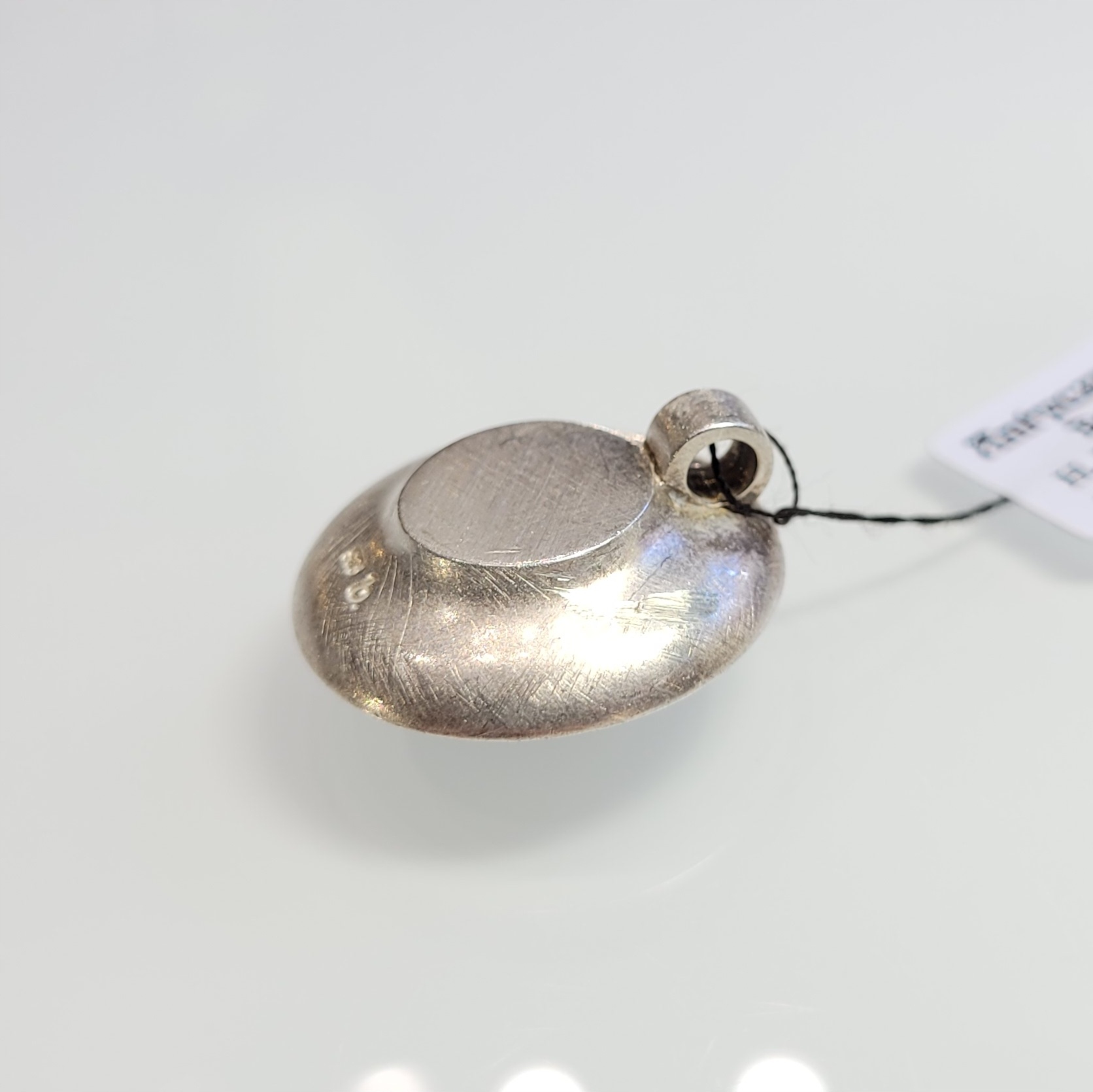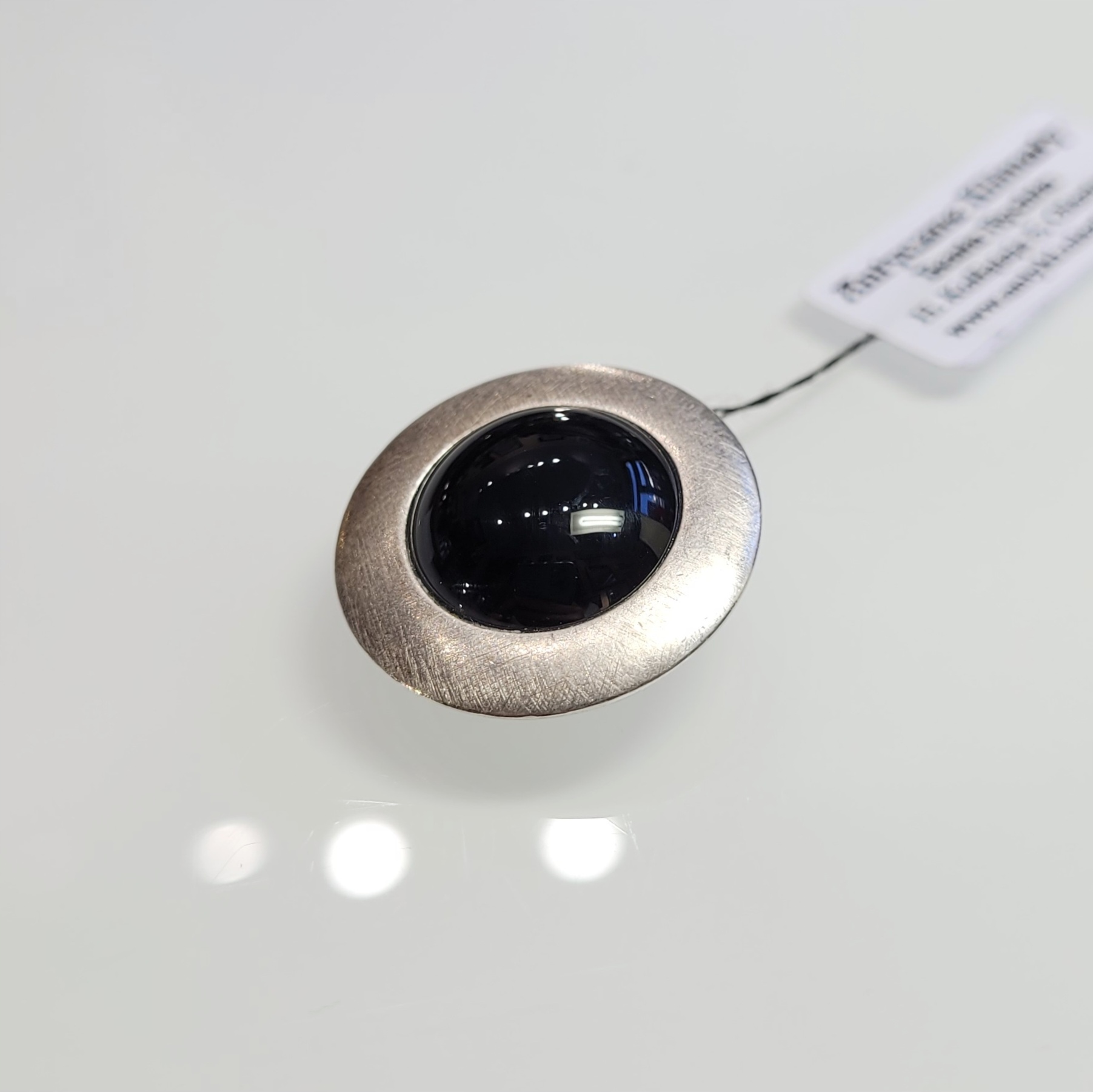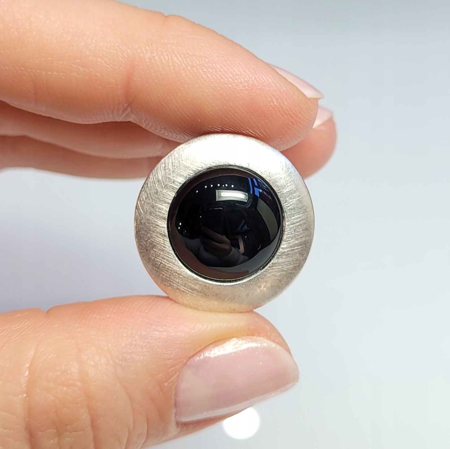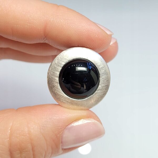 Srebrny wisiorek o matowym wykończeniu, zdobiony okrągłym onyksem w szlifie kaboszonowym