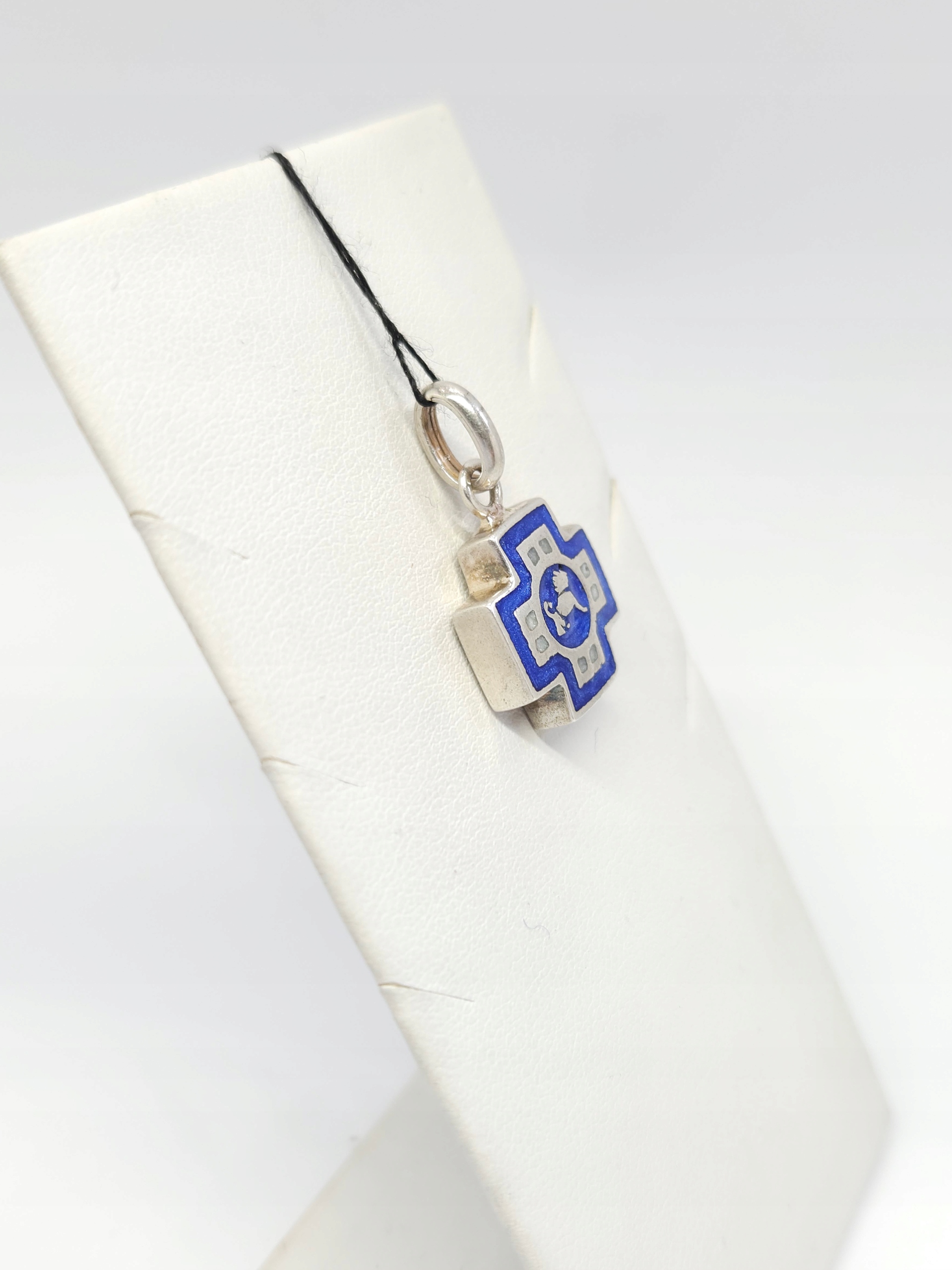 Srebrny wisiorek krzyż z lwem, srebro pr. 0,925 emalia