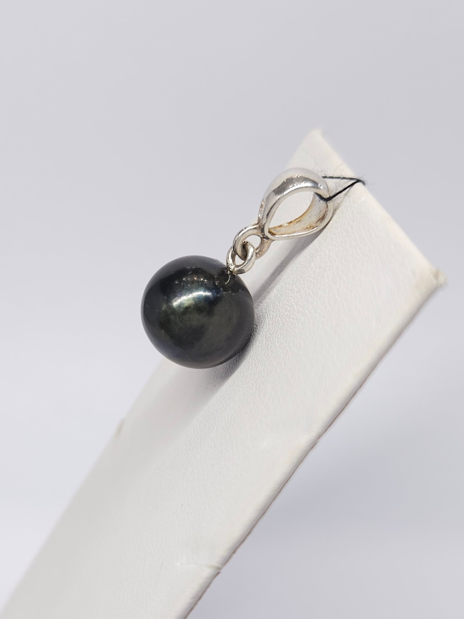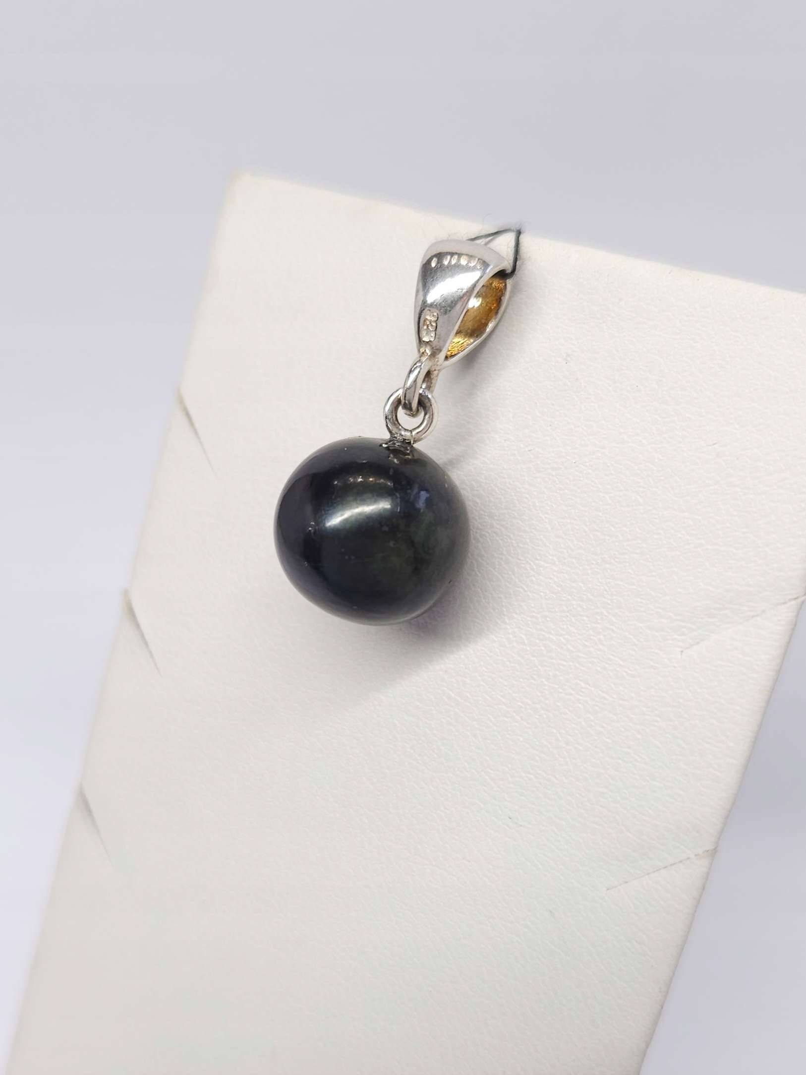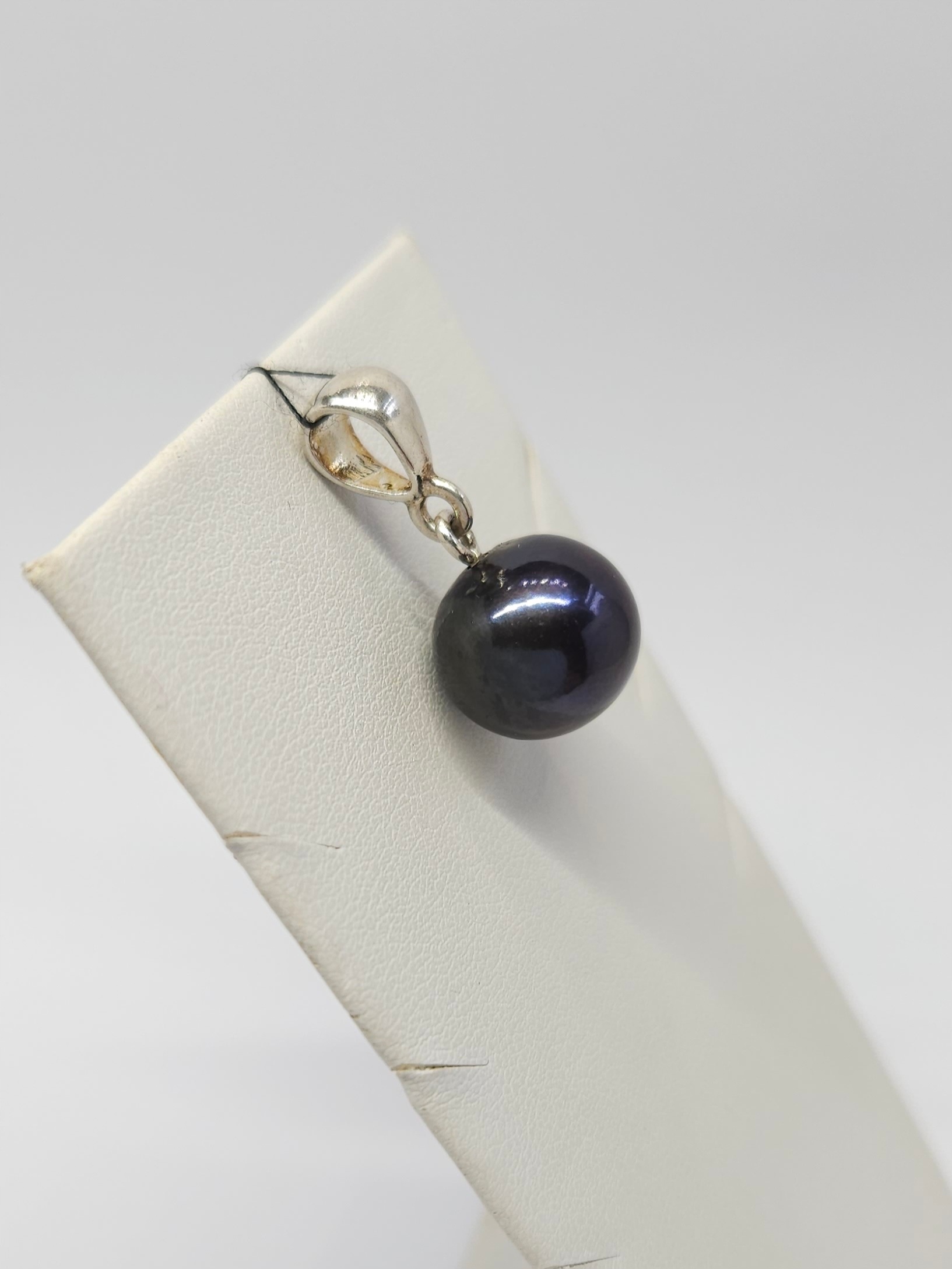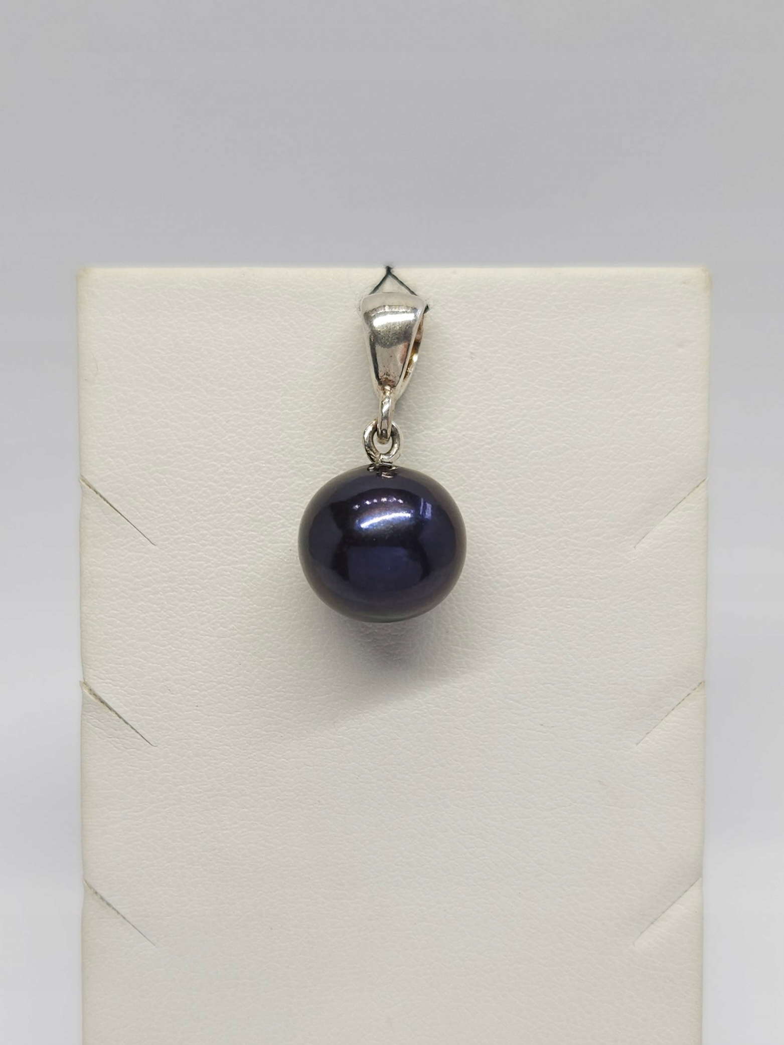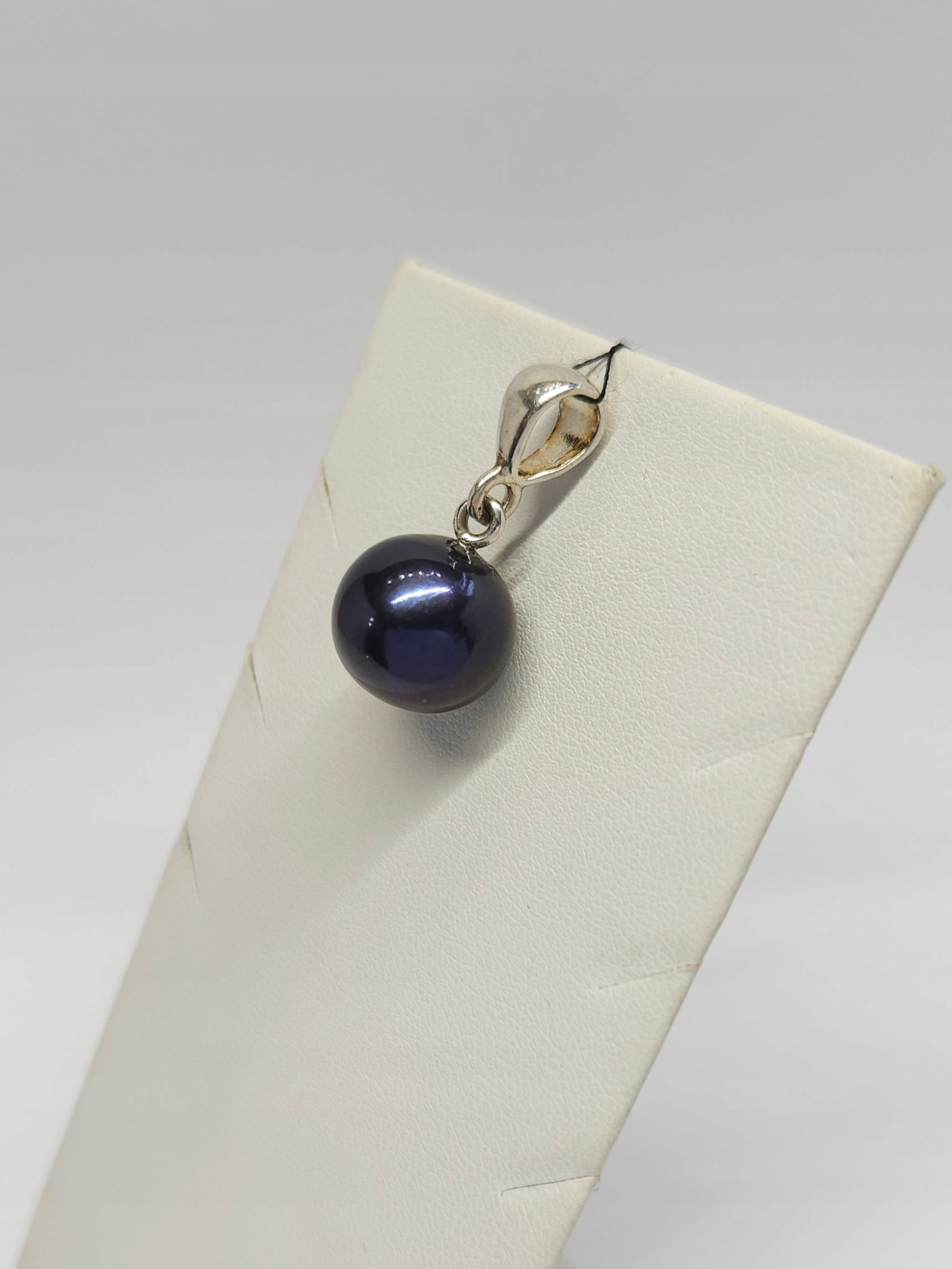 Srebrny wisiorek z ciemnofioletowo-granatową perłą hodowaną słodkowodną barwioną