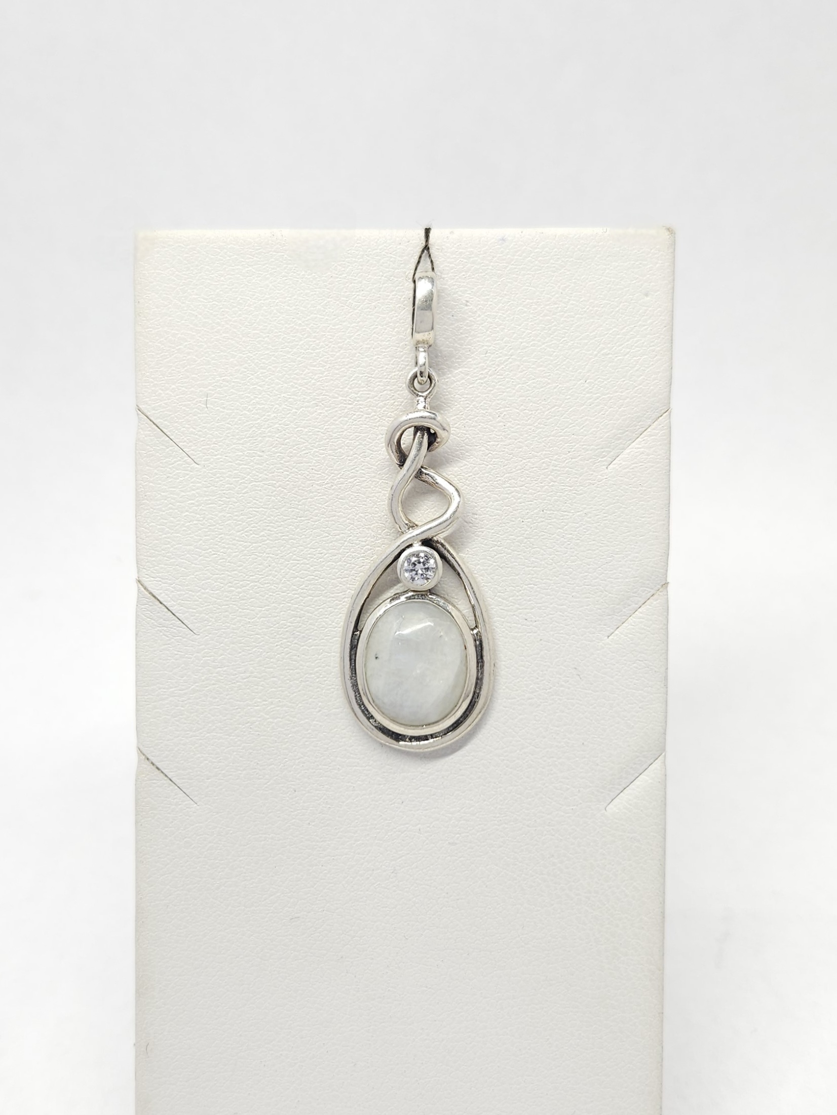 Srebrny wisiorek z kamieniem księżycowym i cyrkonią, srebro 0,925