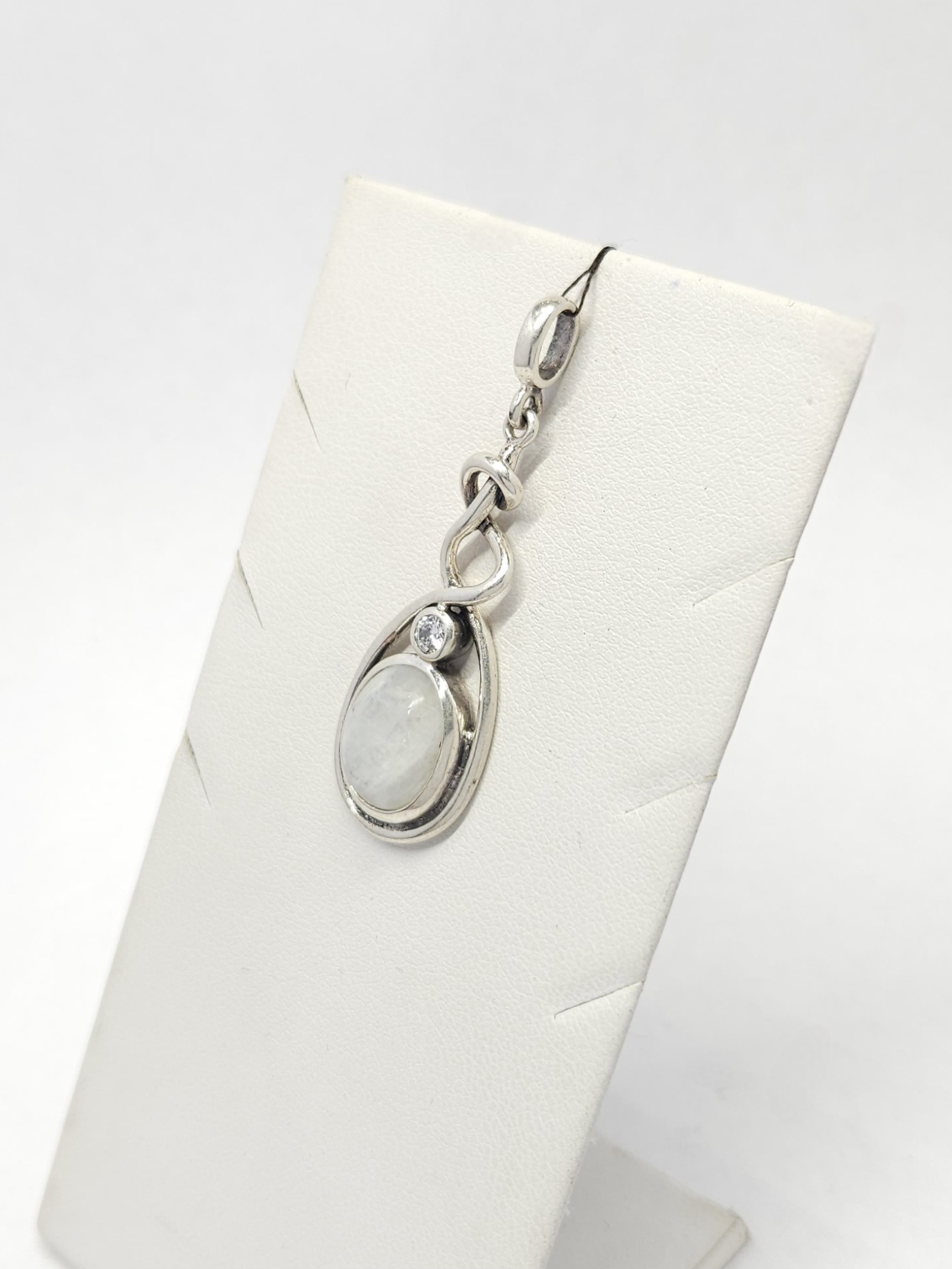 Strona główna » Sklep » Srebrny wisiorek z kamieniem księżycowym i cyrkonią, srebro 0,925