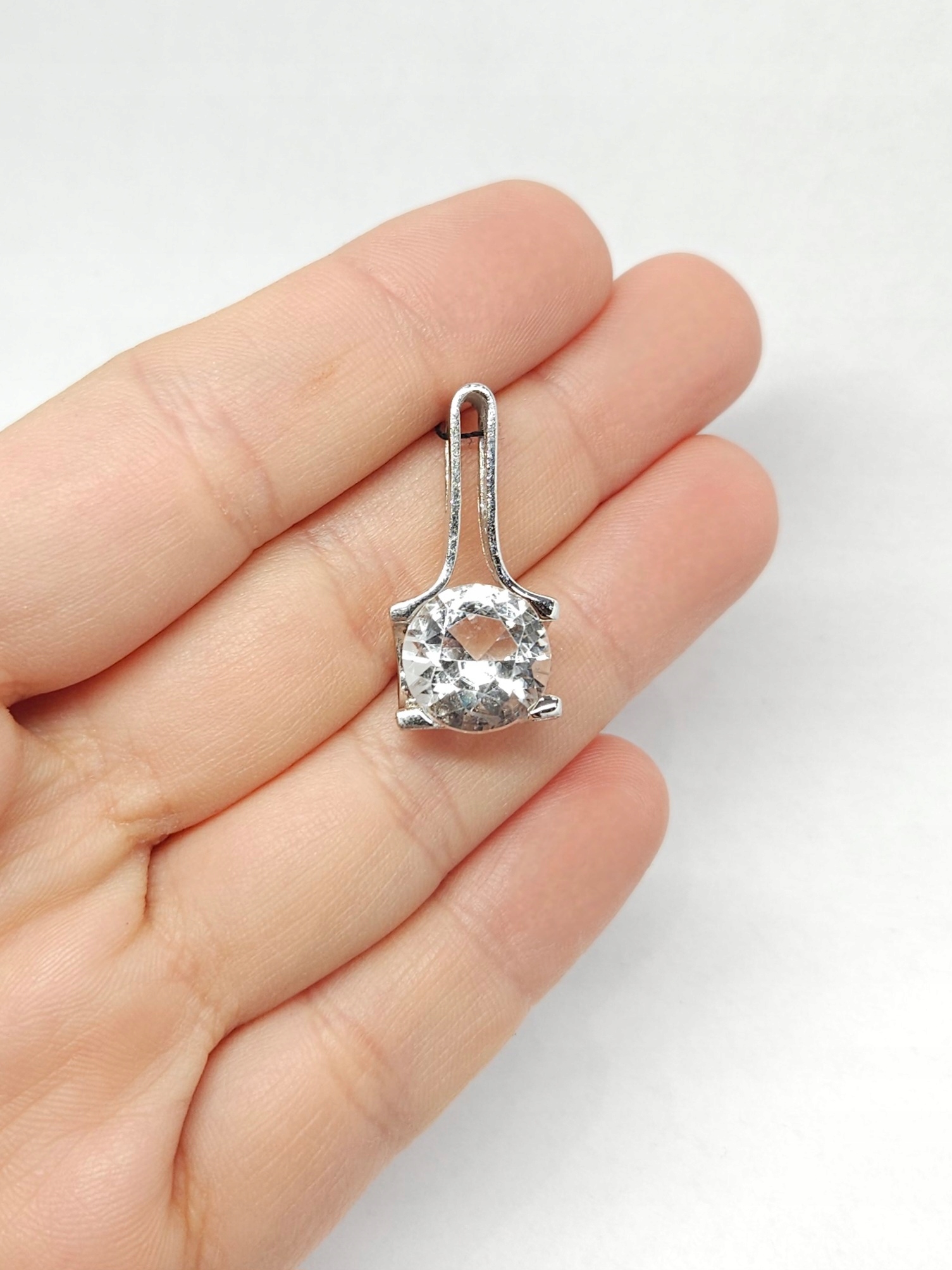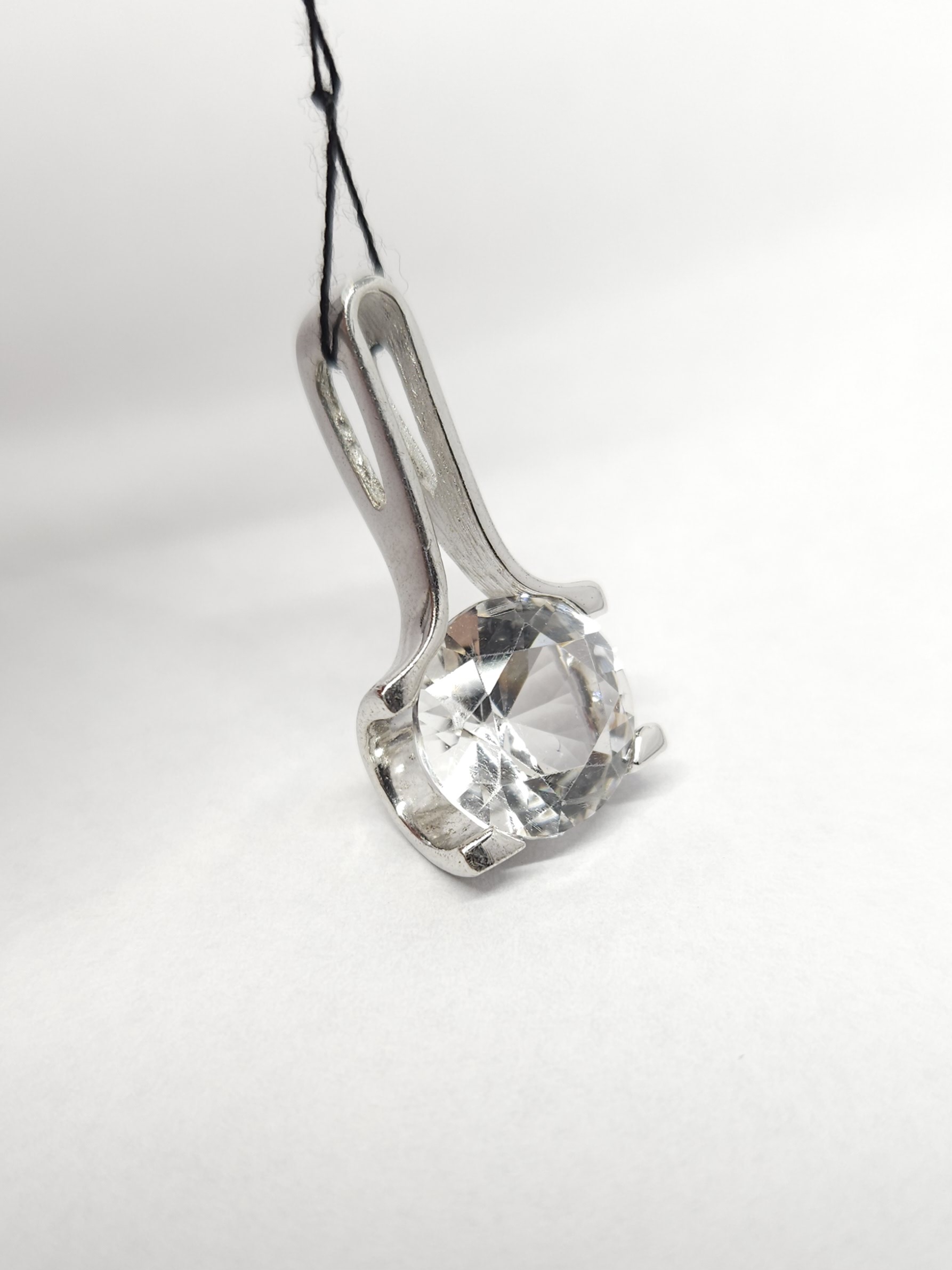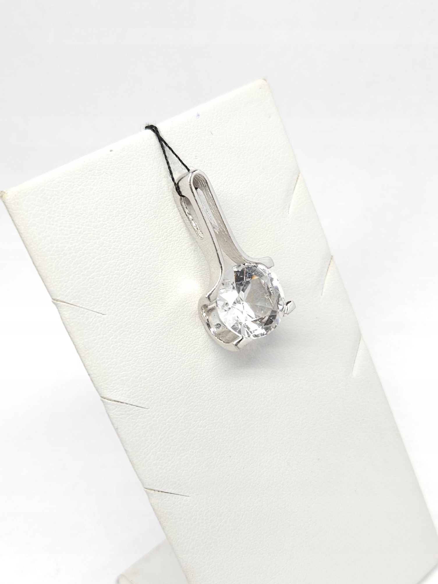 Srebrny wisiorek z dużym, okrągłym, bezbarwnym kamieniem naturalnym