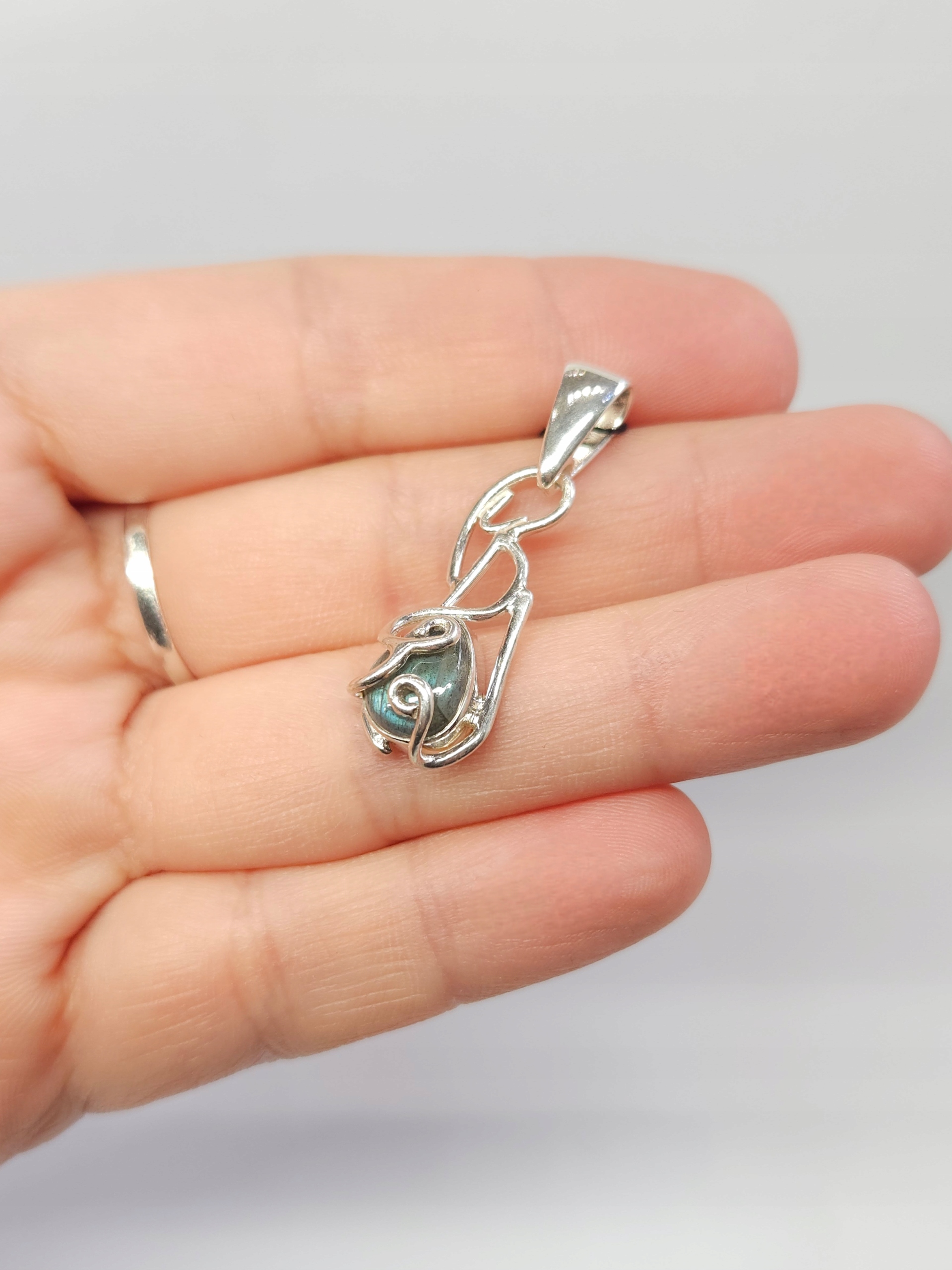 Srebrny wisiorek z labradorytem, srebro pr. 0,925 kropla