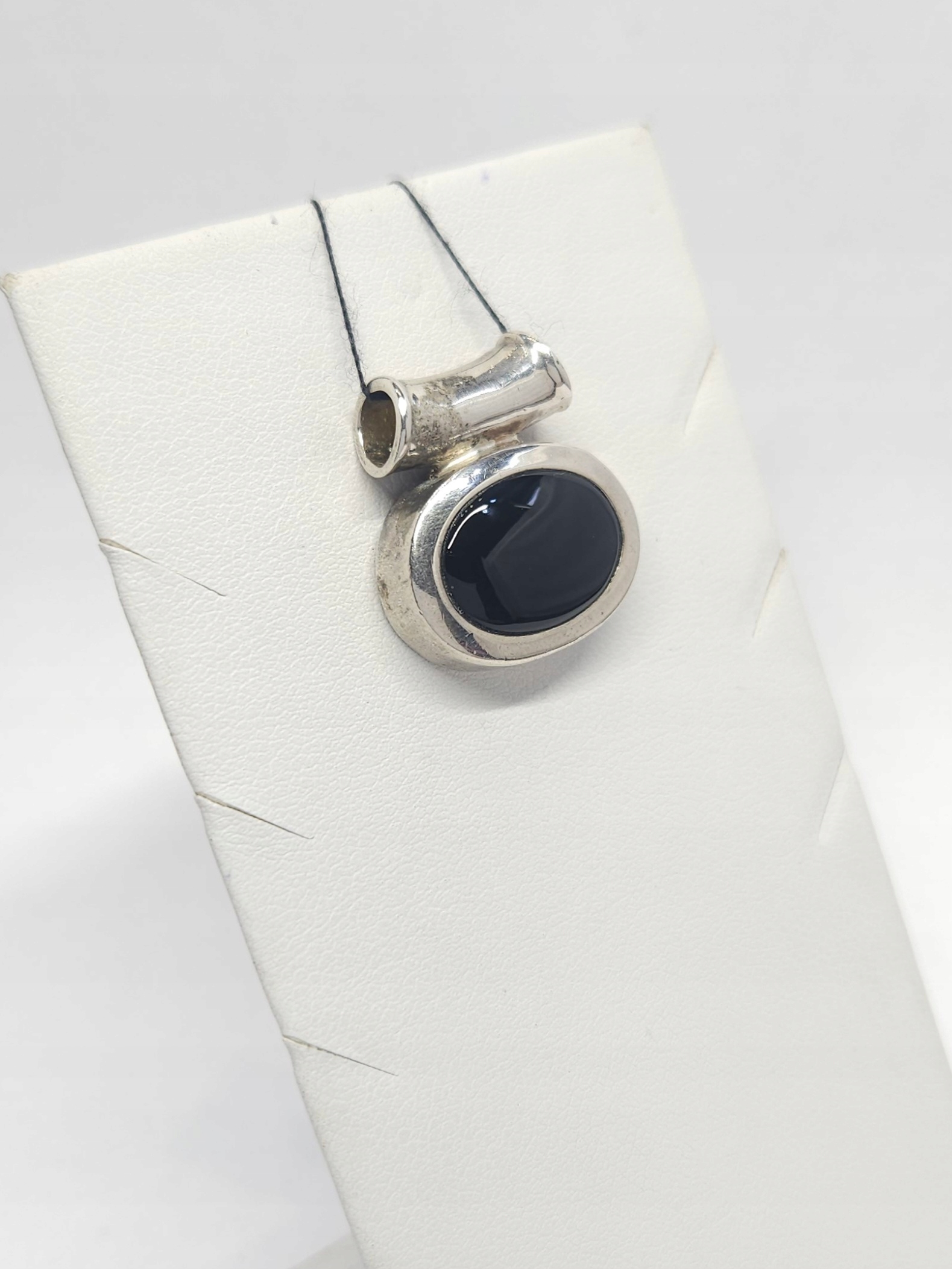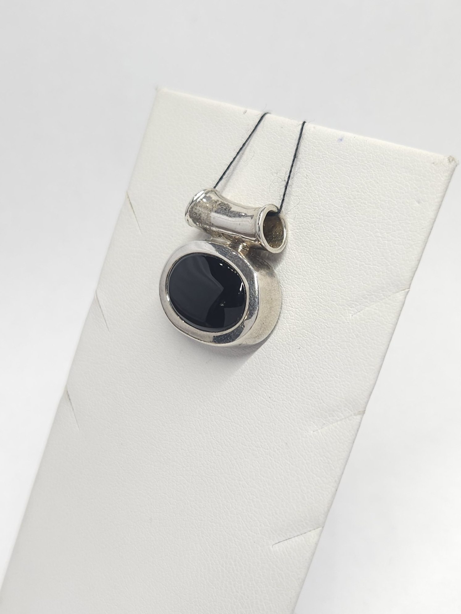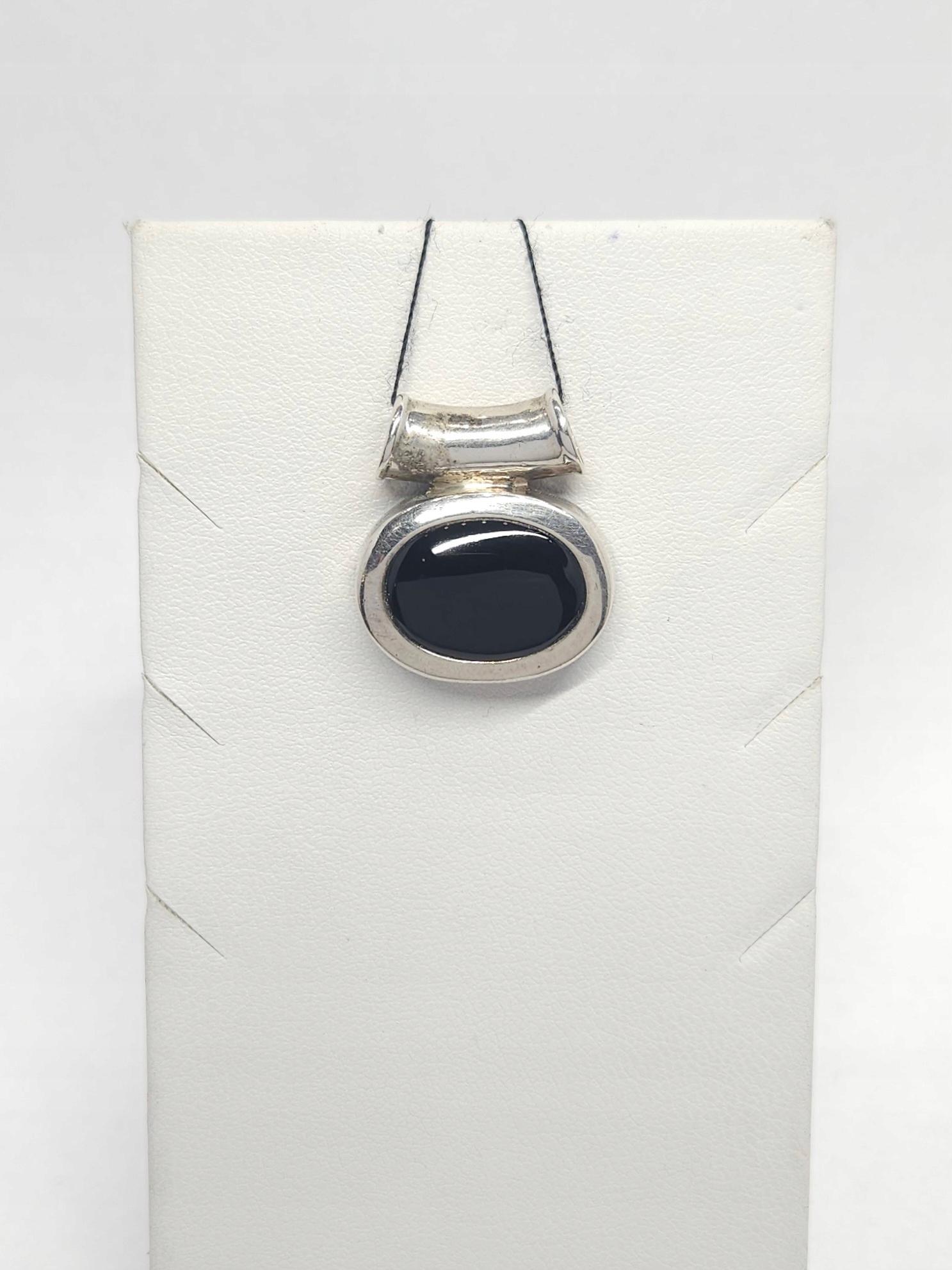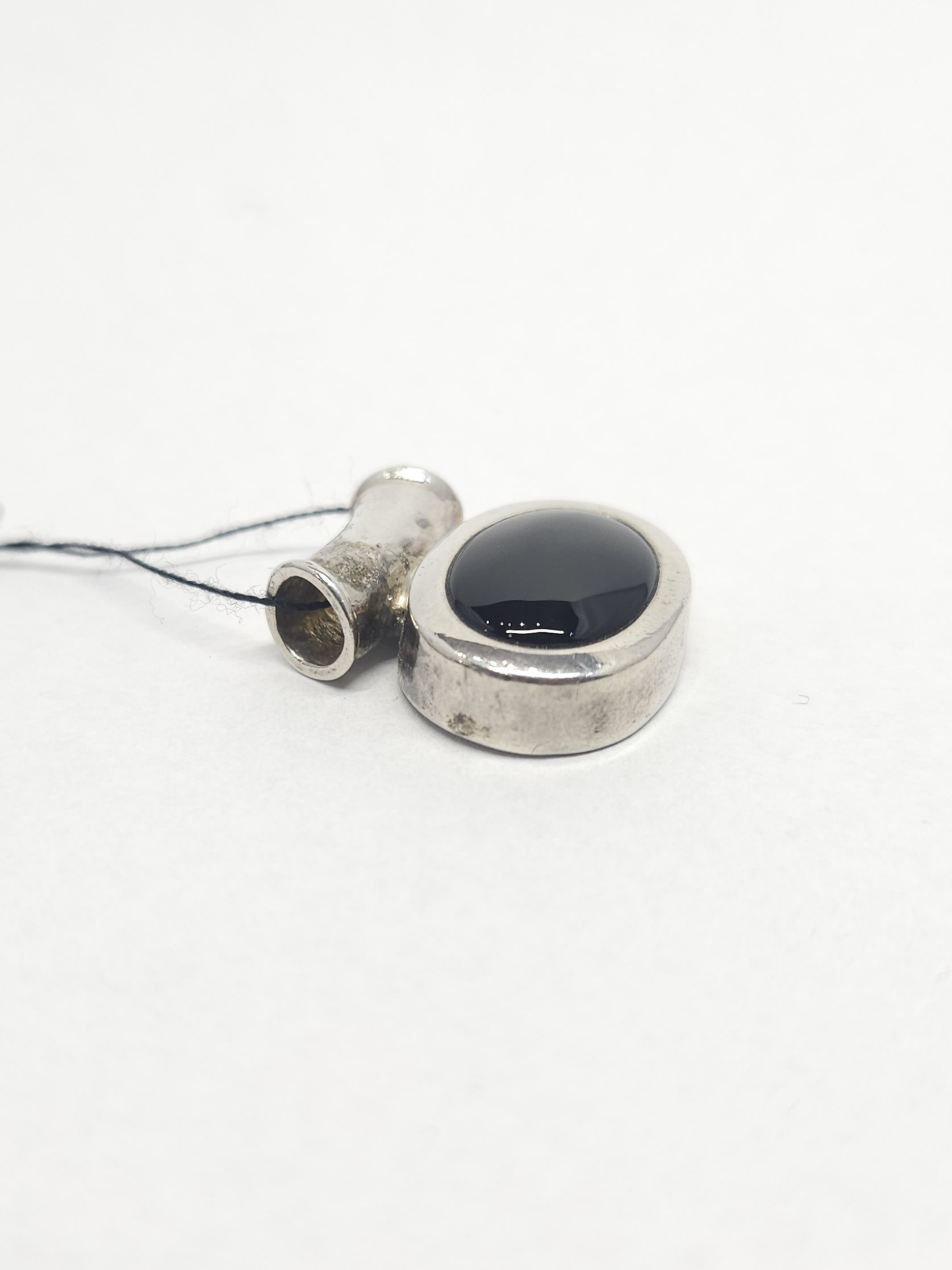 Srebrny, eliptyczny wisiorek z czarnym onyksem w szlifie kaboszonowym