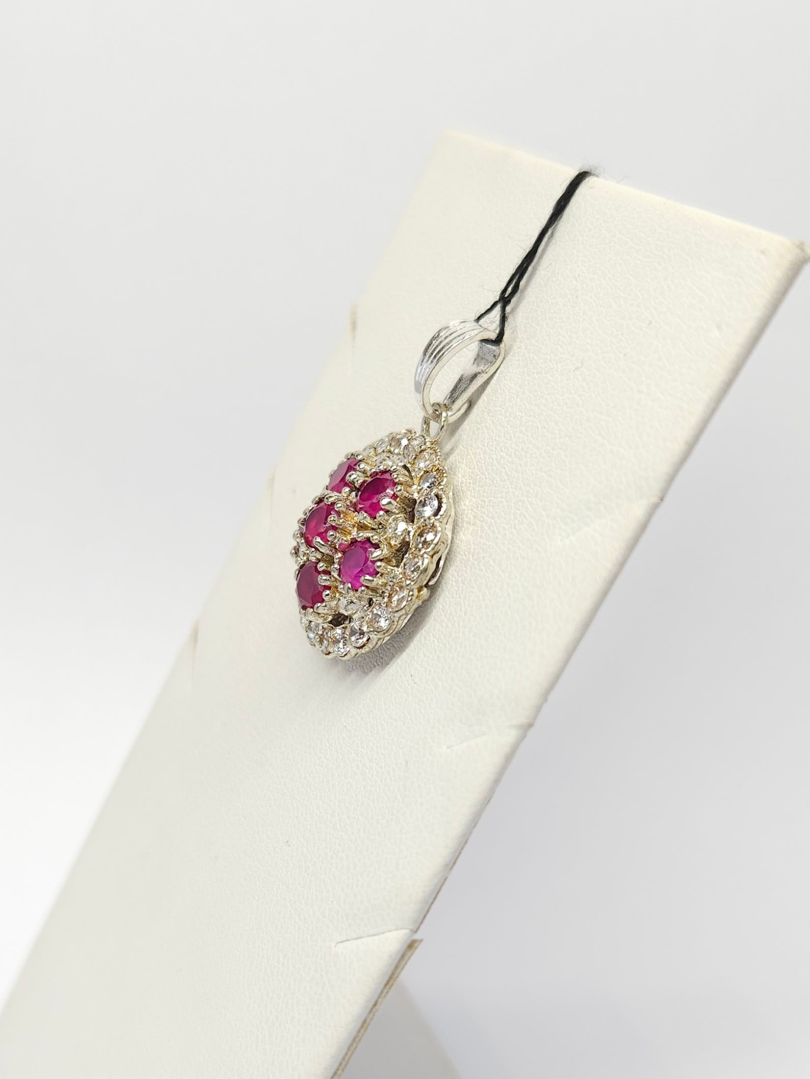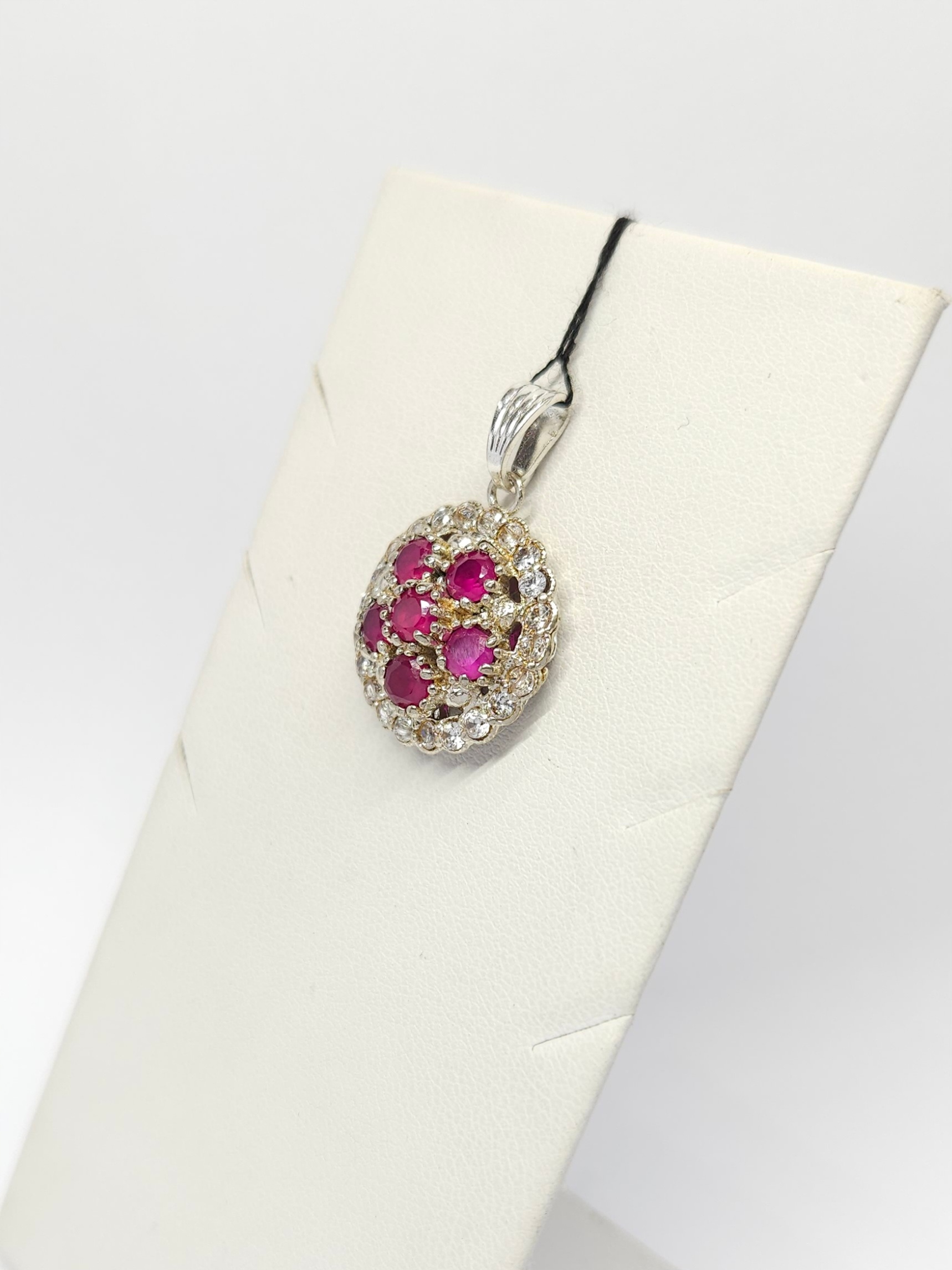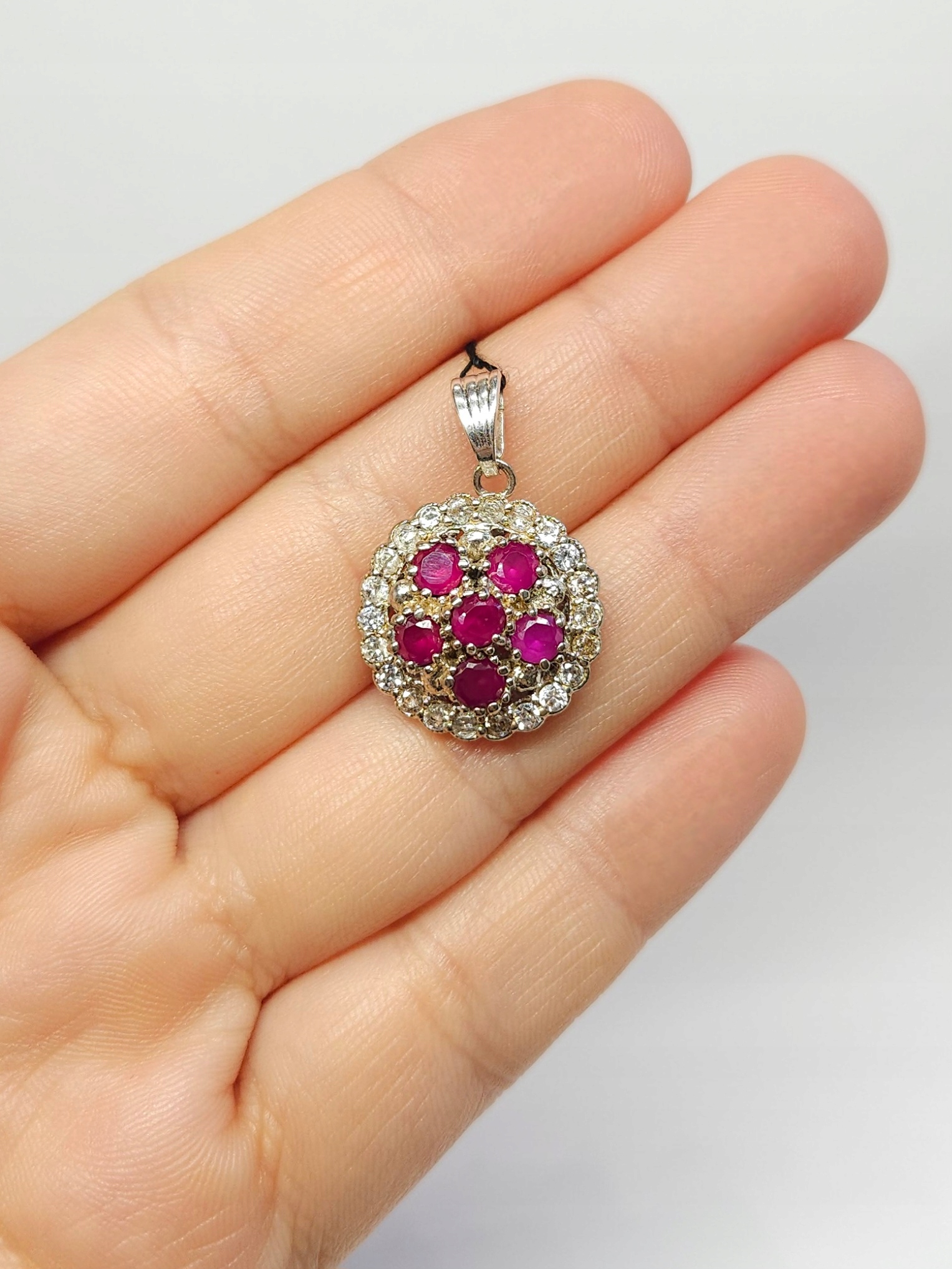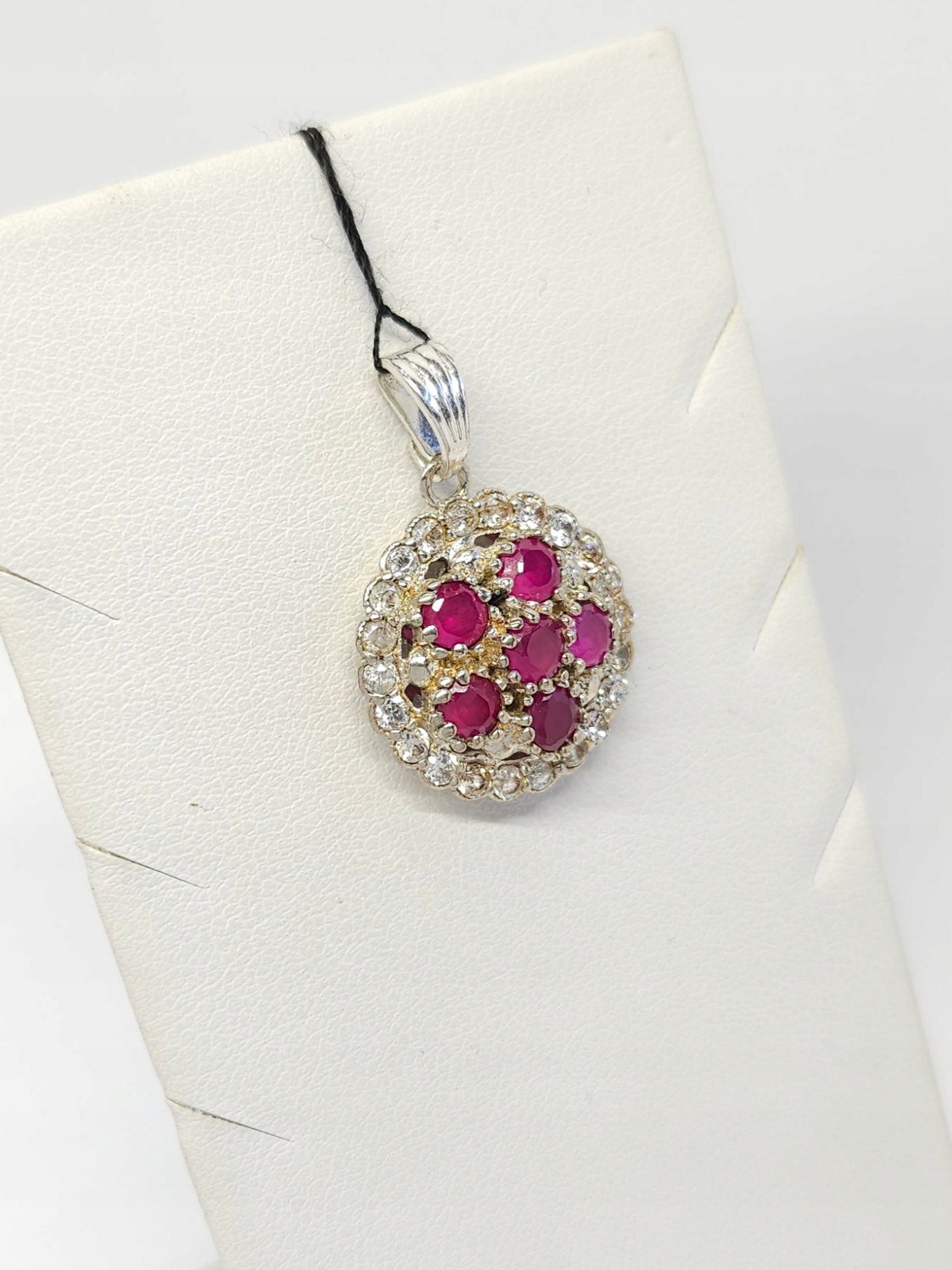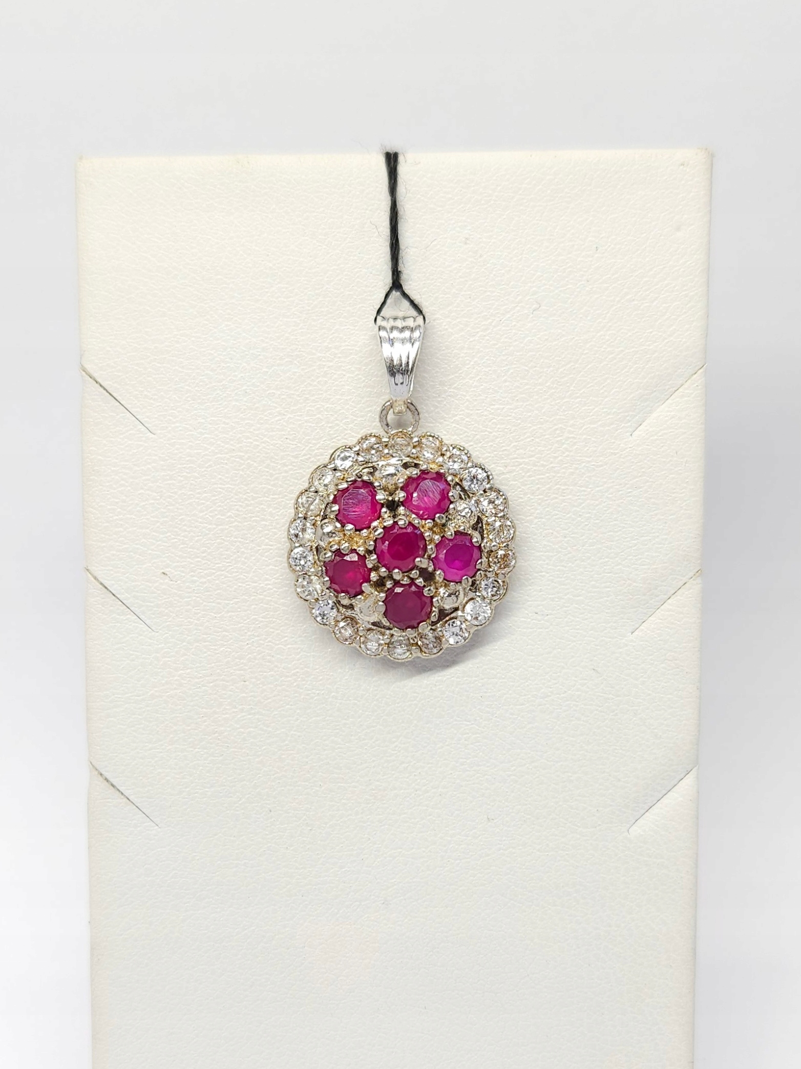 Srebrny wisiorek z rubinami synt. i cyrkoniami, srebro pr. 0,925