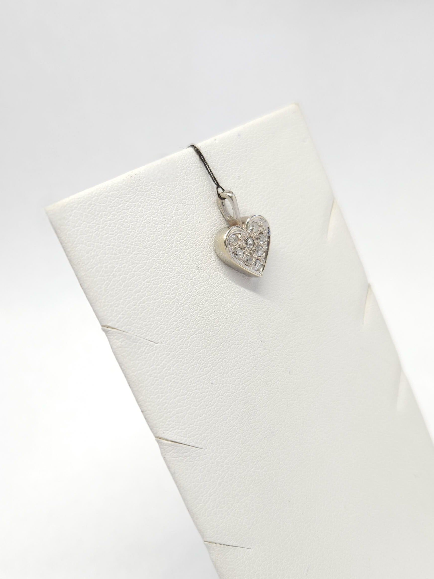 Wisiorek w kształcie serca, wykonany z białego złota, wysadzany diamentami: 8 szt. o łącznej masie ~0,10ct
