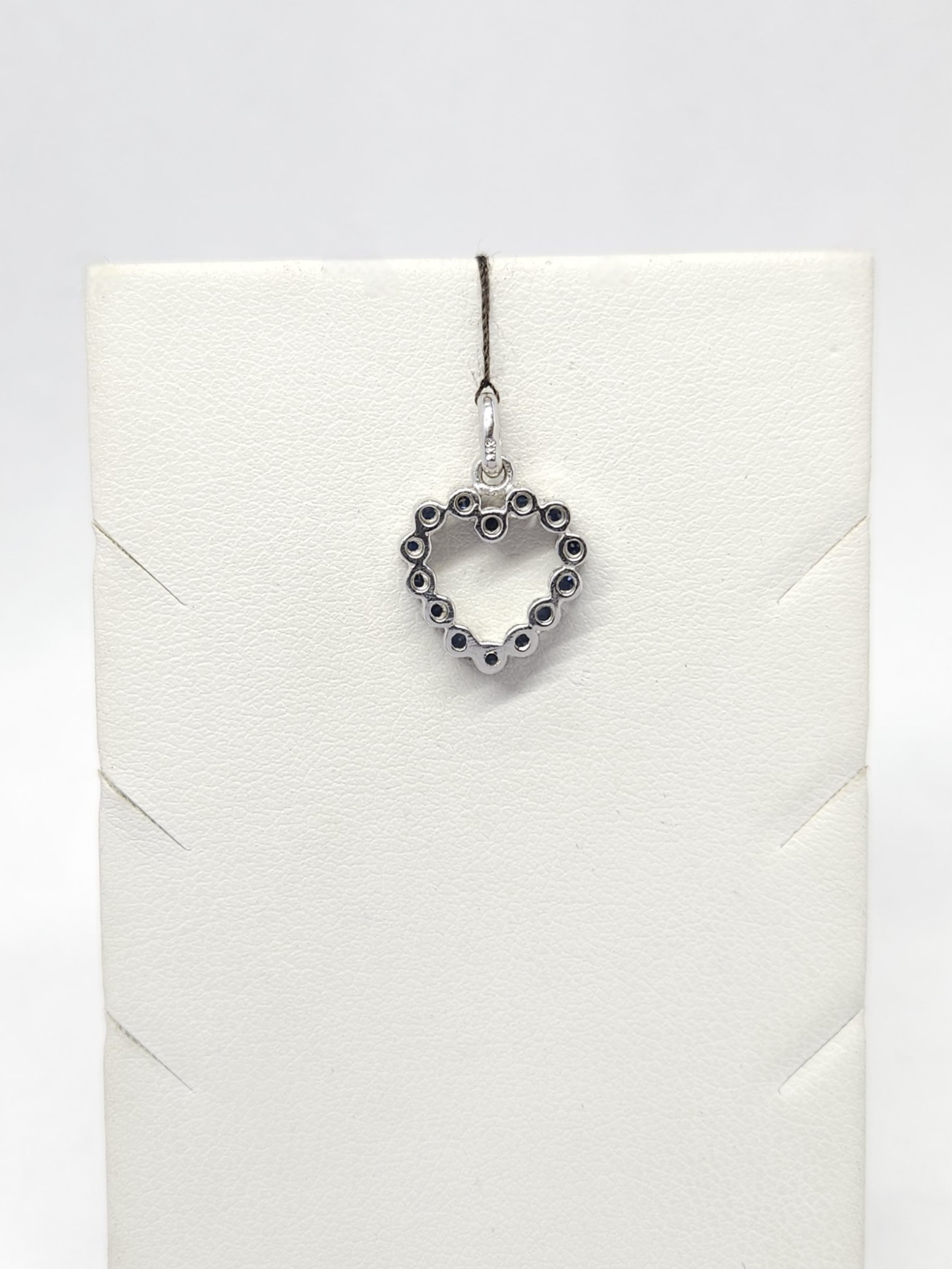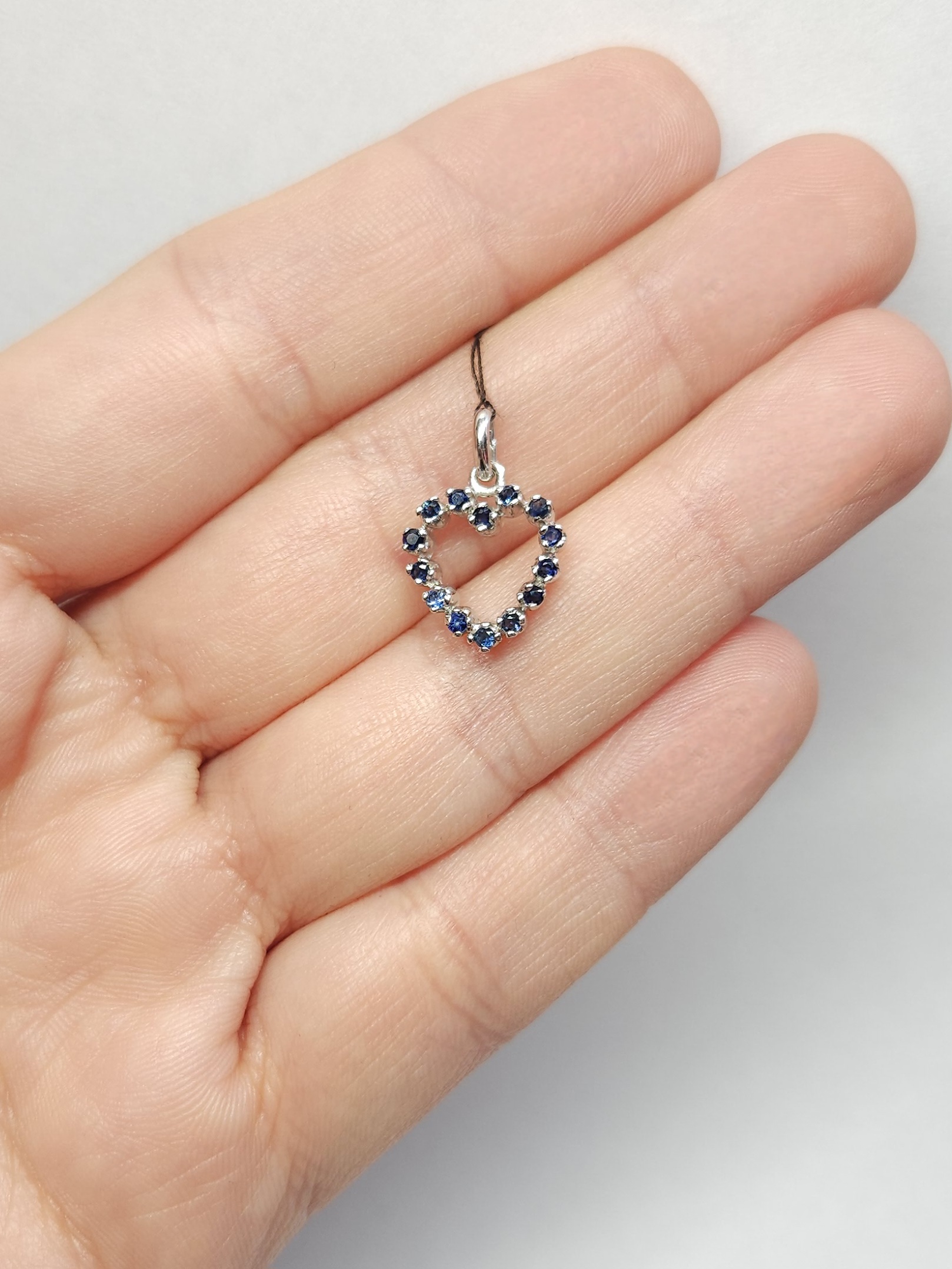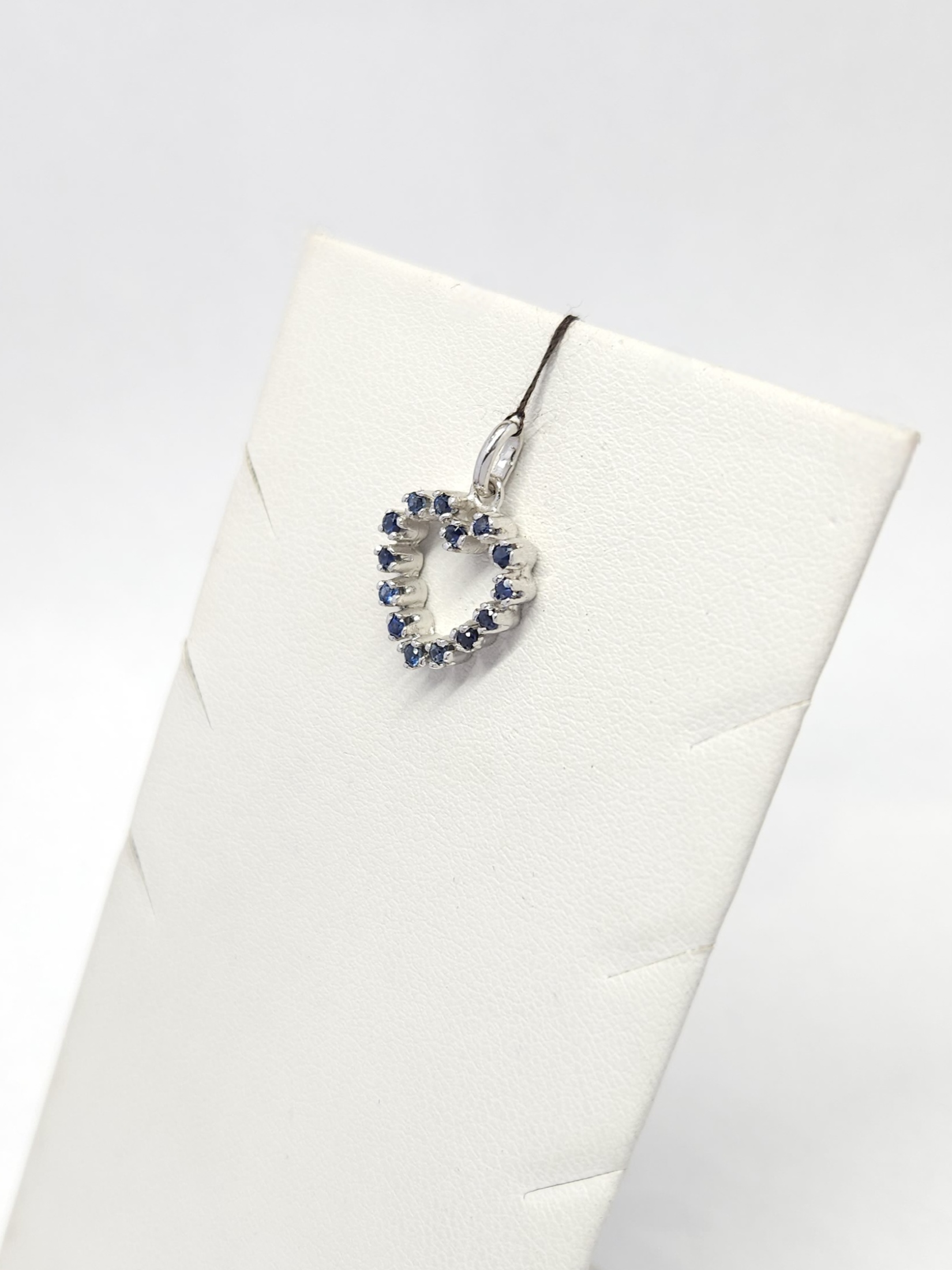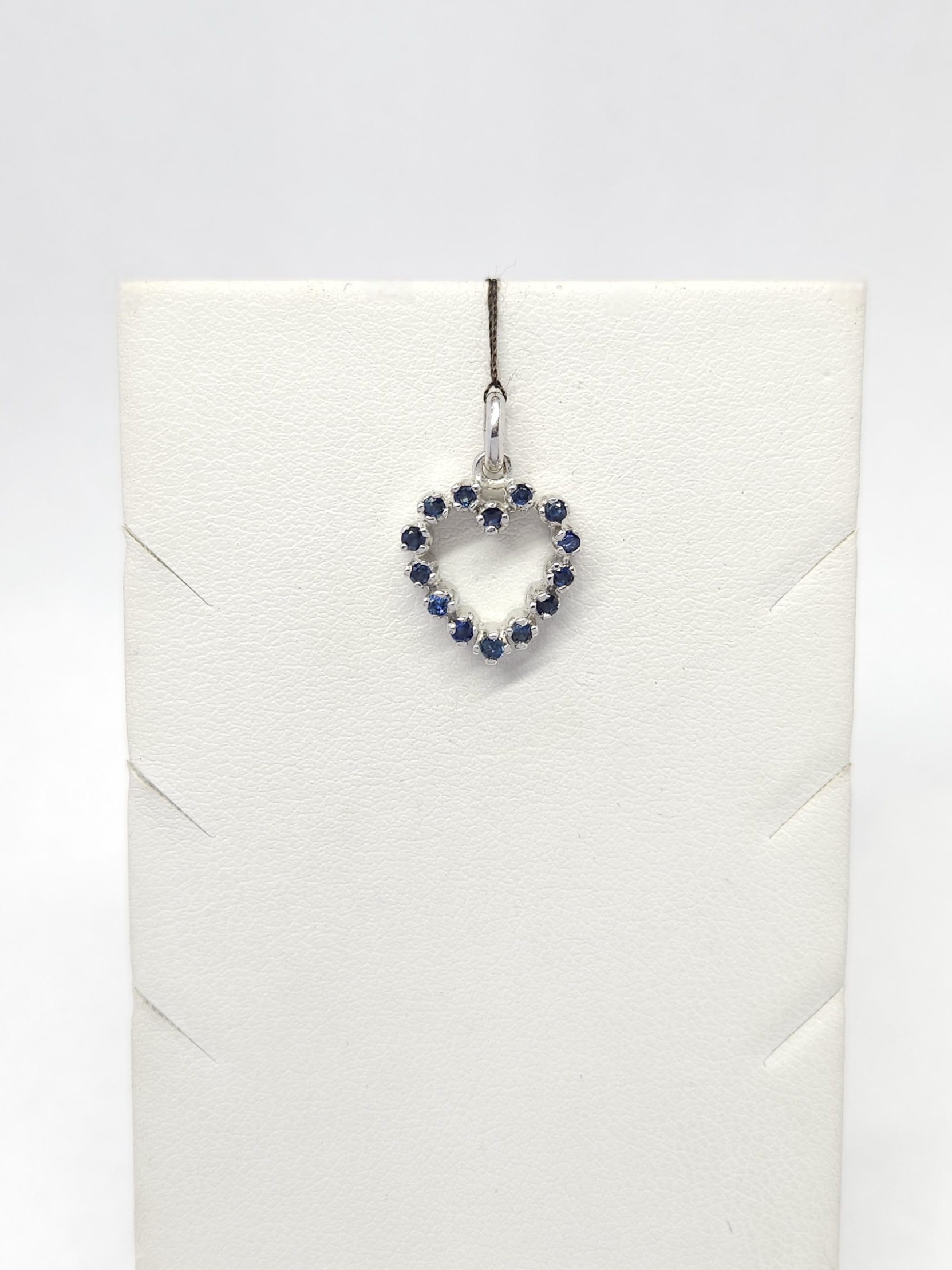 Wisiorek w kształcie serca, wykonany z białego złota, wysadzany szafirami: 14 szt.