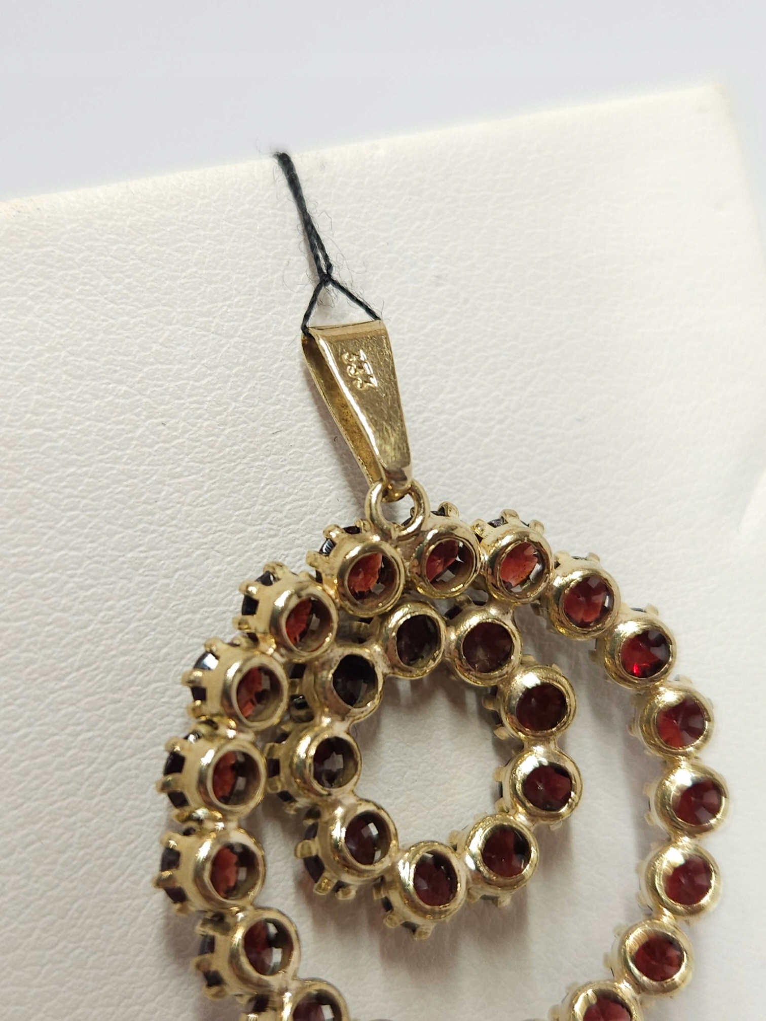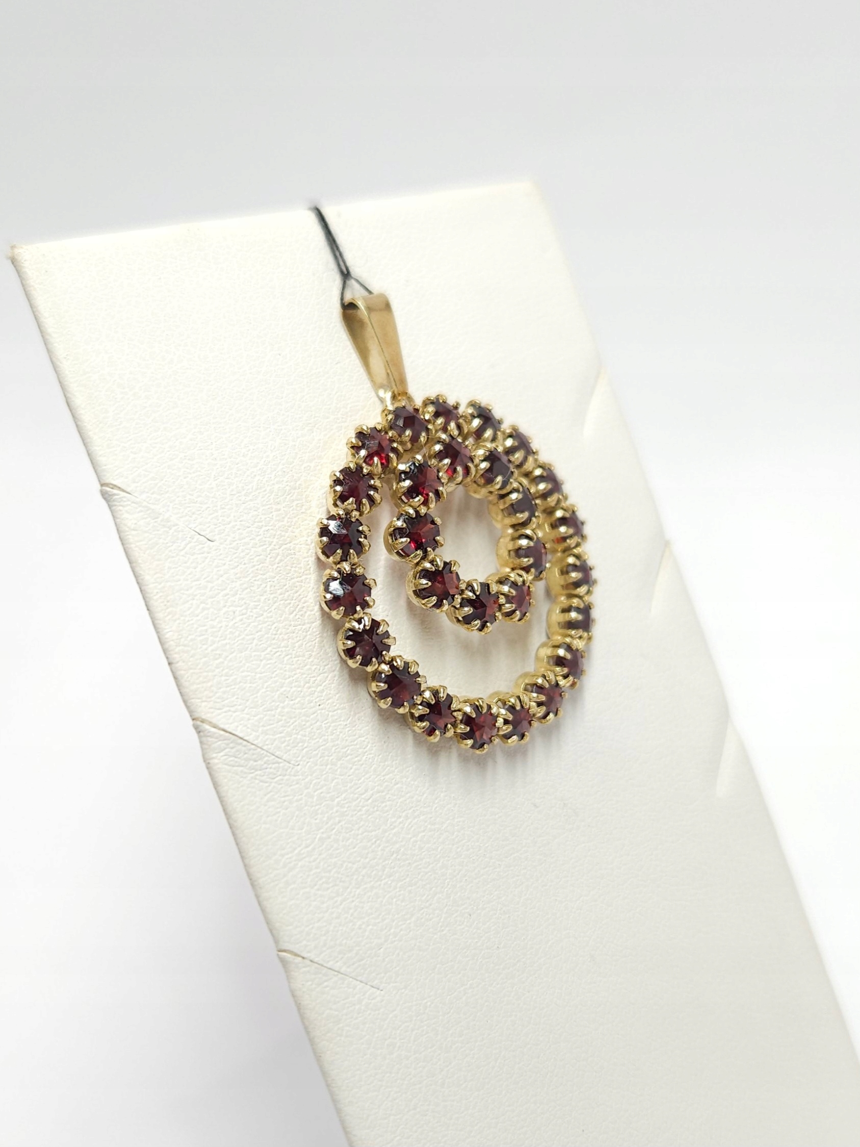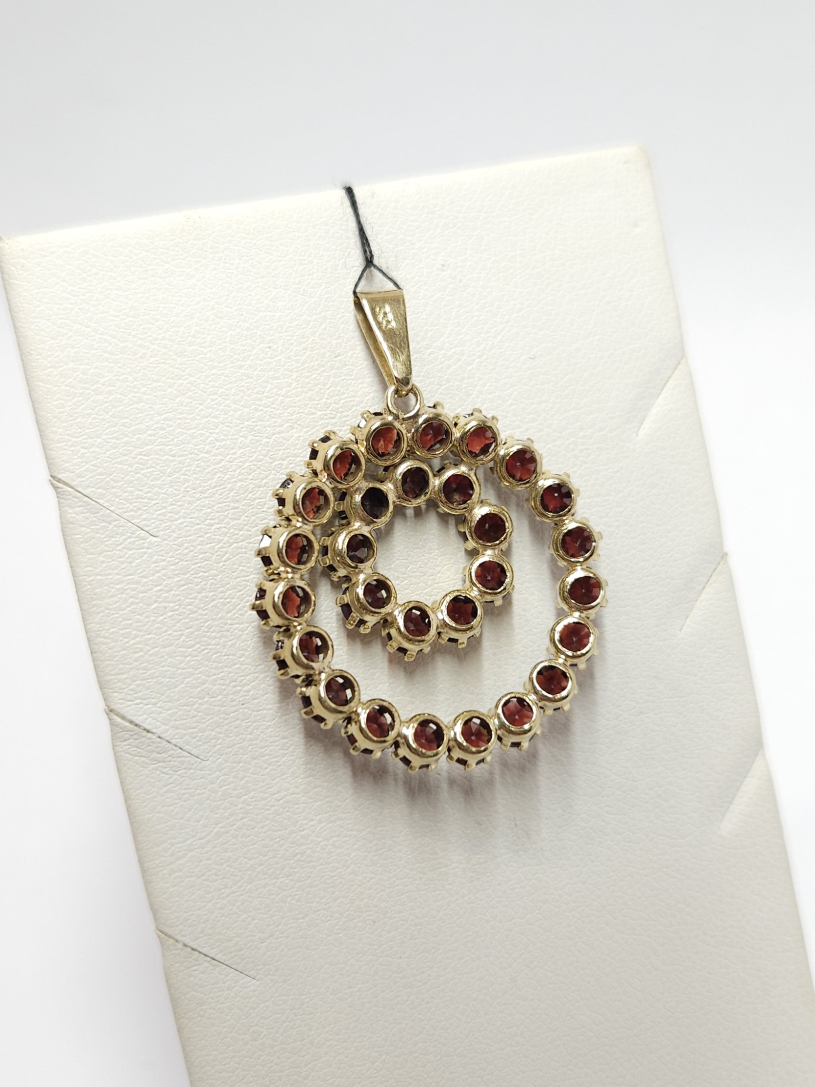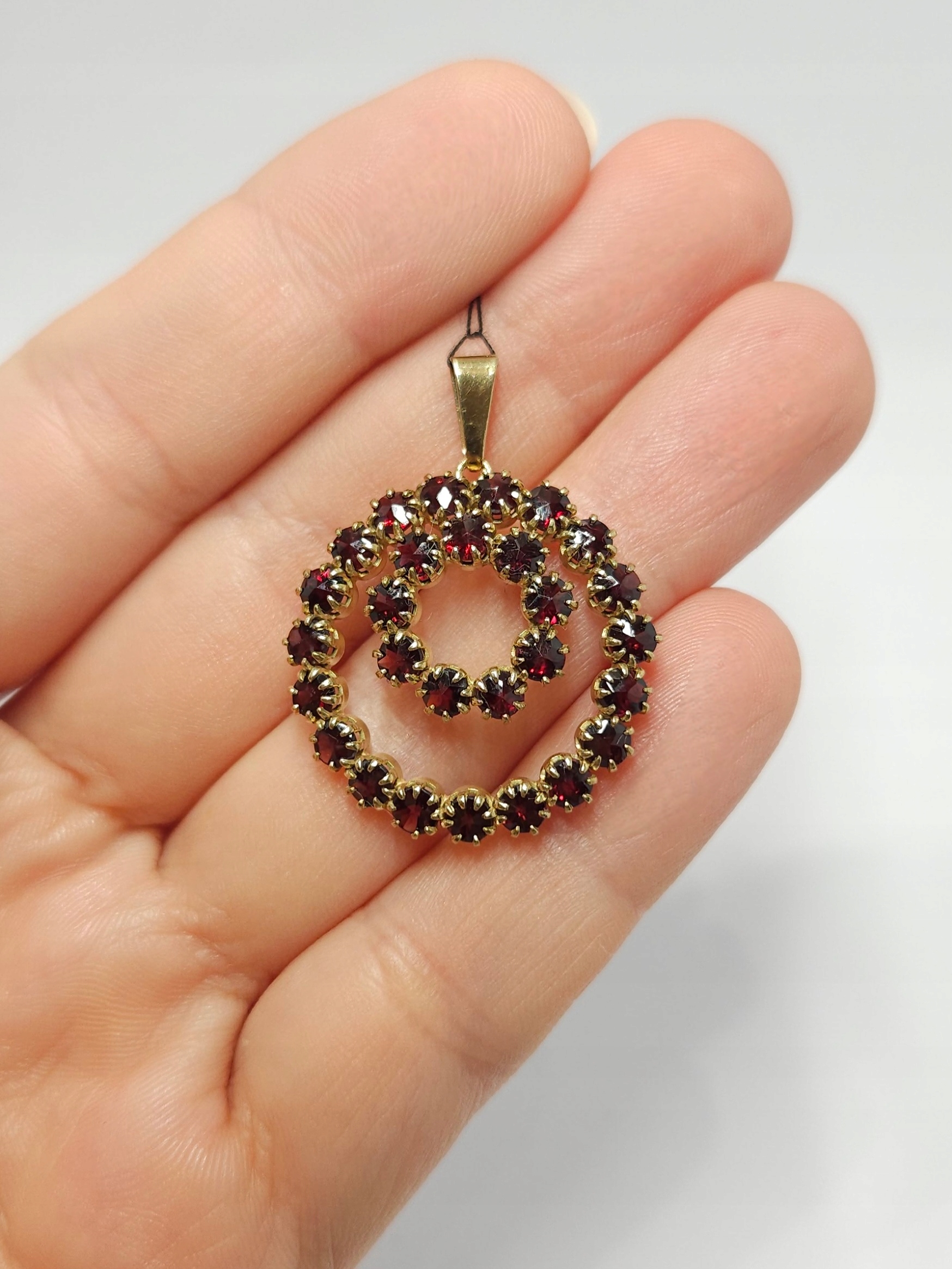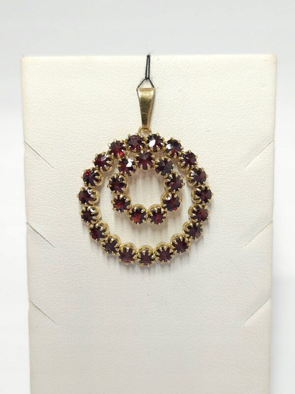 Złoty wisiorek z granatami, złoto 0,333 dwa okręgi