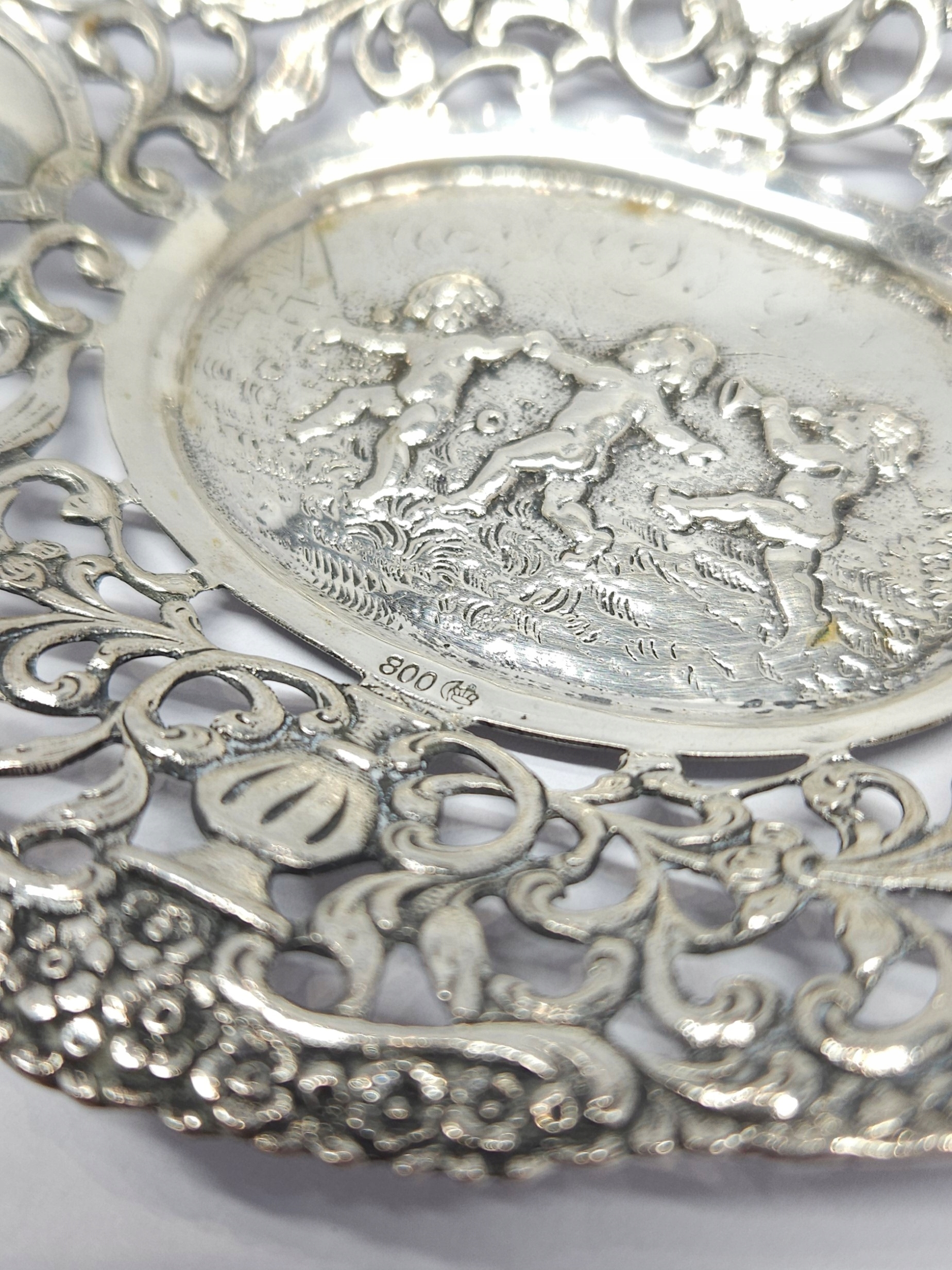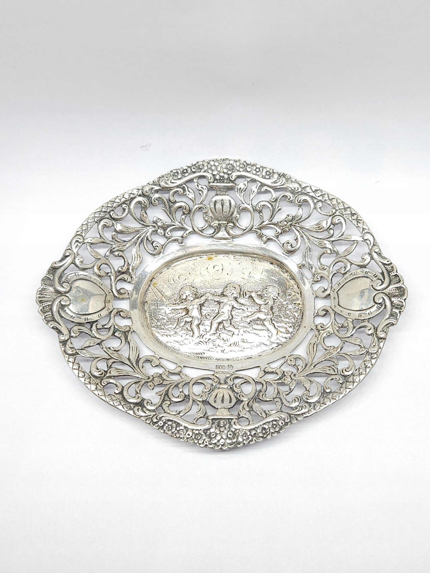 Strona główna » Sklep » Srebrna ażurowa paterka, trzy putta, srebro 0,800